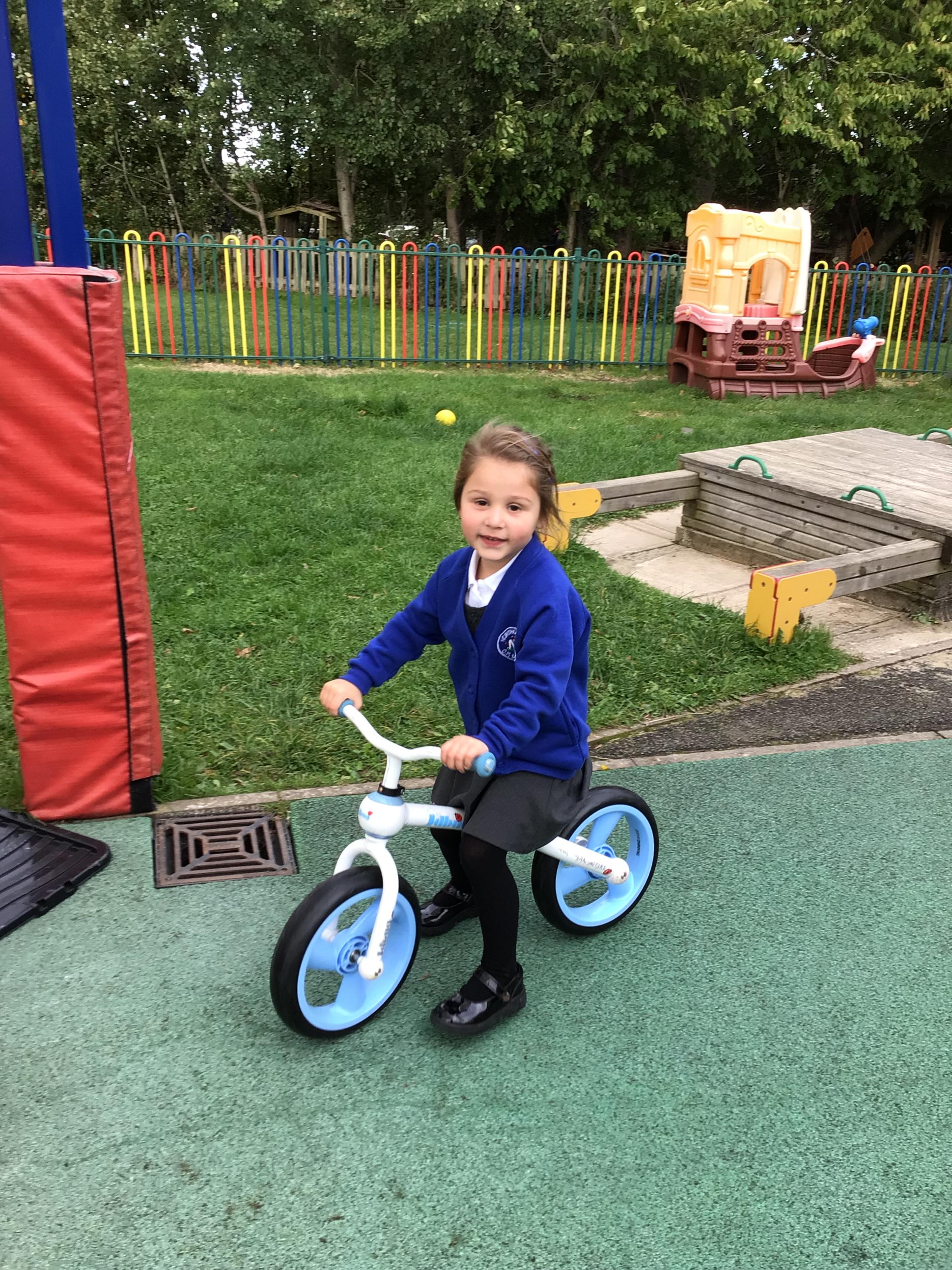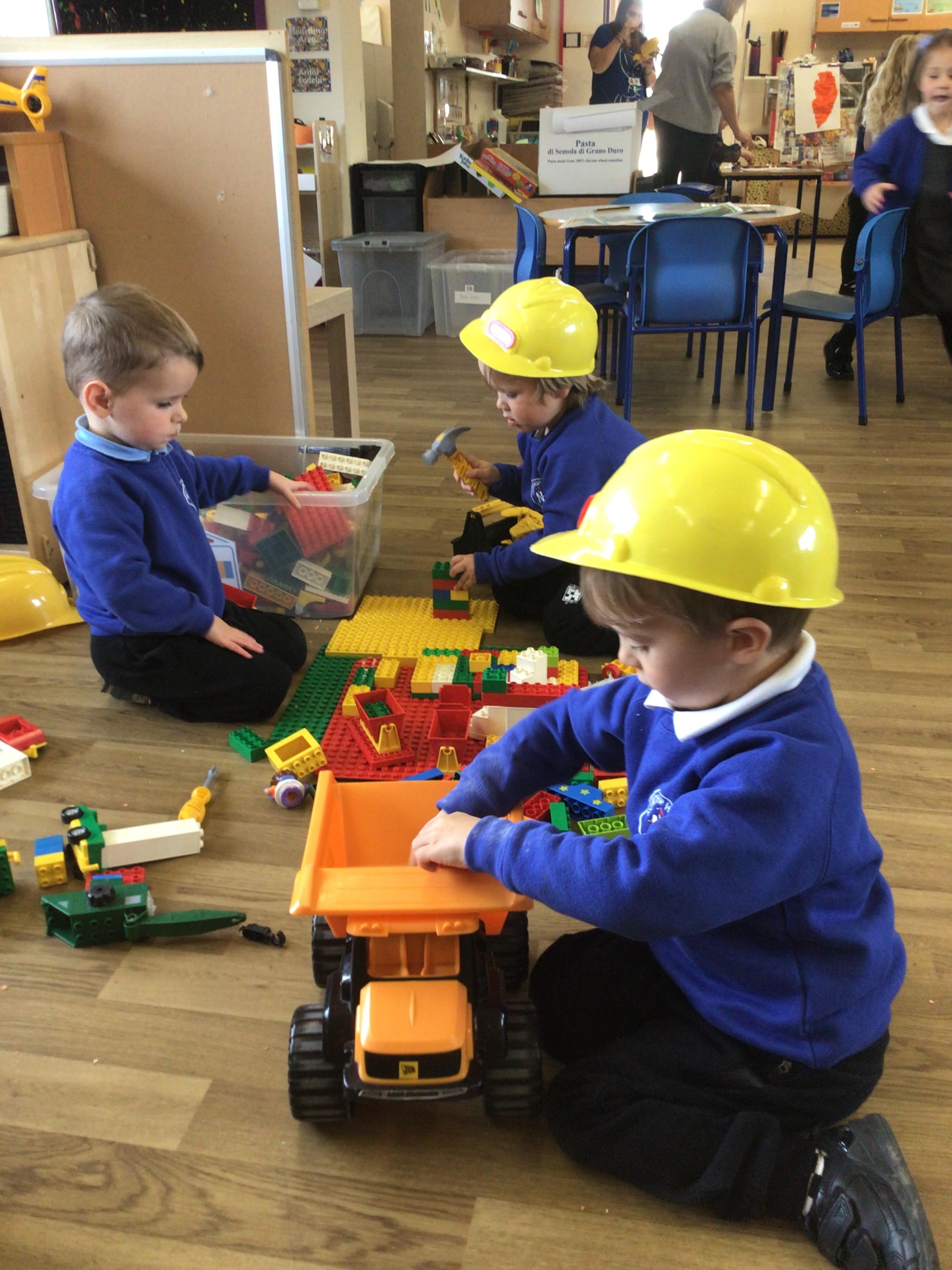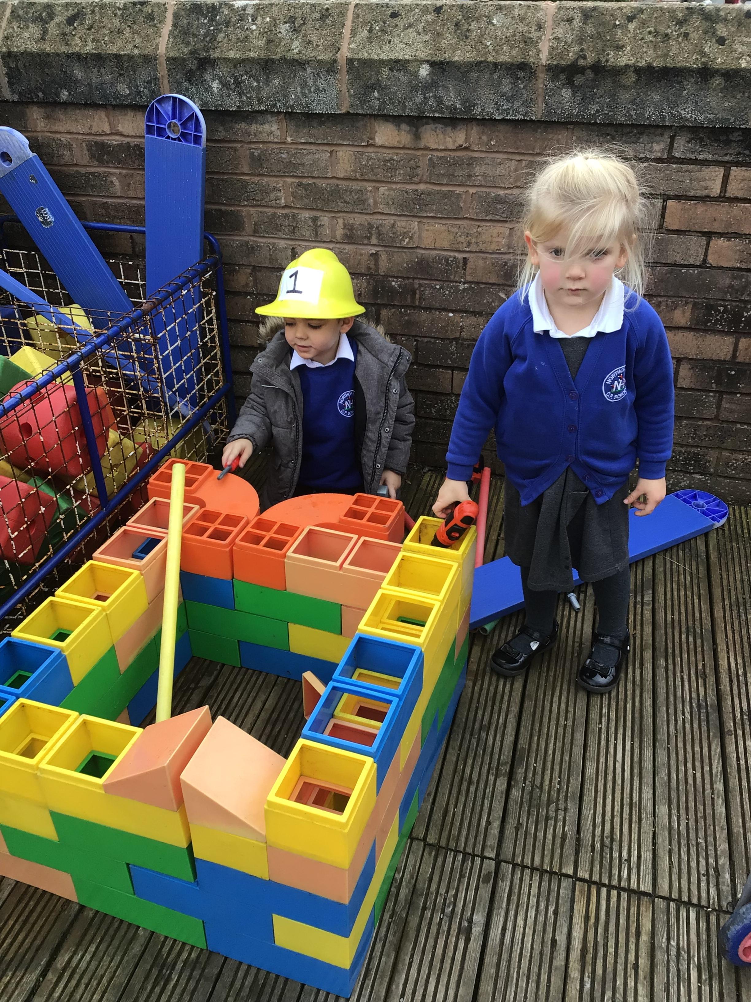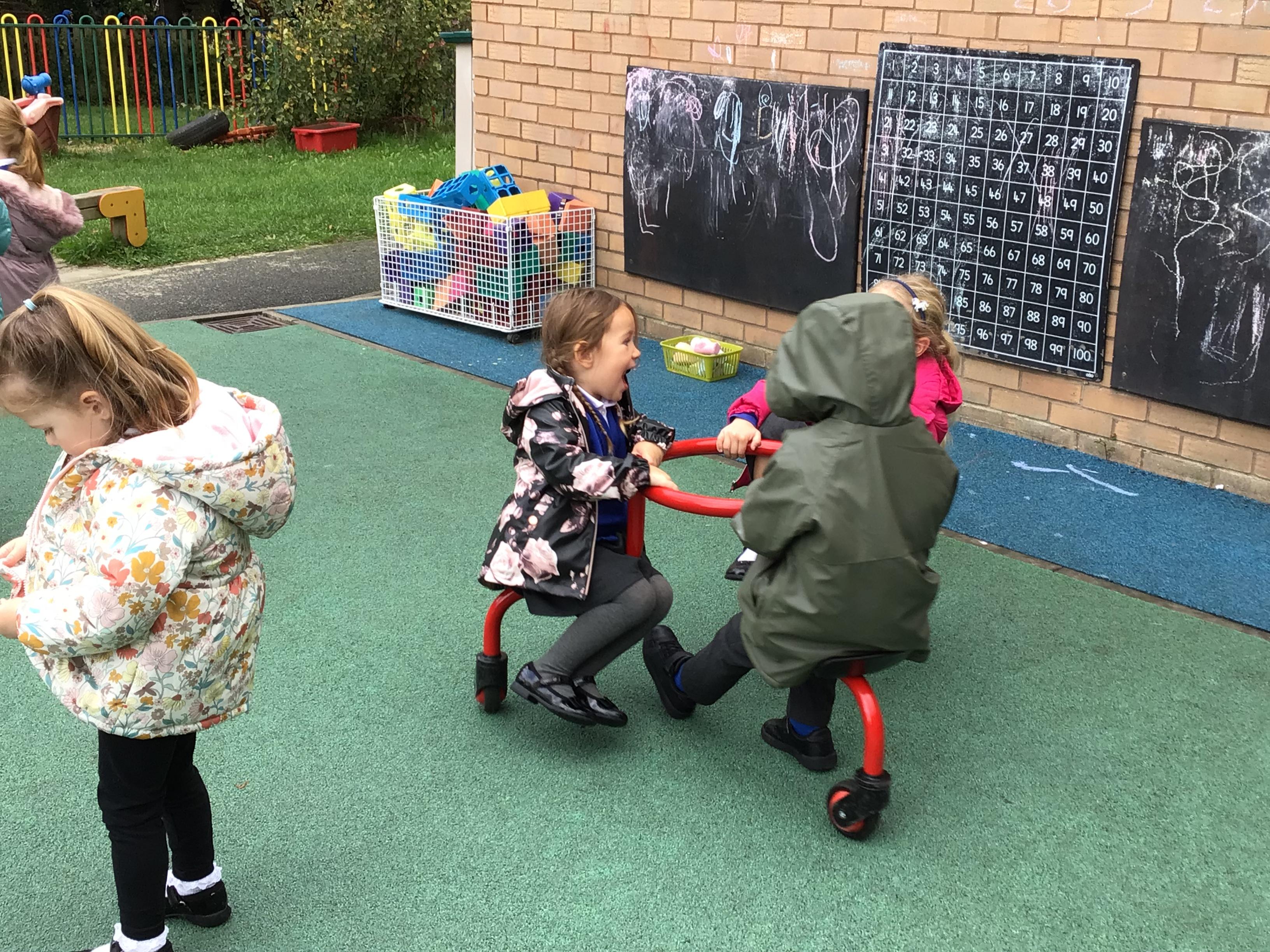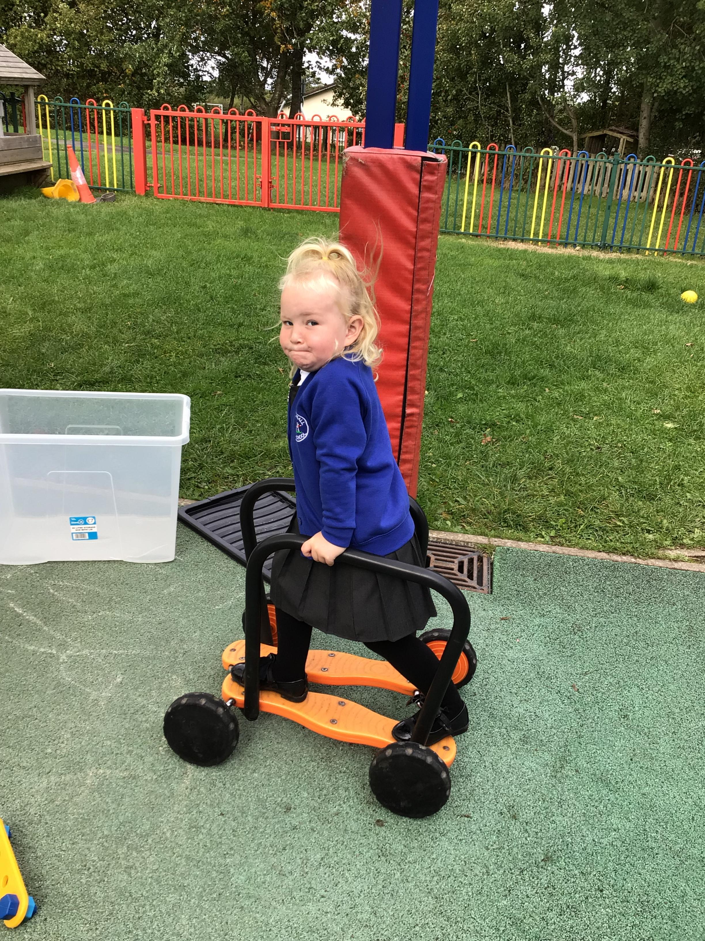 This week we played in the “big outside” area with the bikes, scooters and large construction.