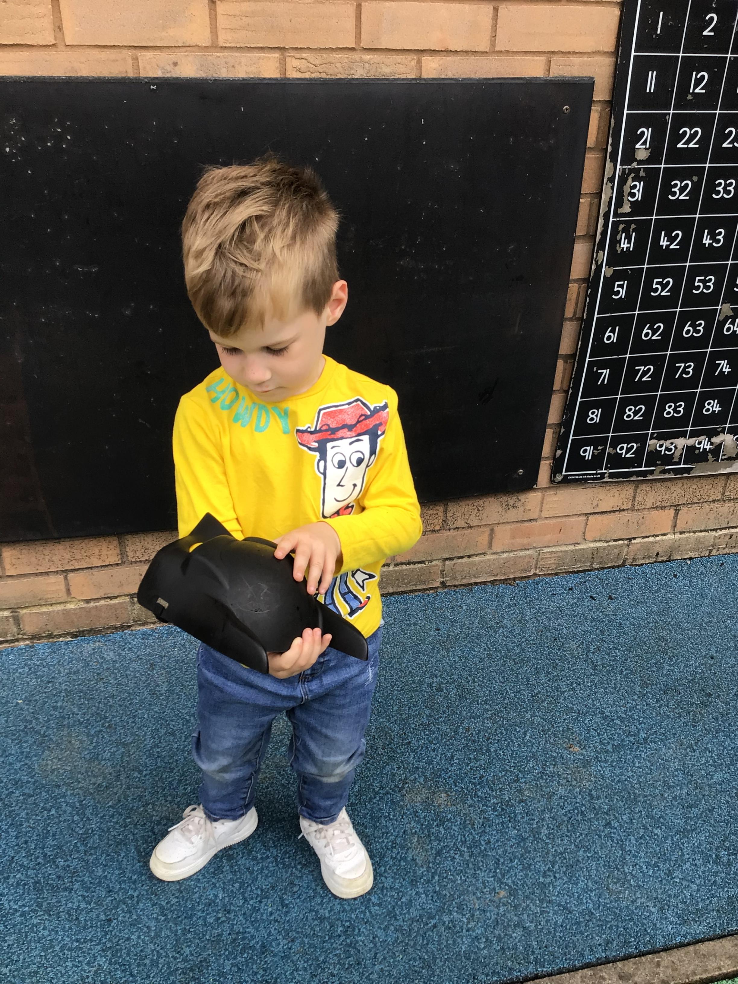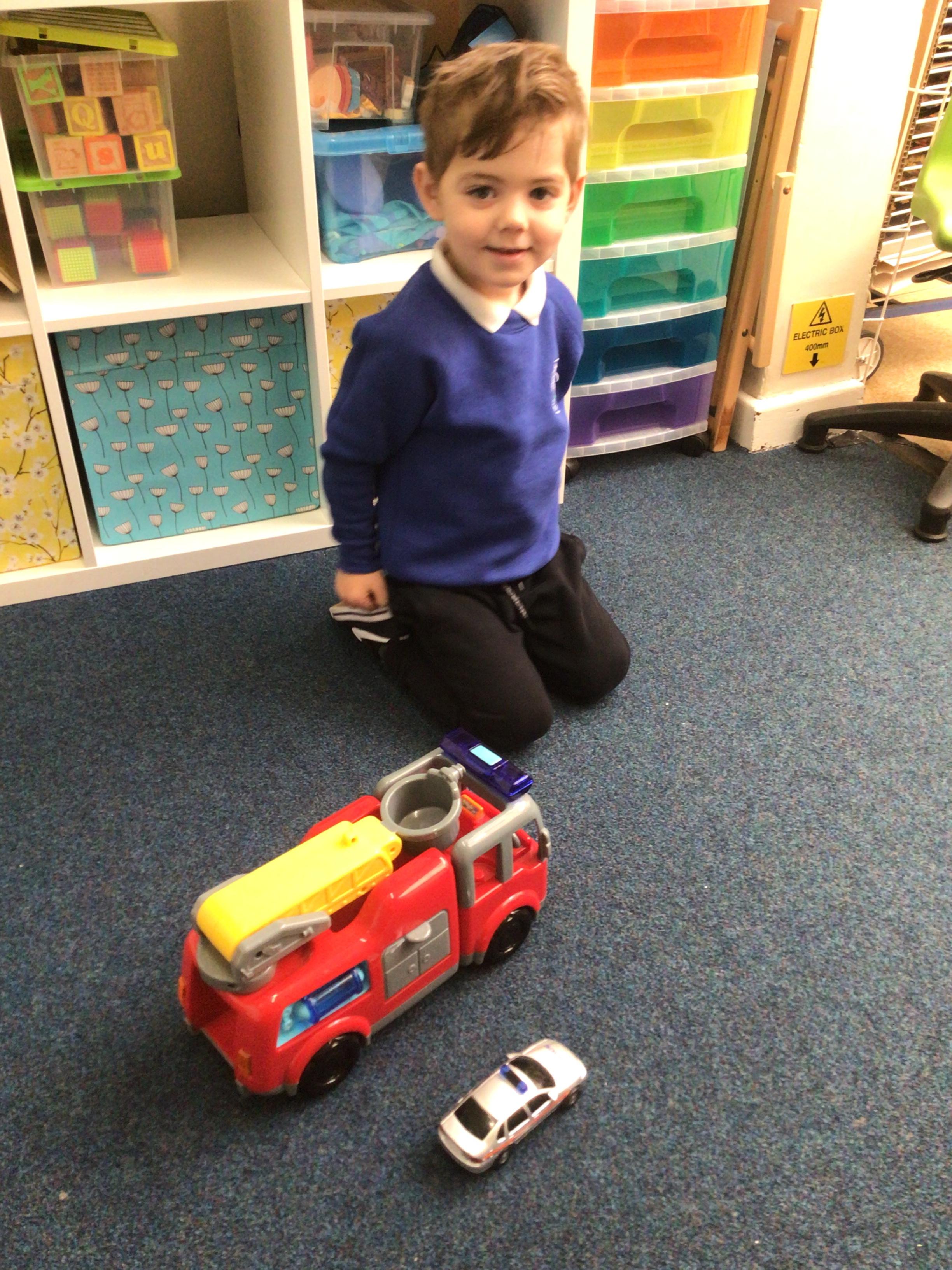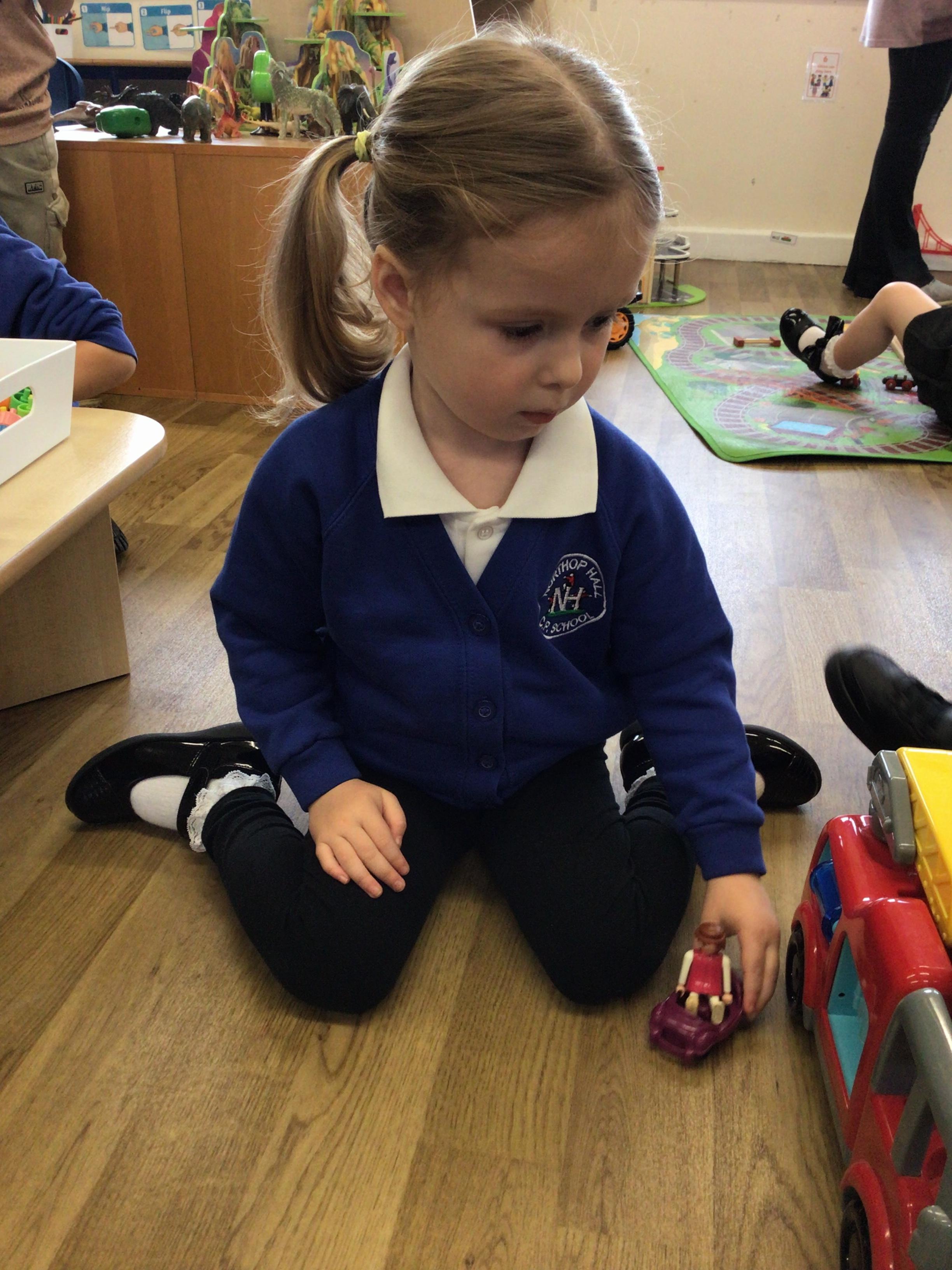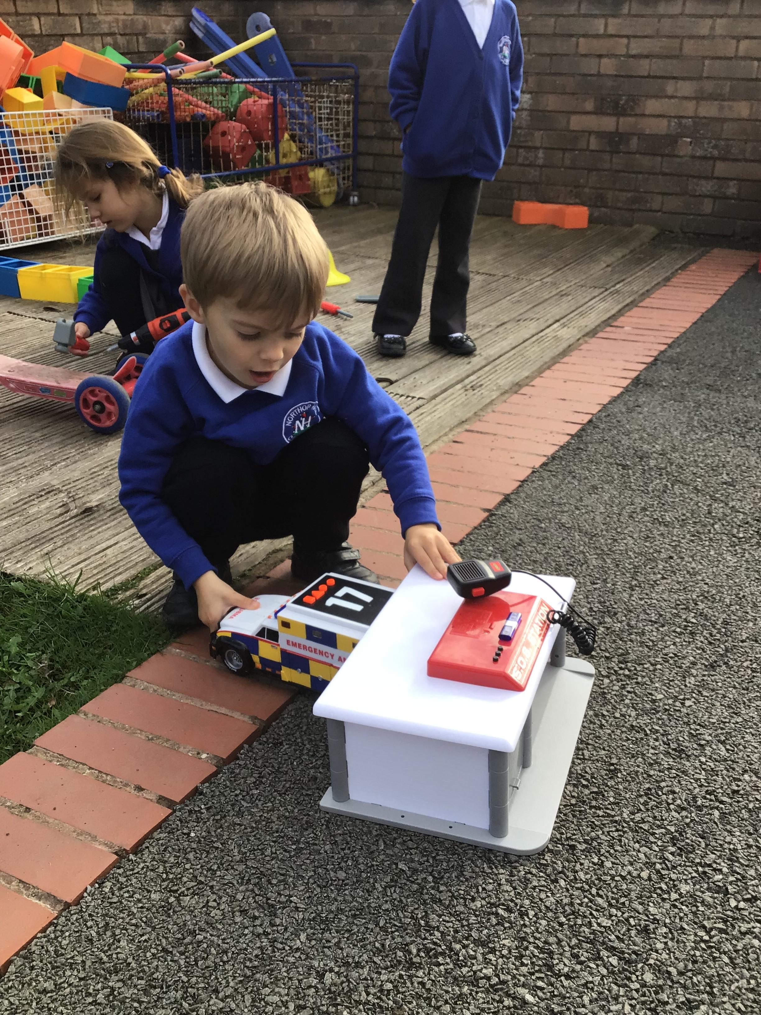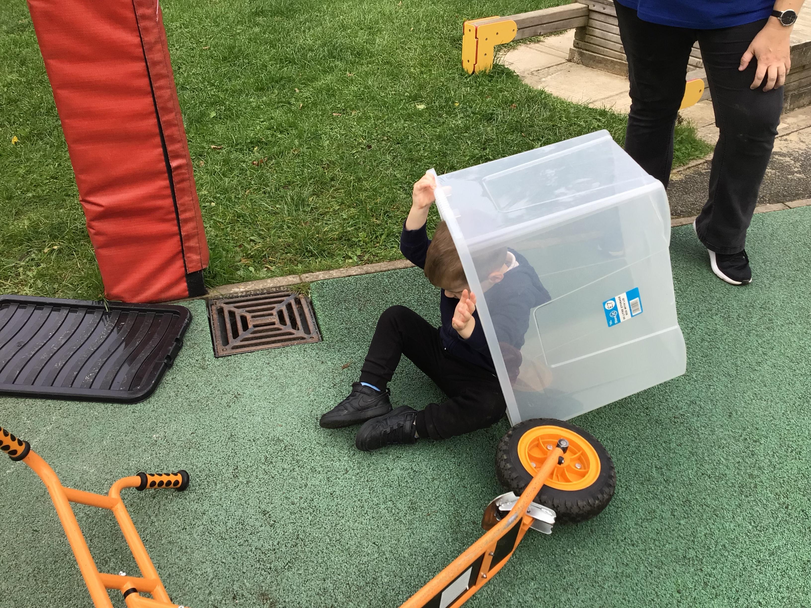 This week we played in the “big outside” area with the bikes, scooters and large construction.