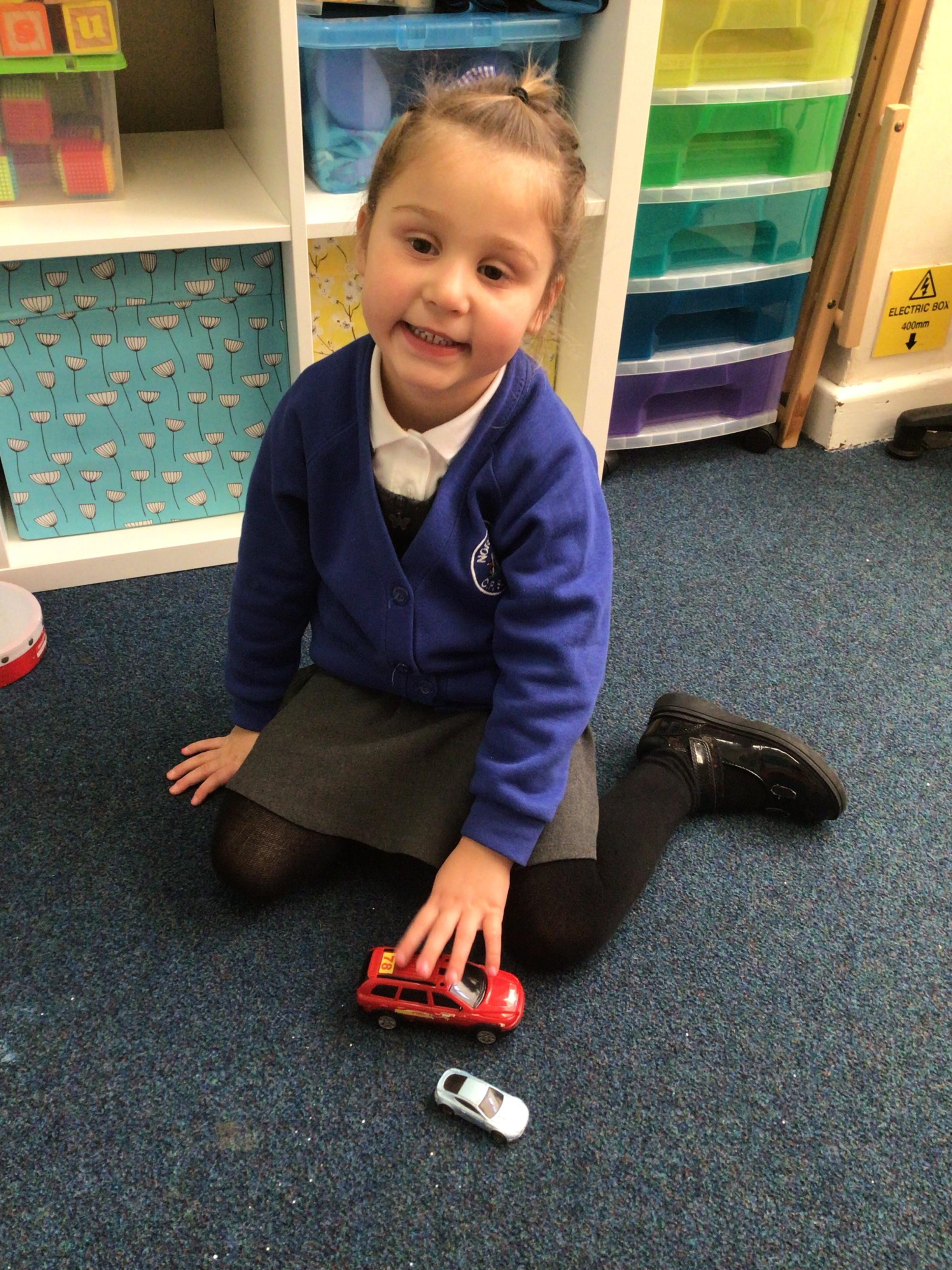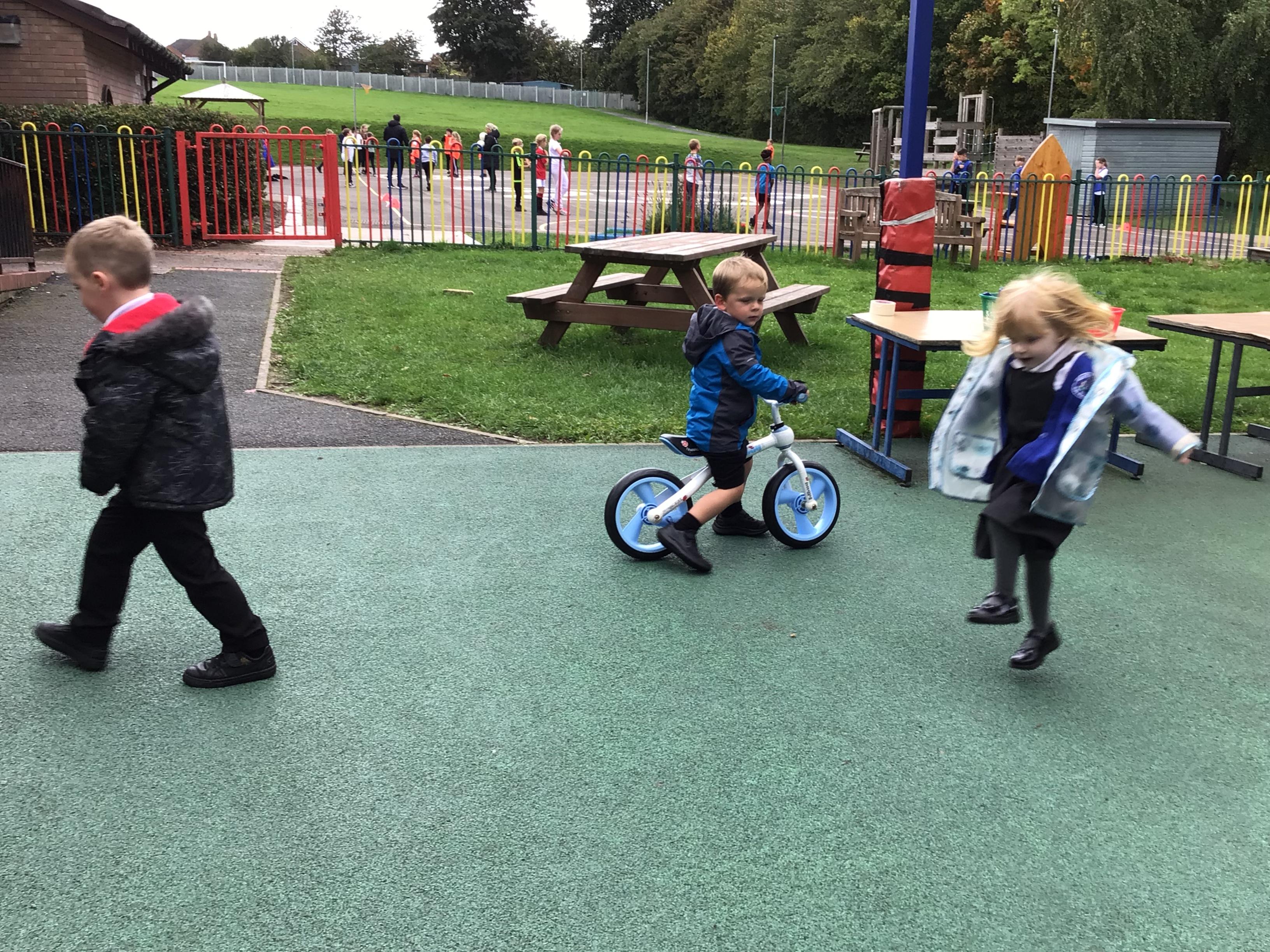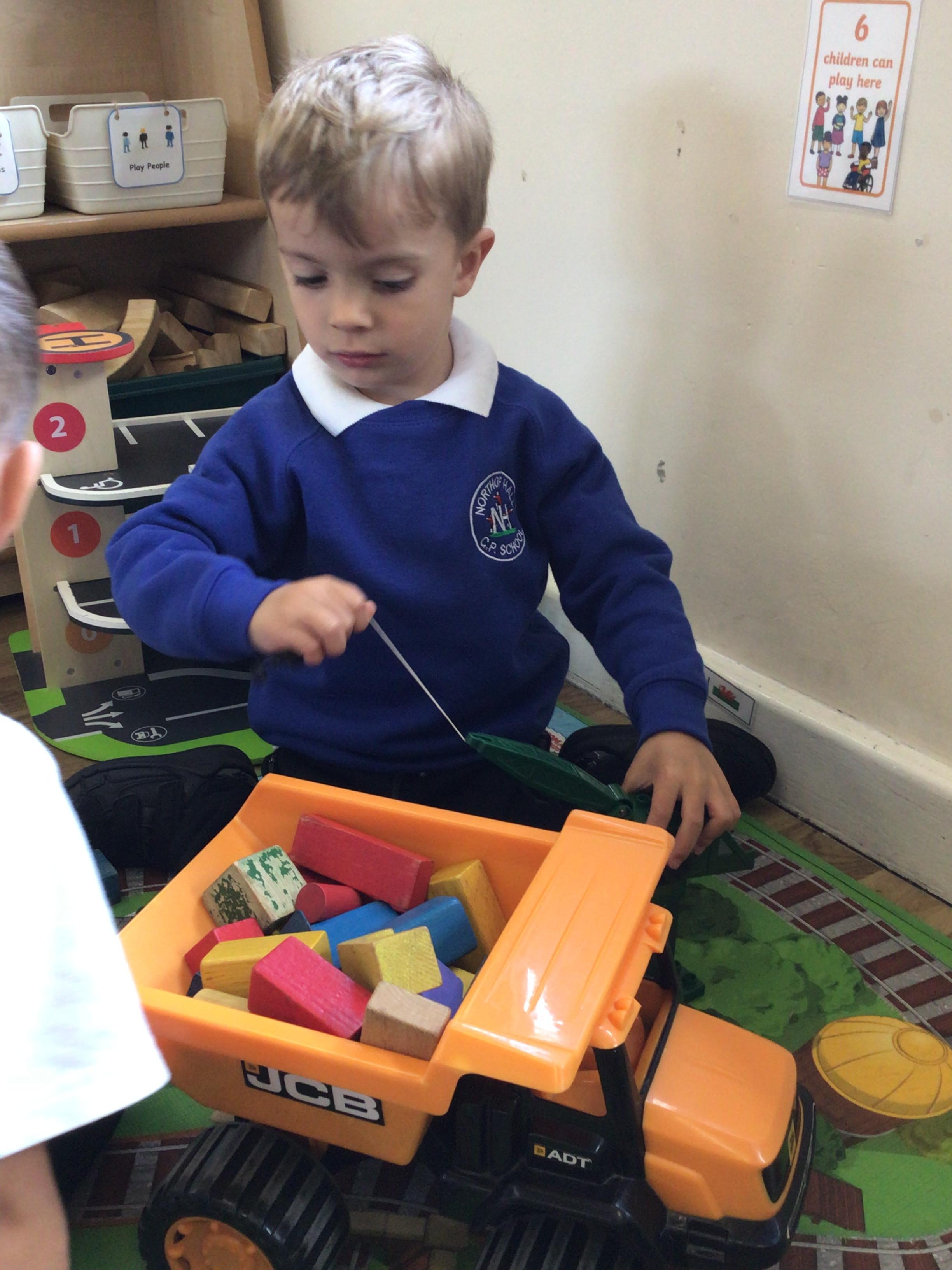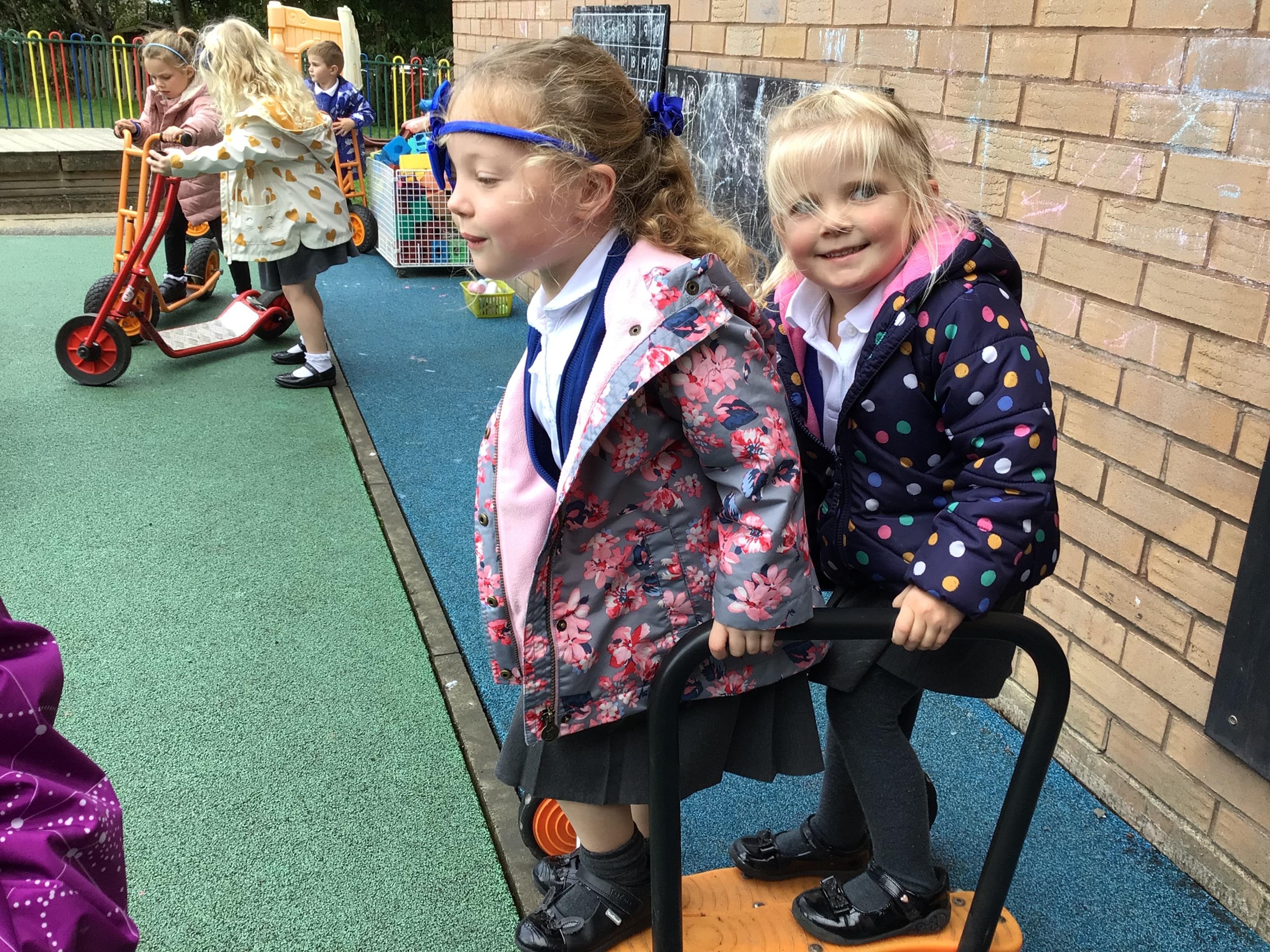 This week we played in the “big outside” area with the bikes, scooters and large construction.