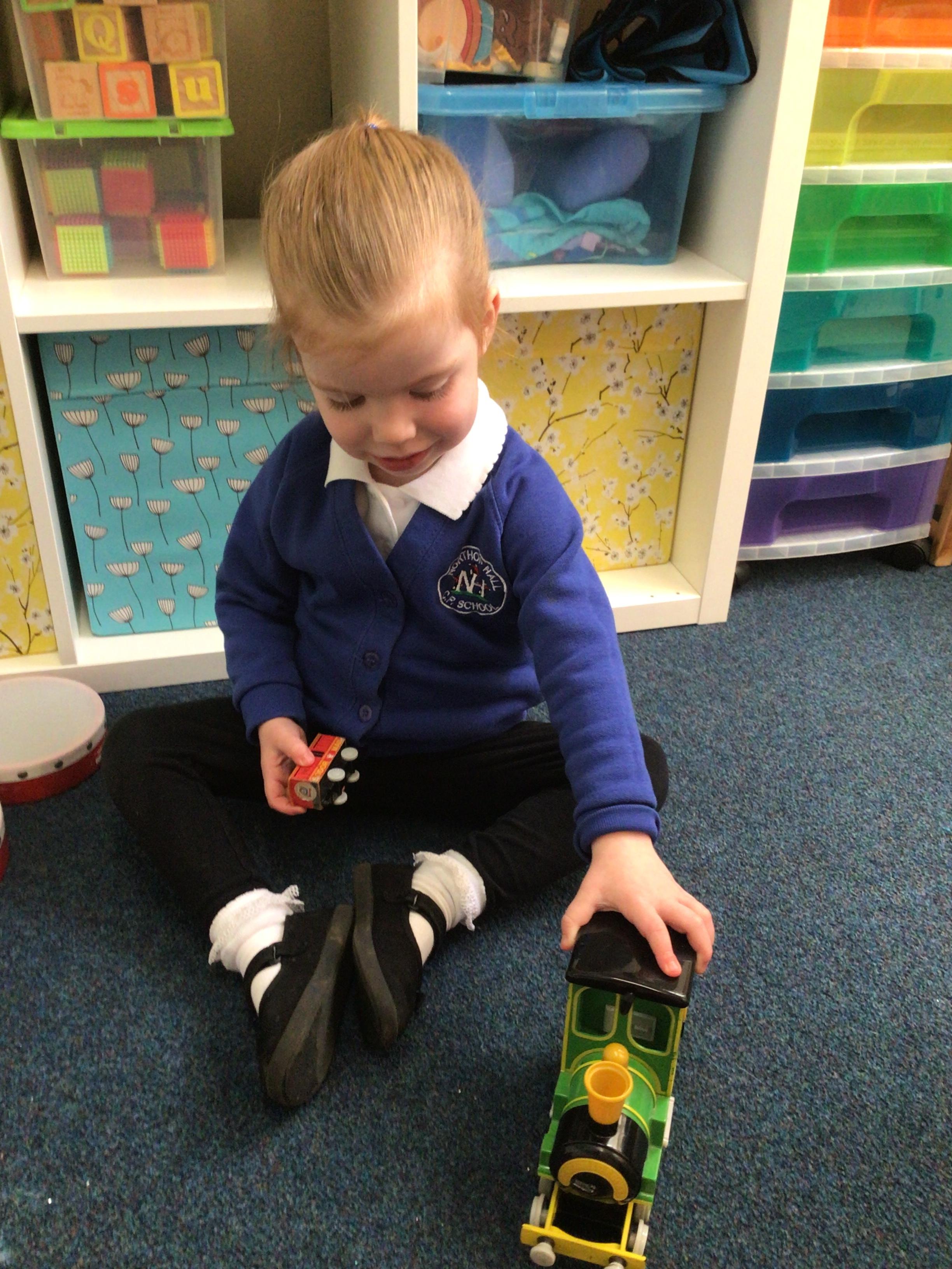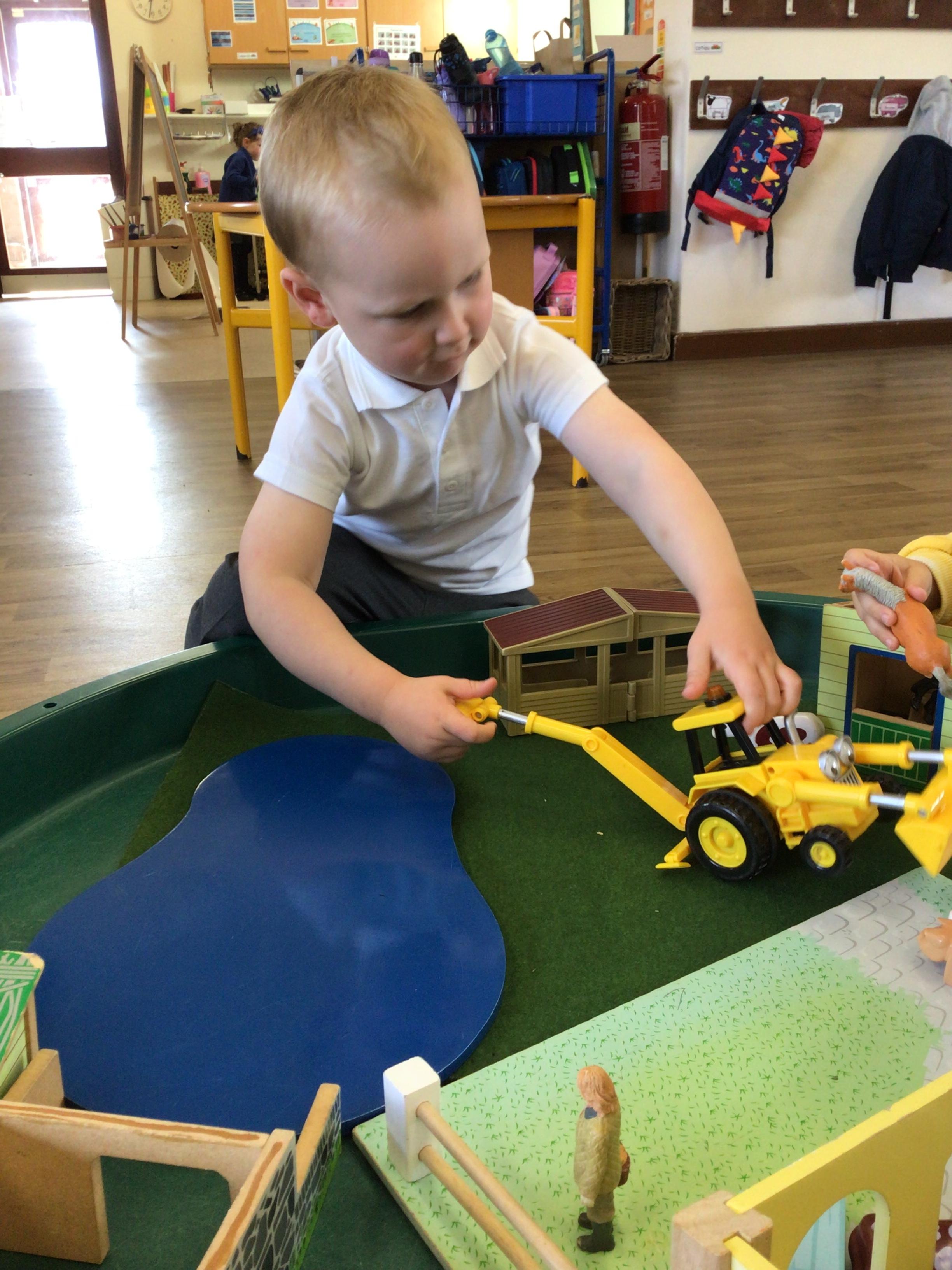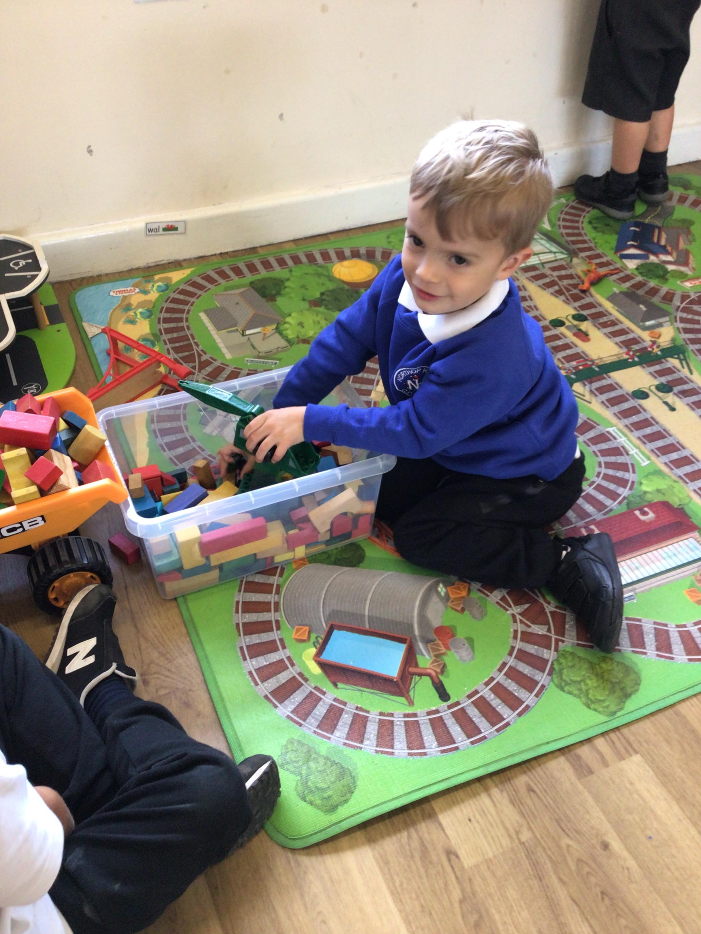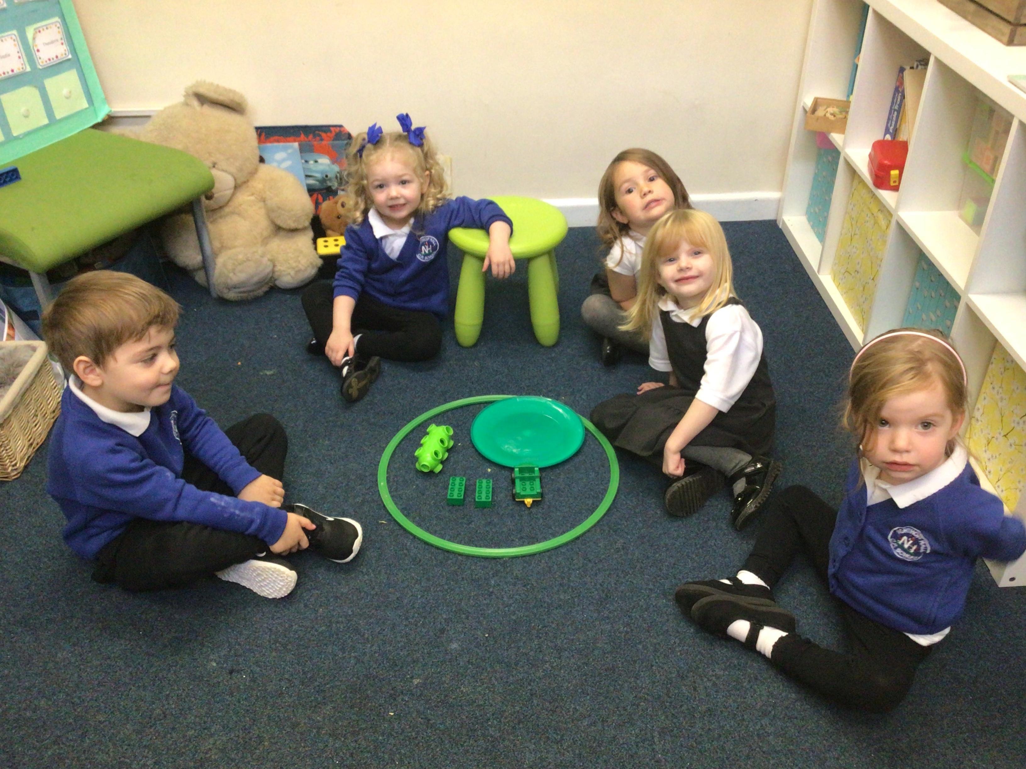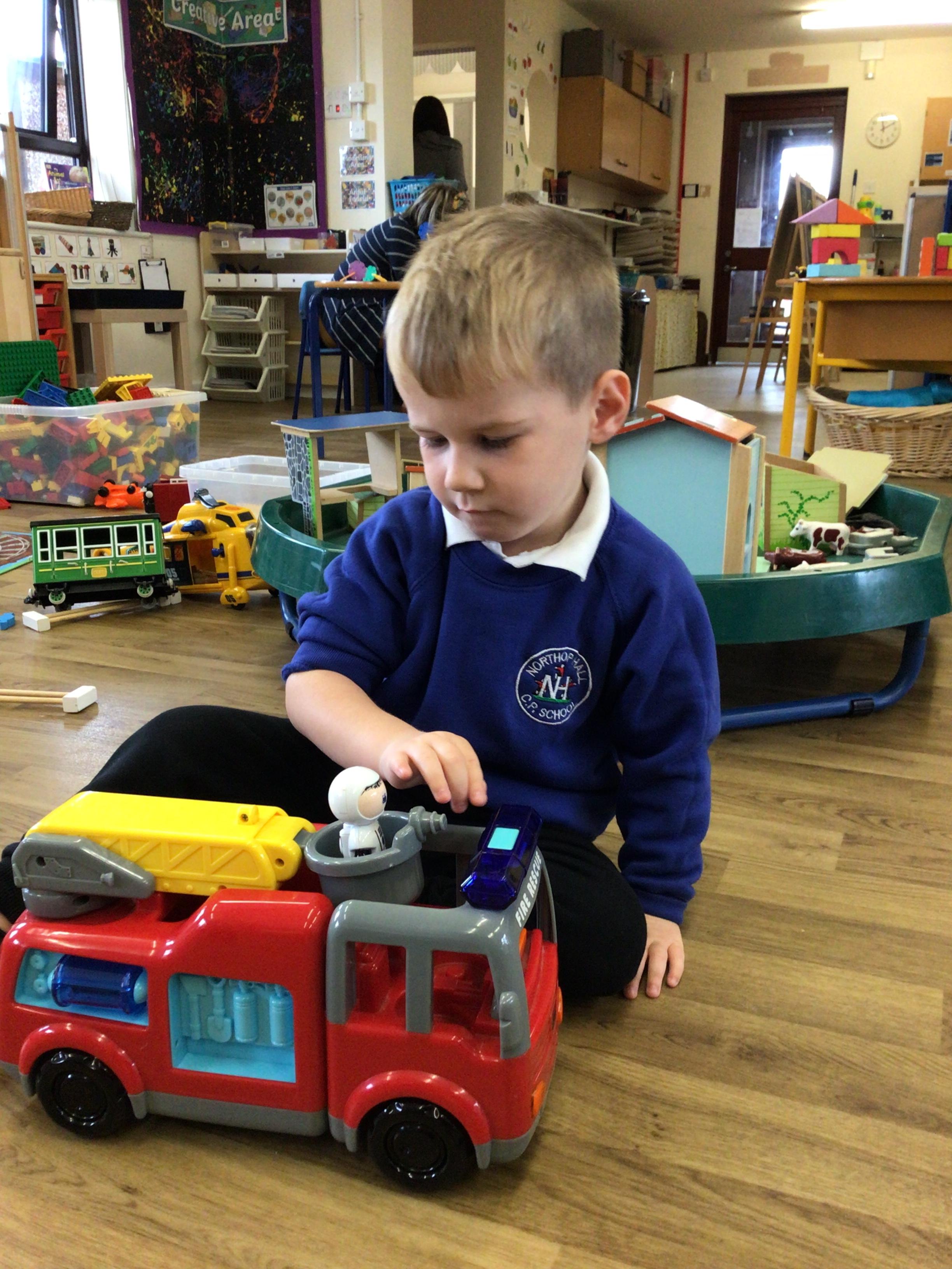 This week we played in the “big outside” area with the bikes, scooters and large construction.