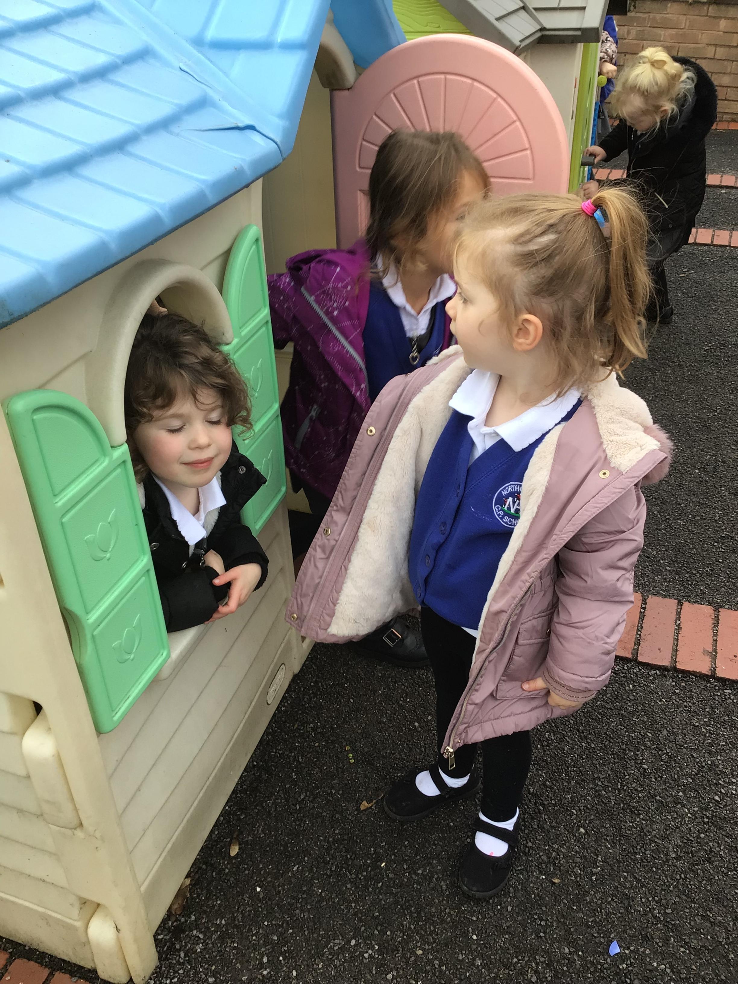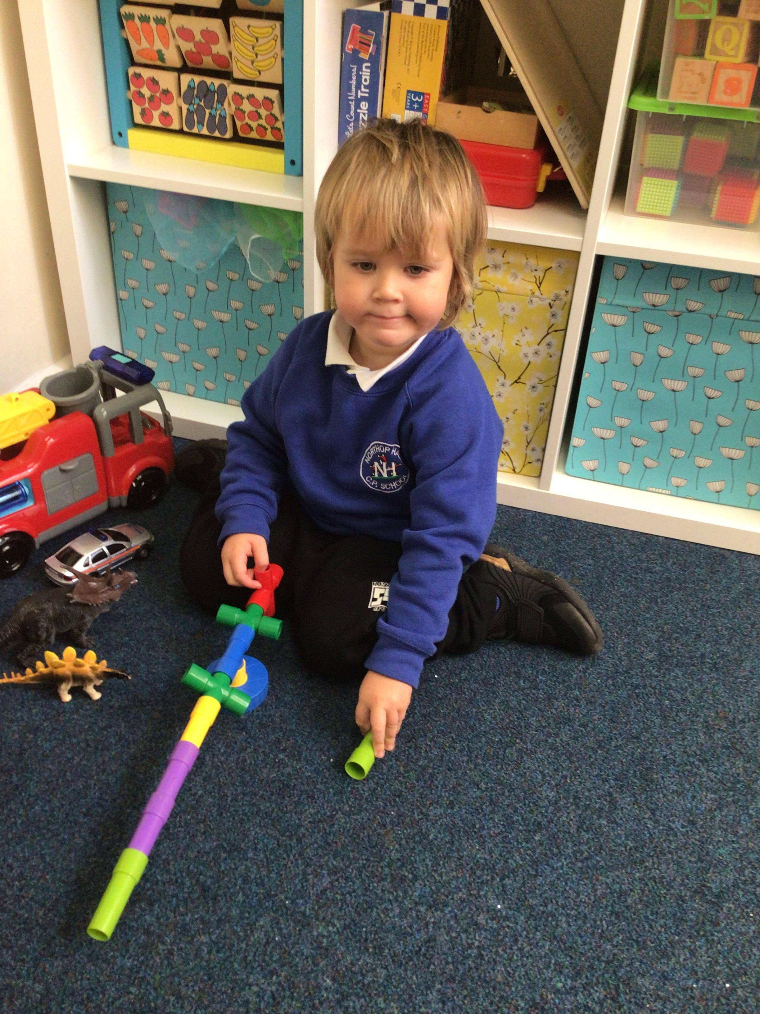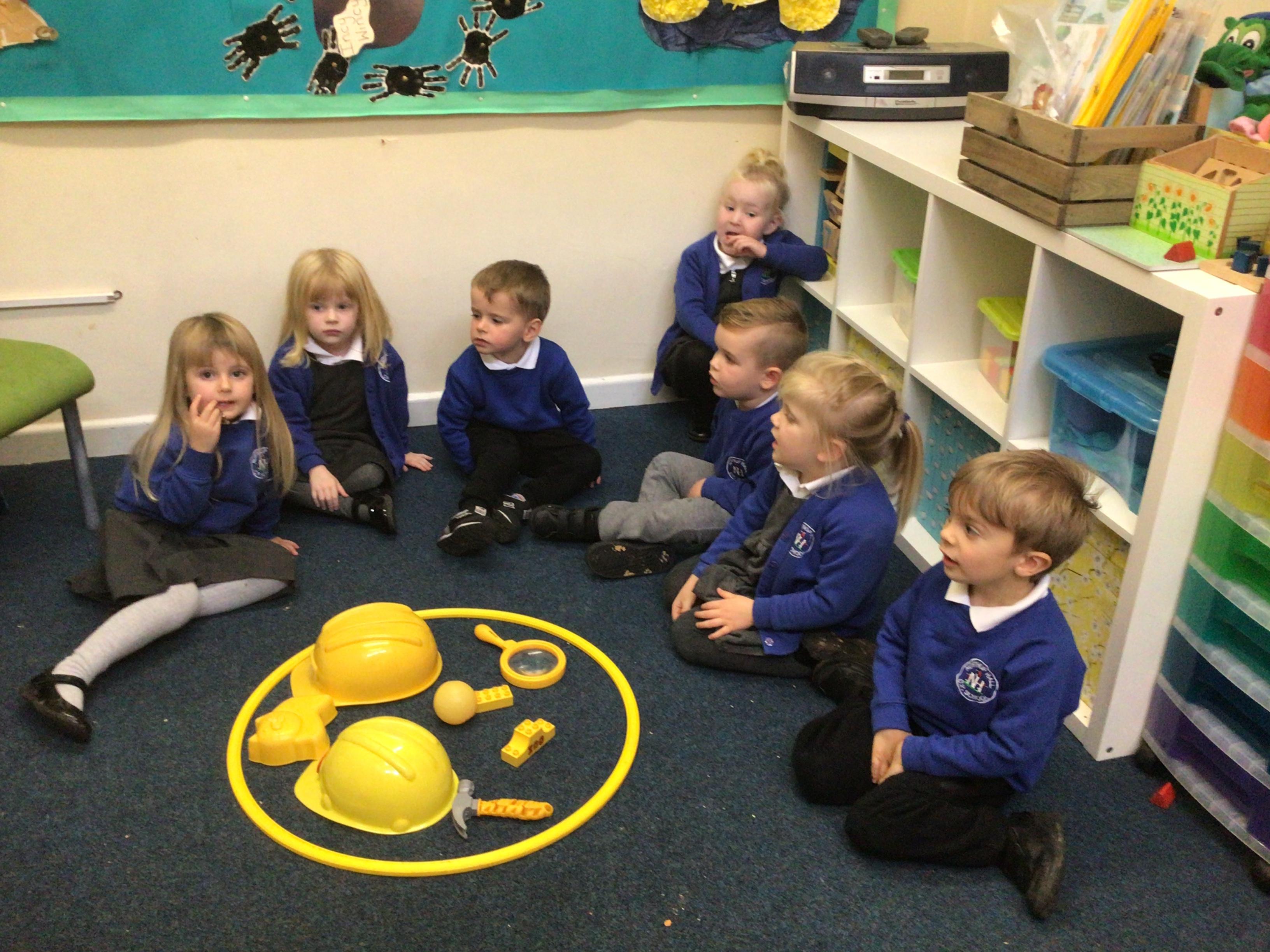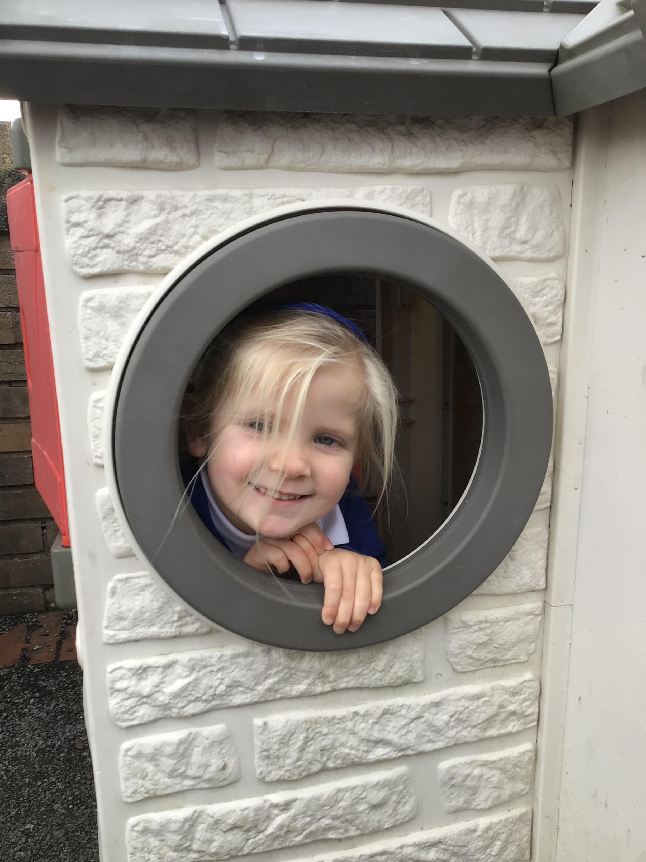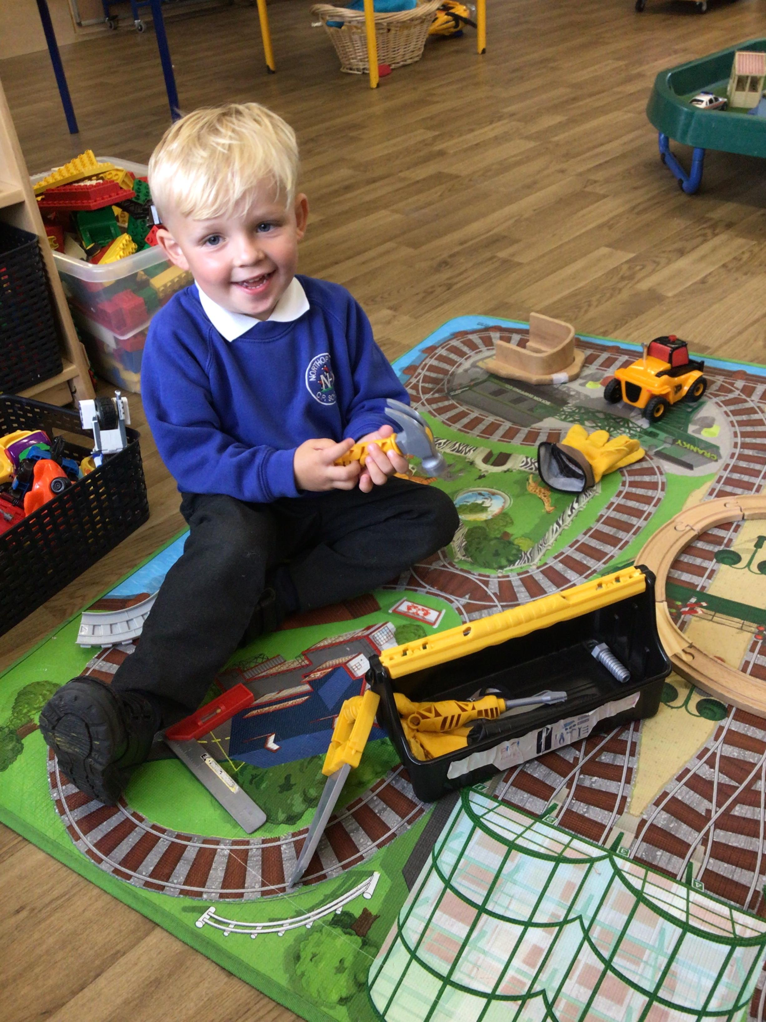 This week we played in the “big outside” area with the bikes, scooters and large construction.