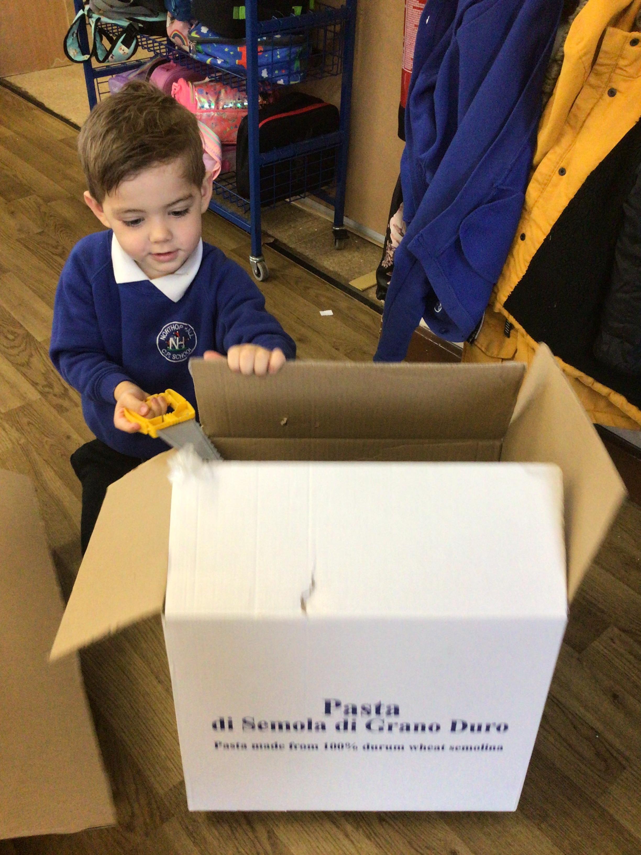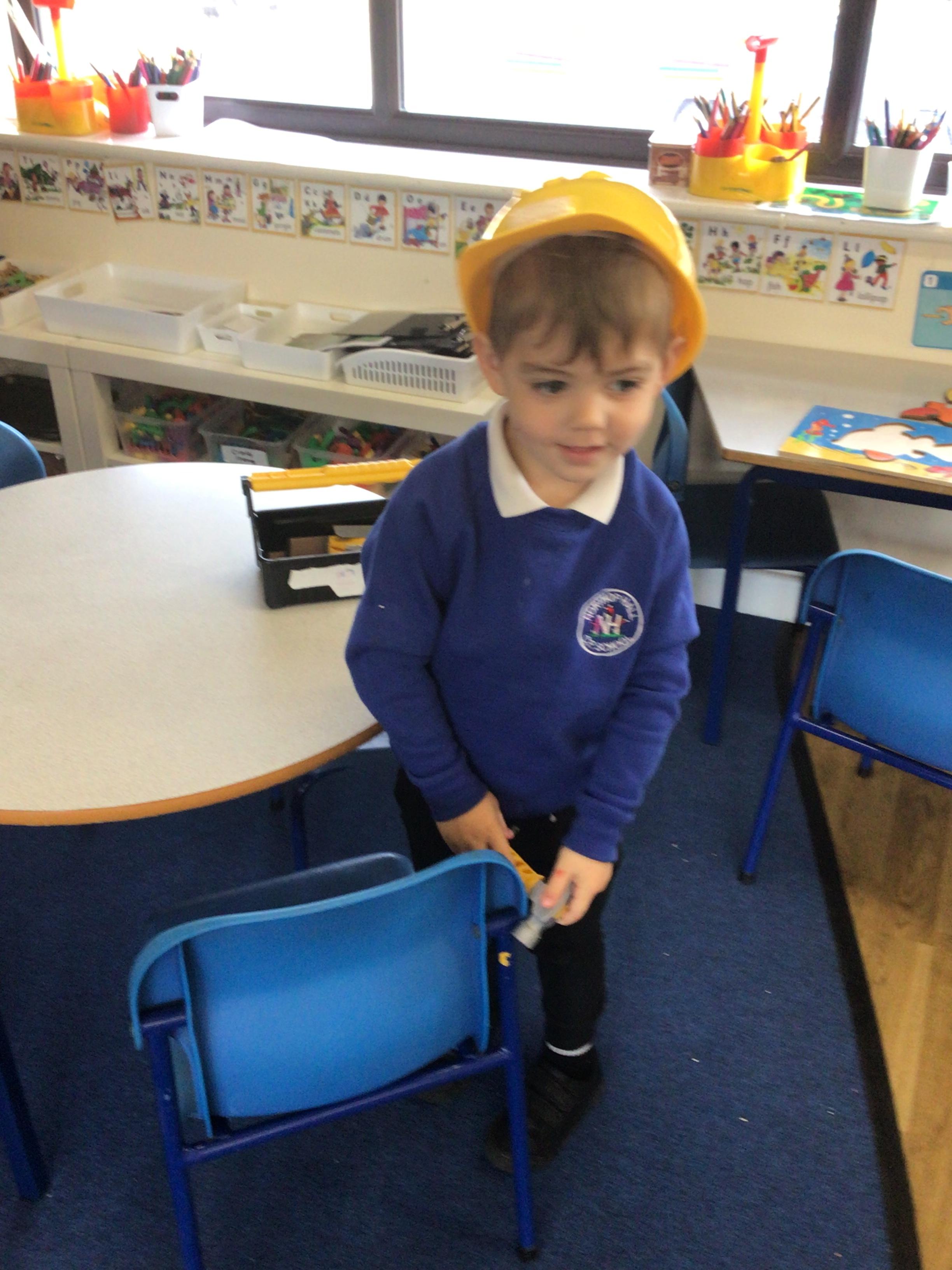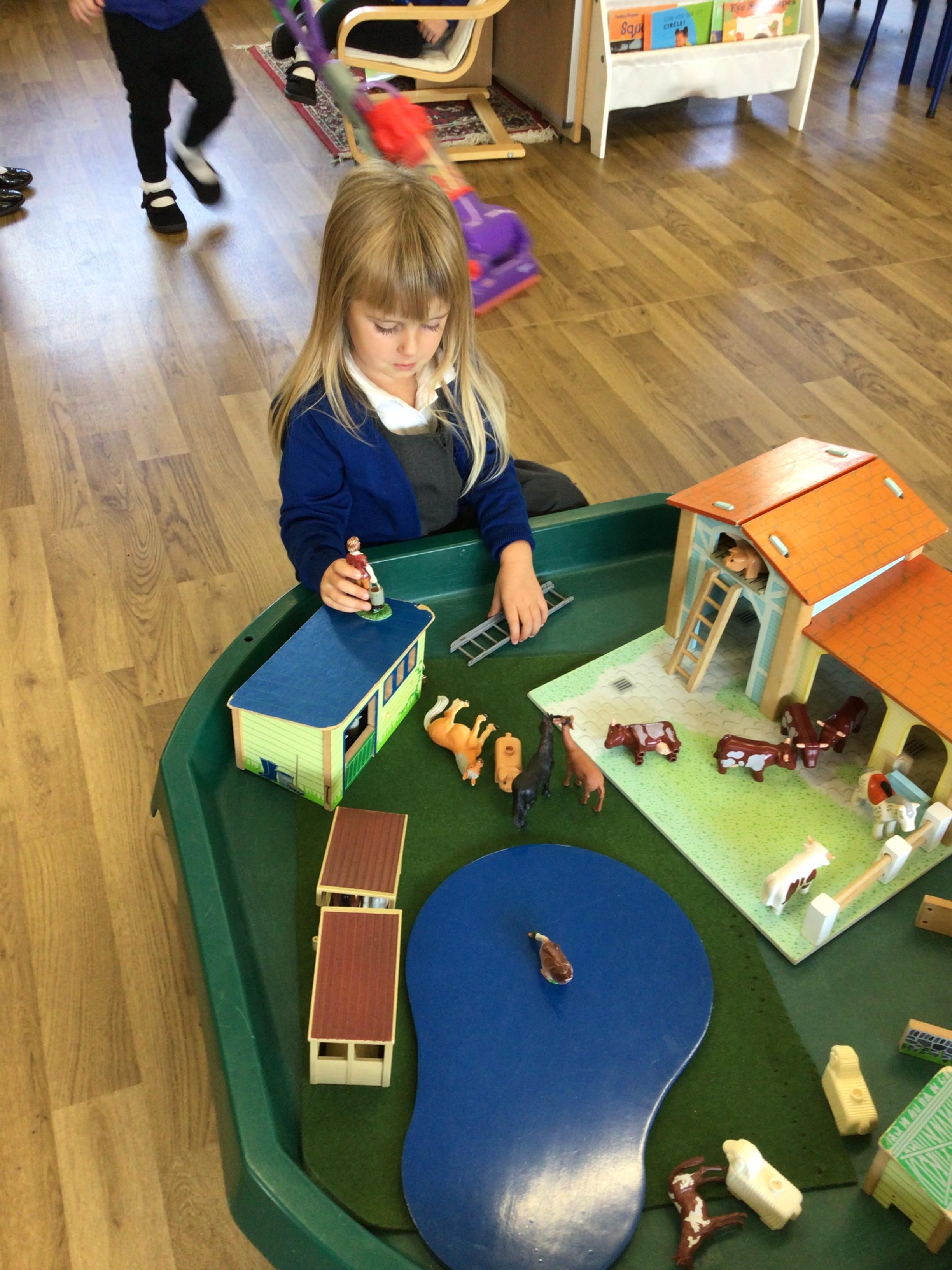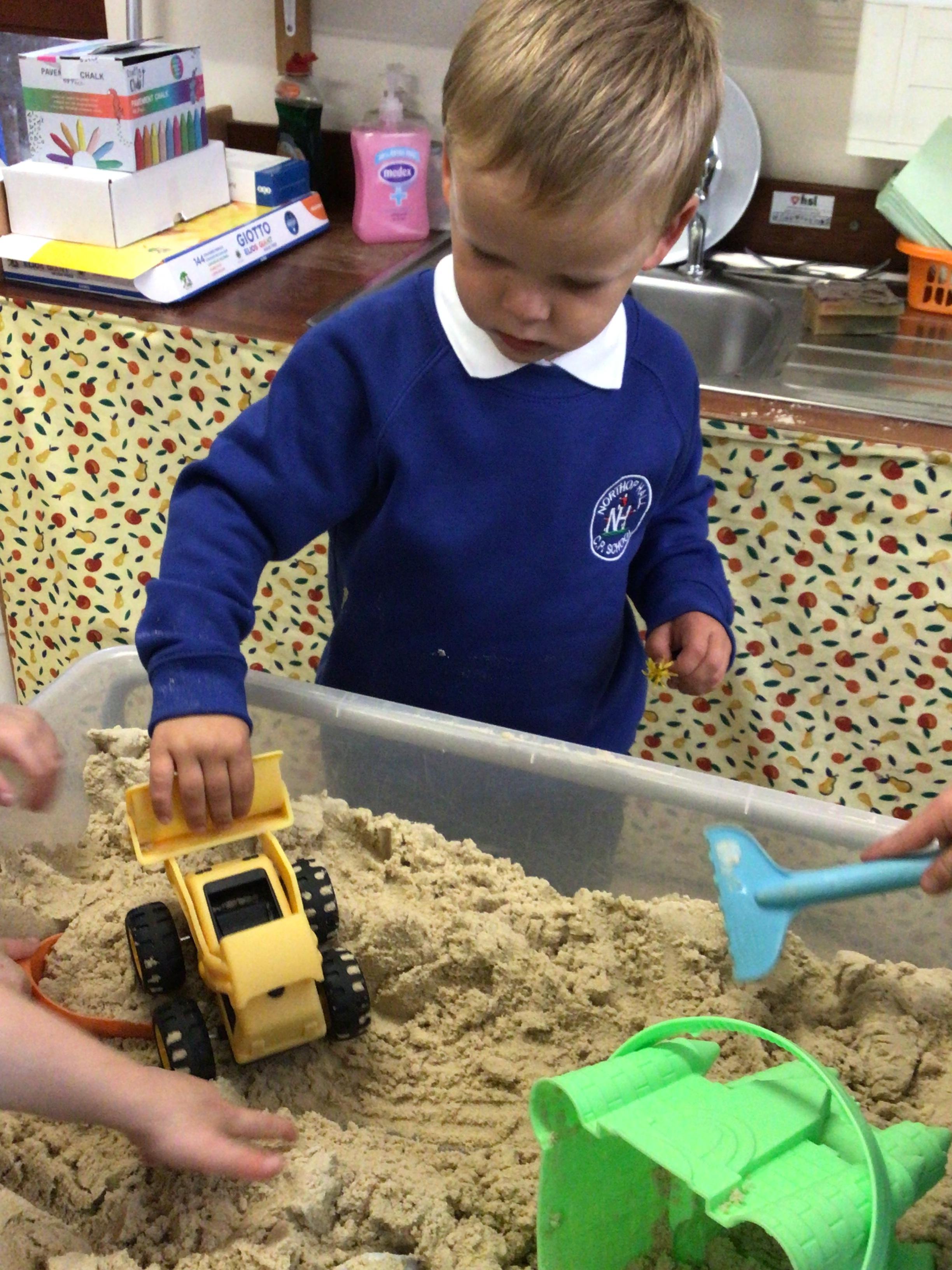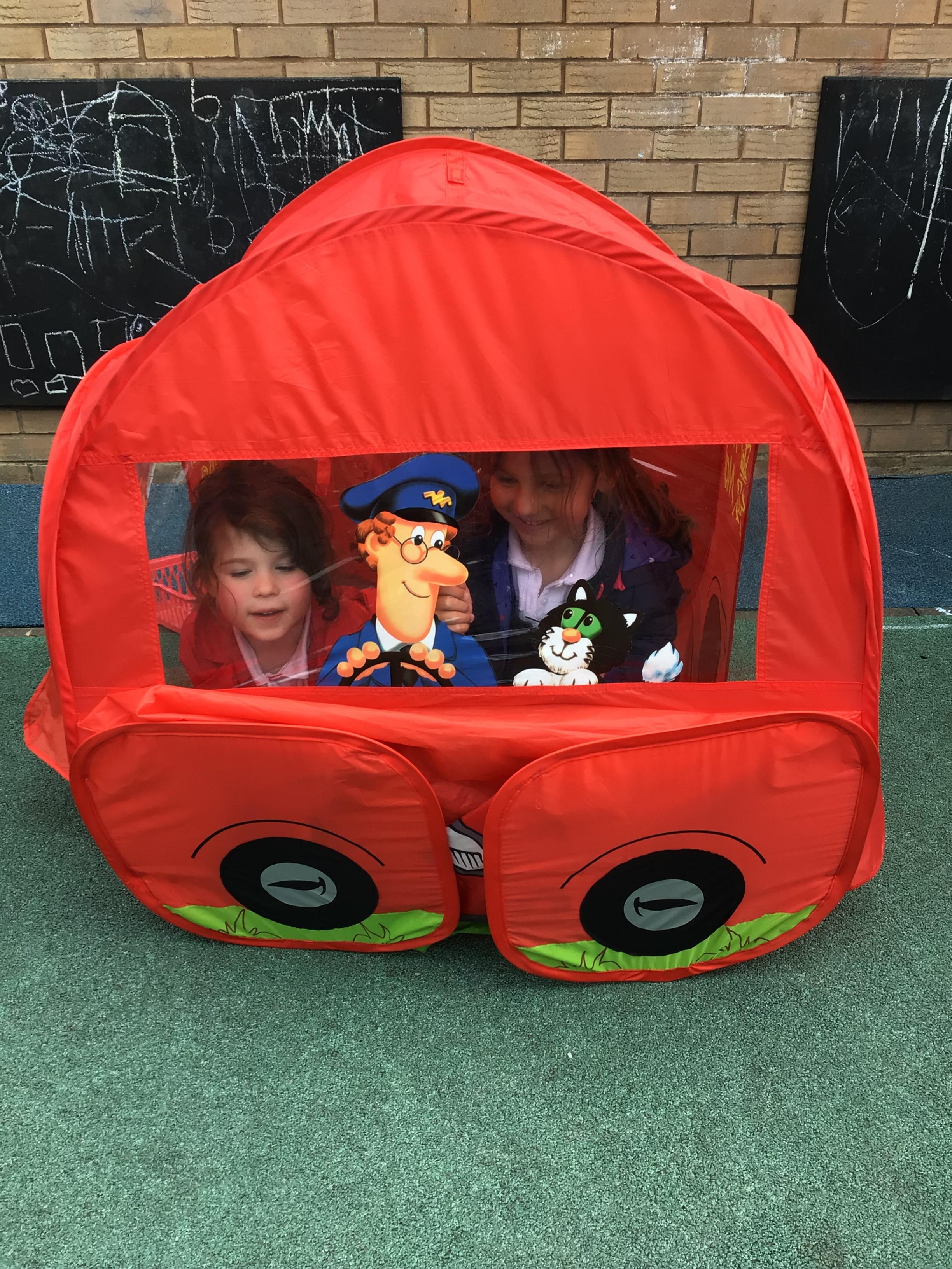 This week we played in the “big outside” area with the bikes, scooters and large construction.