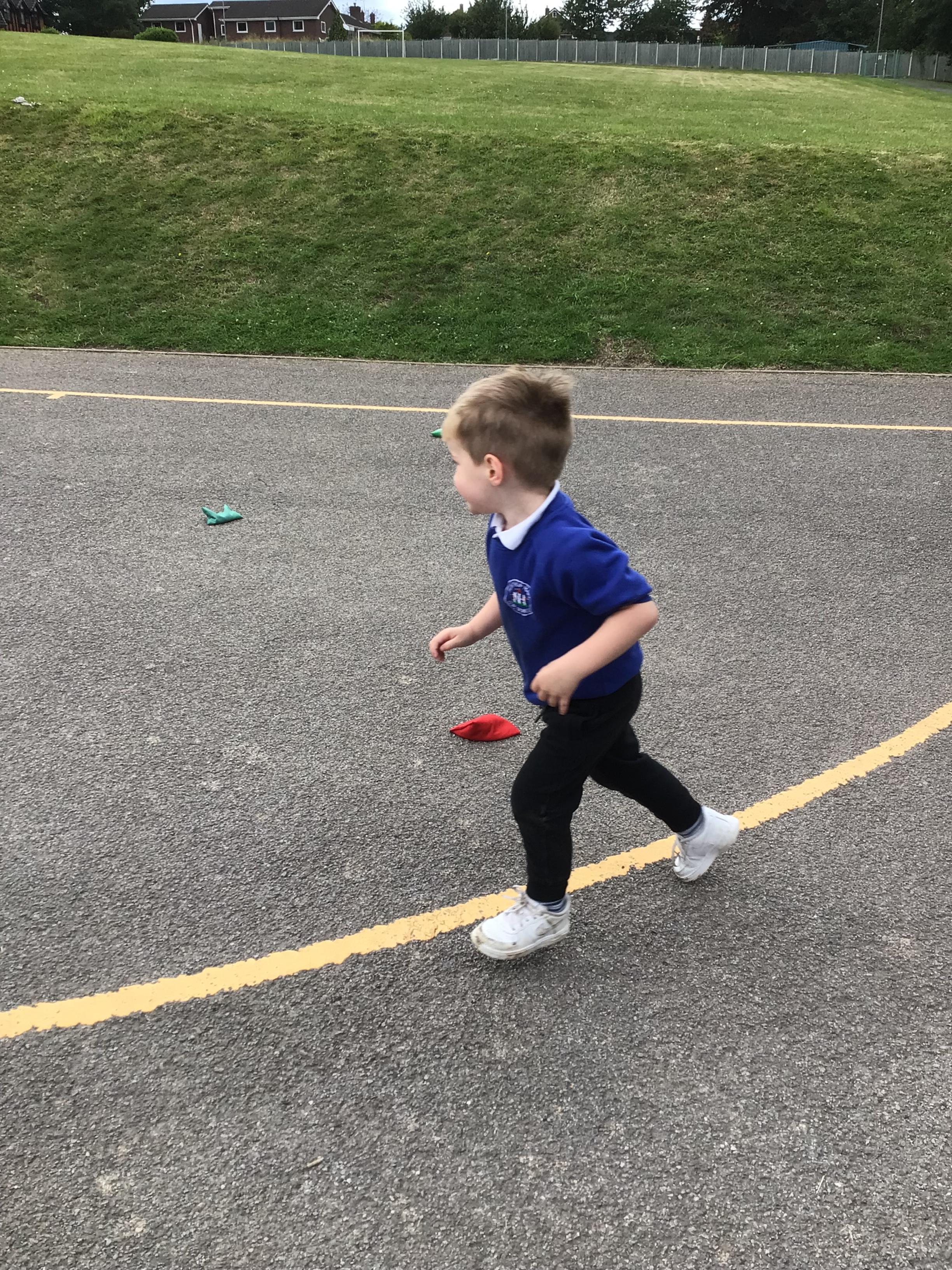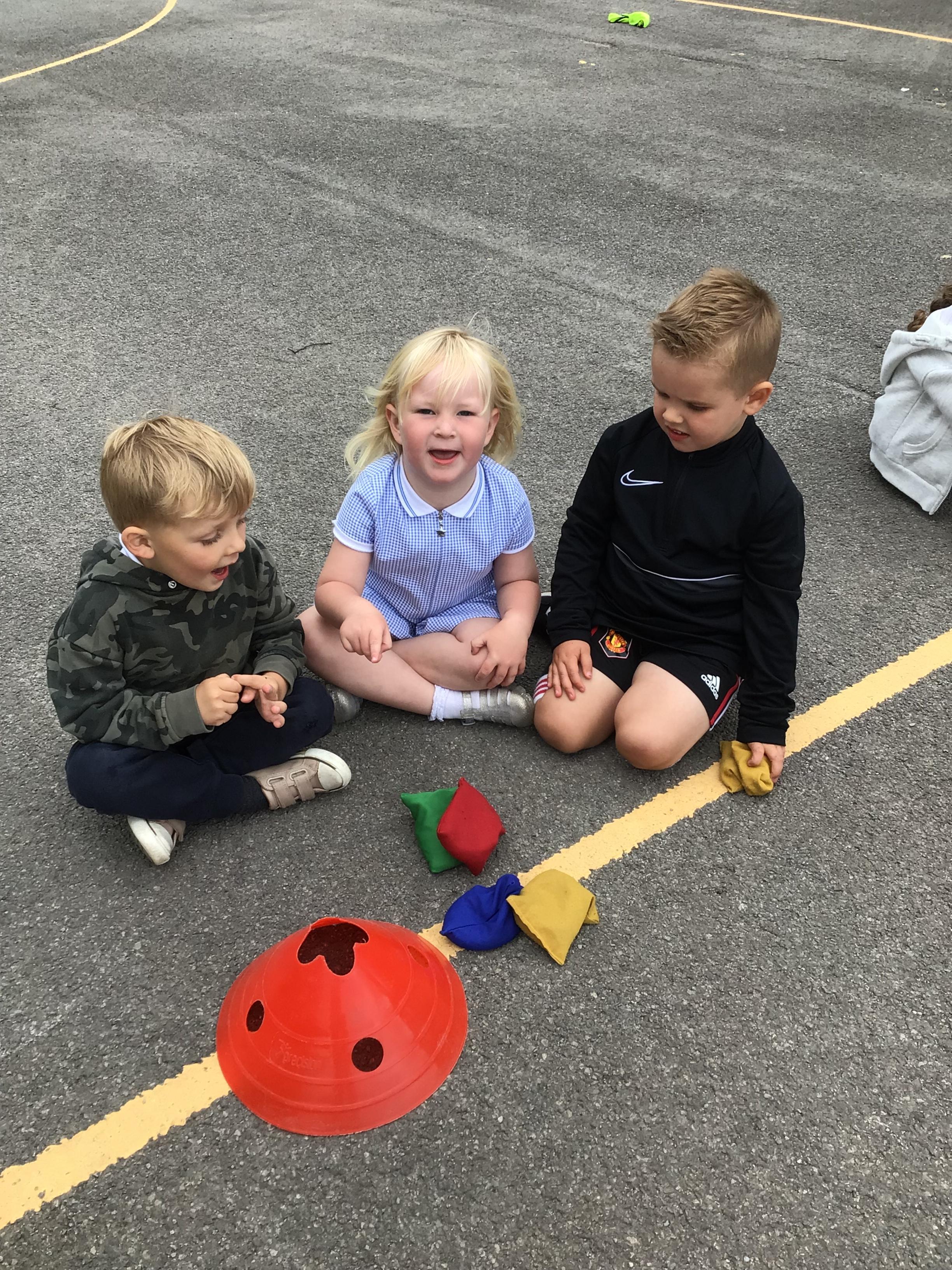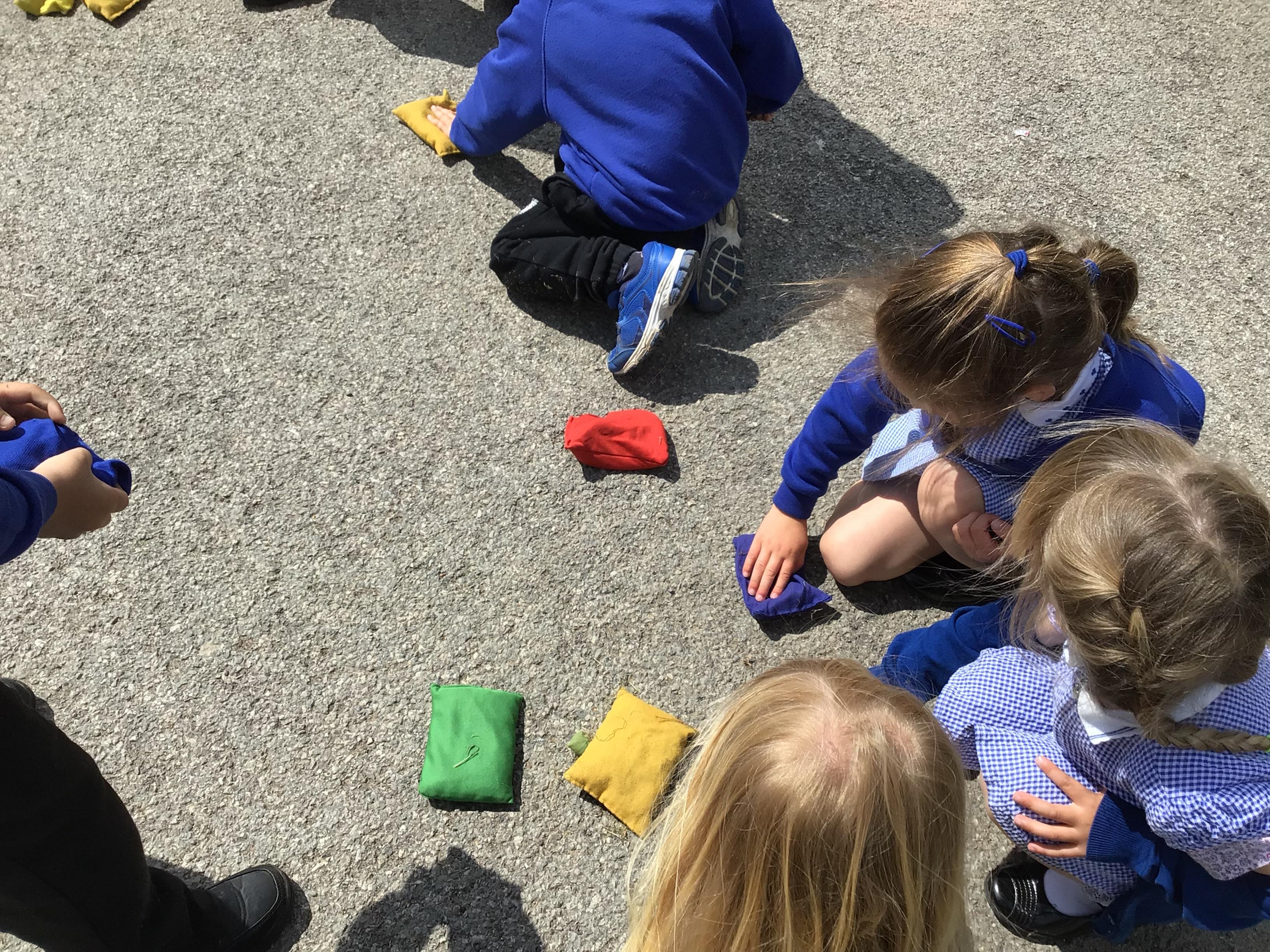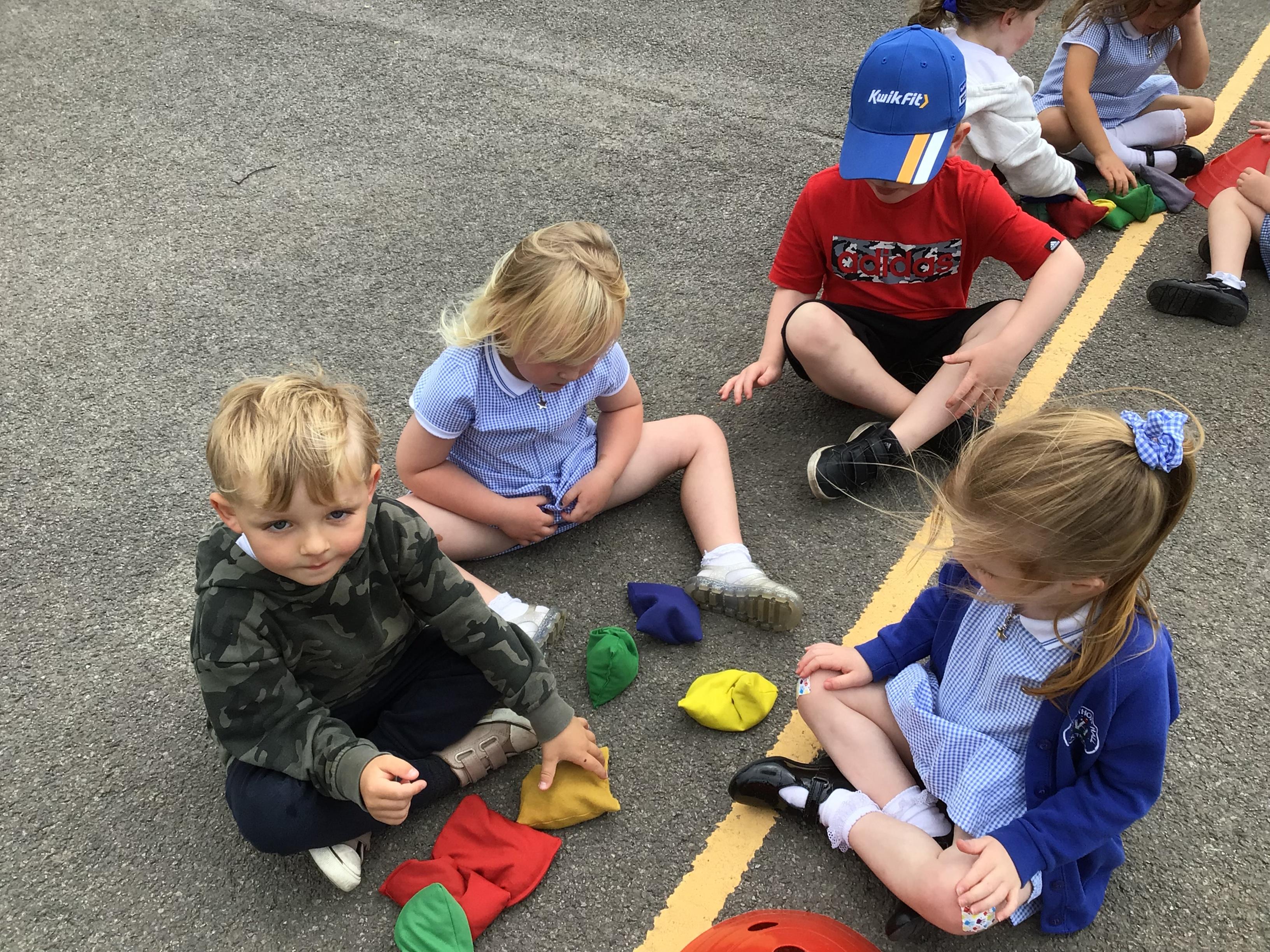 We had PE with Steve and Josh from Wrexham FC on the big yard.  We played 2 games, in one game we had to collect bean bags and see who had the most!  We had great fun.