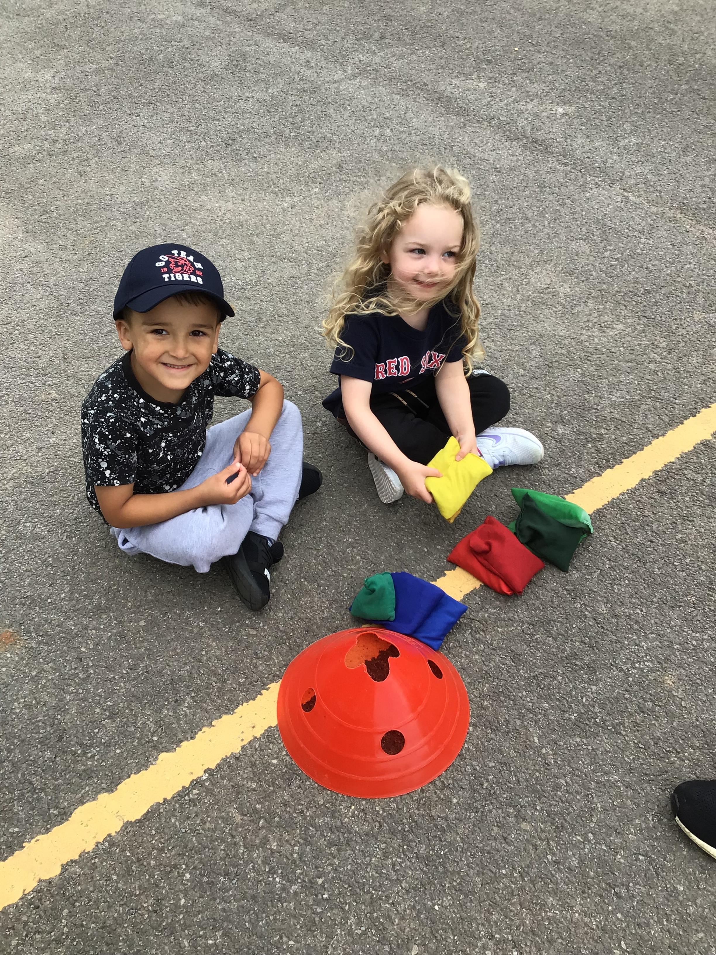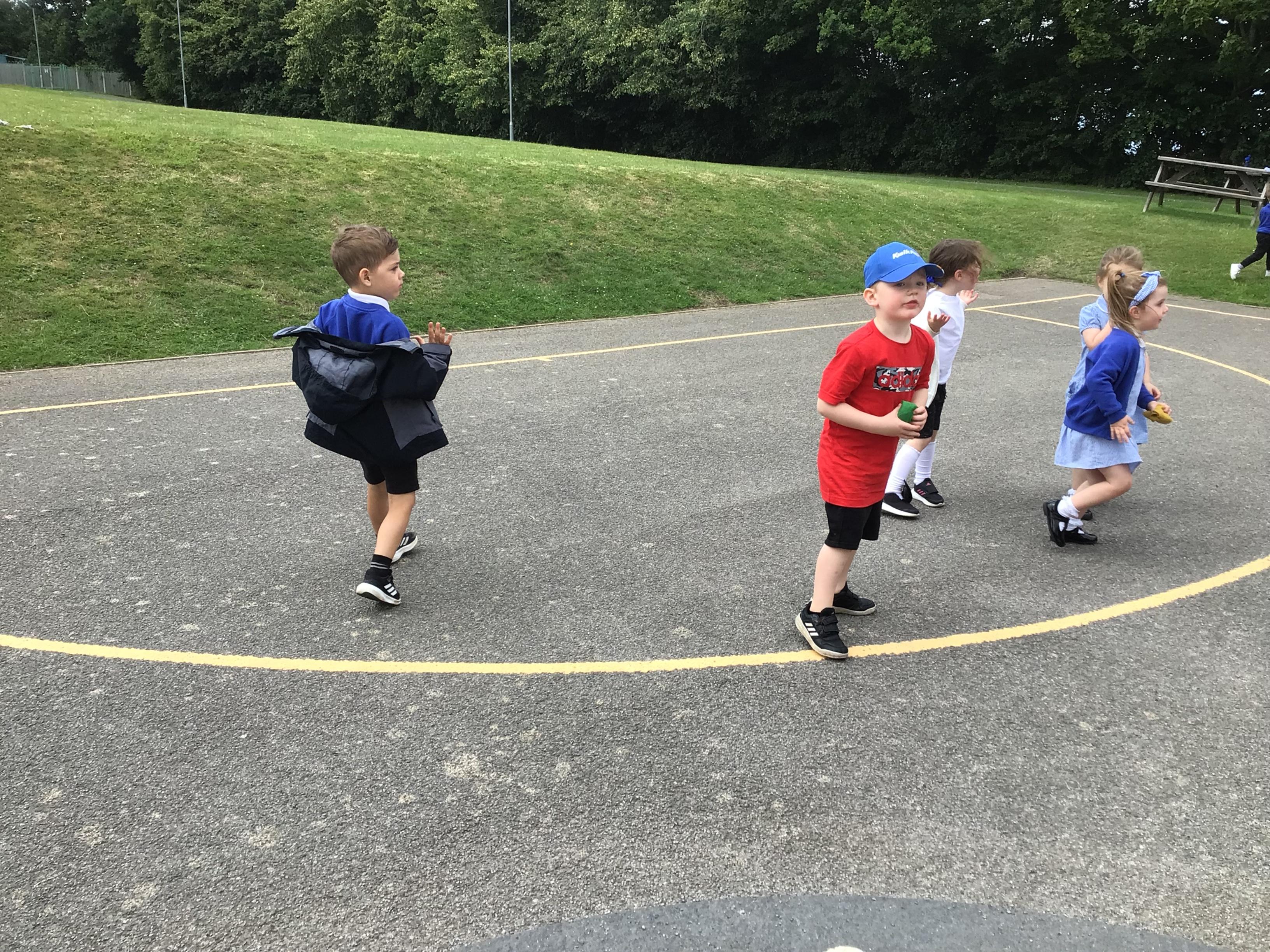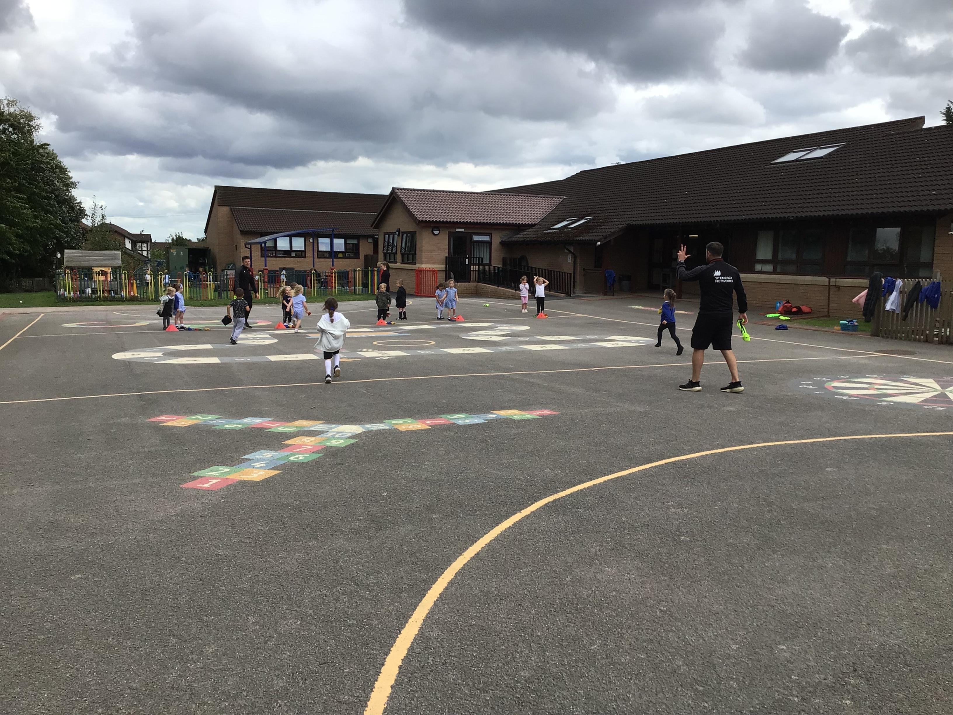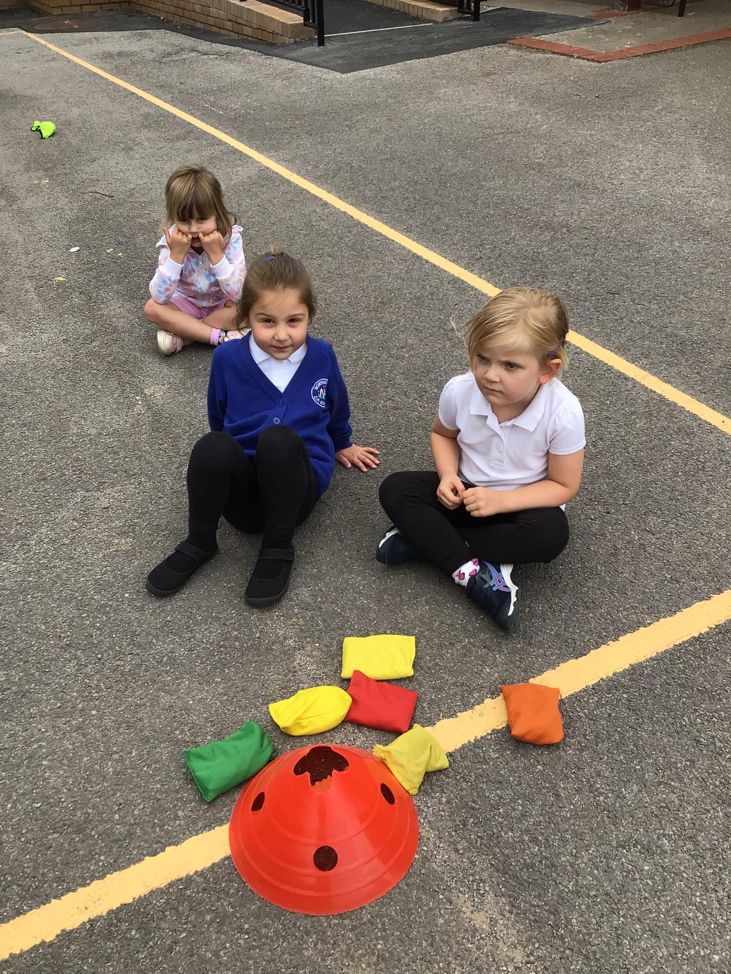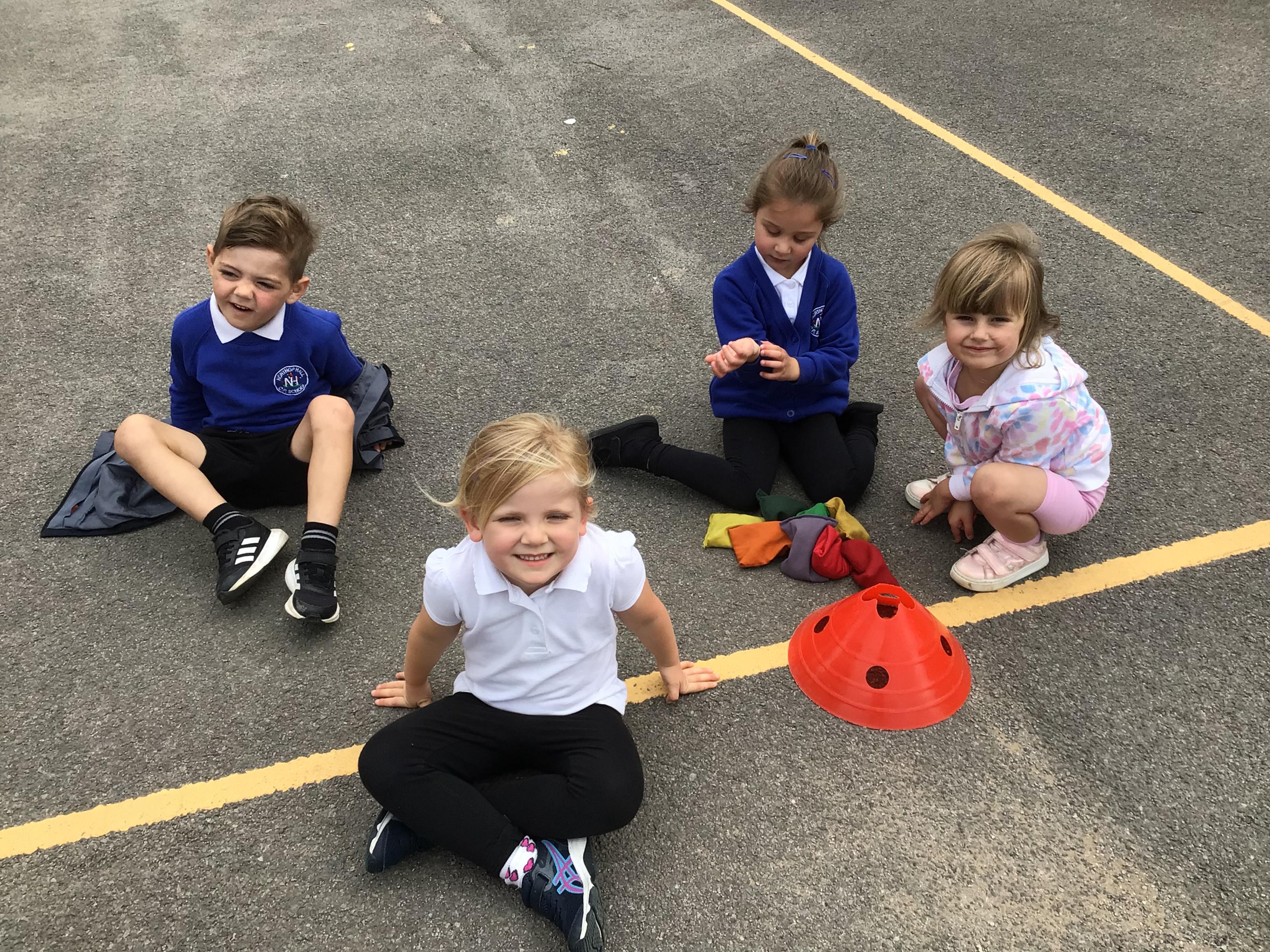 We had PE with Steve and Josh from Wrexham FC on the big yard.  We played 2 games, in one game we had to collect bean bags and see who had the most!  We had great fun.