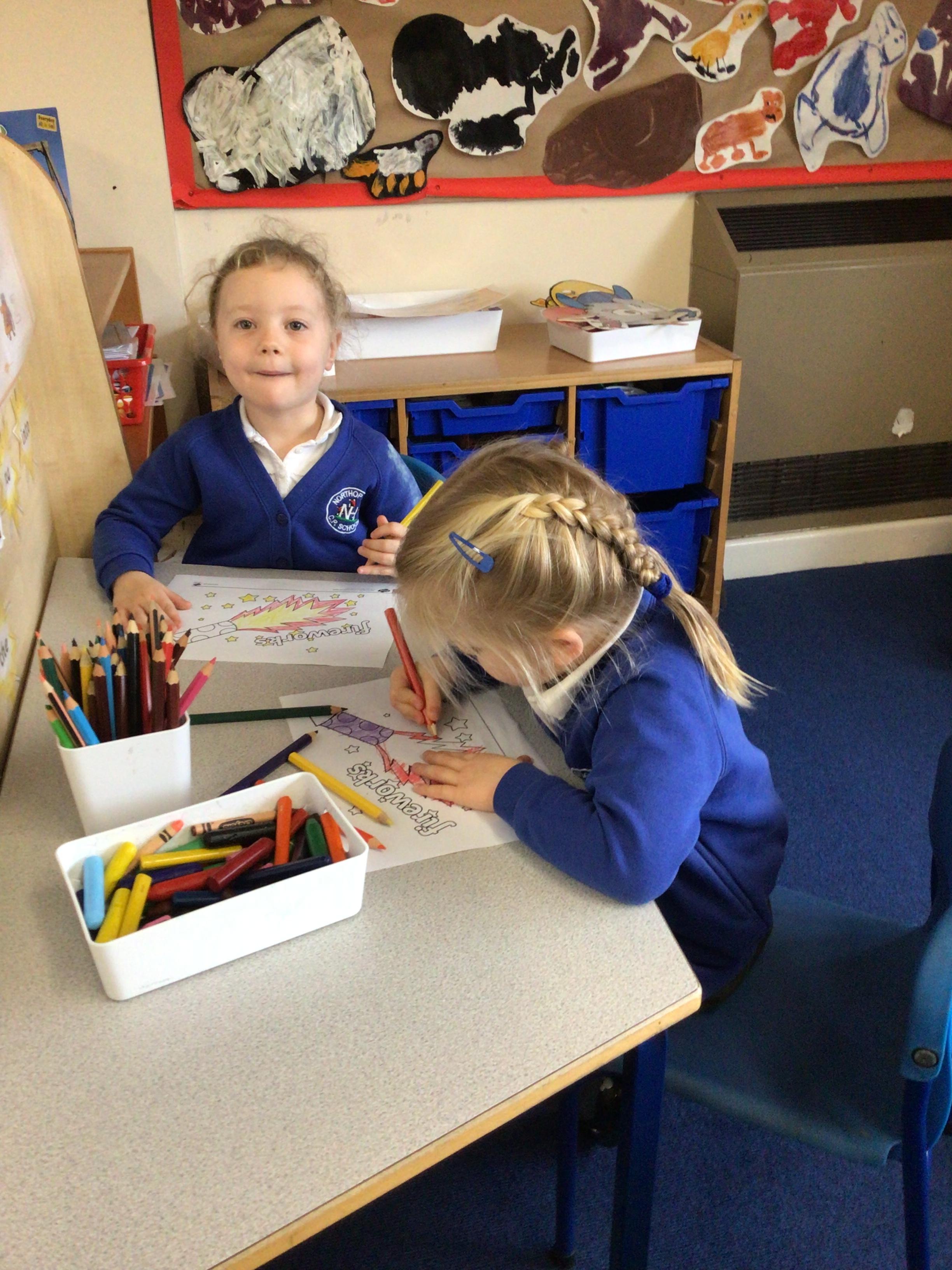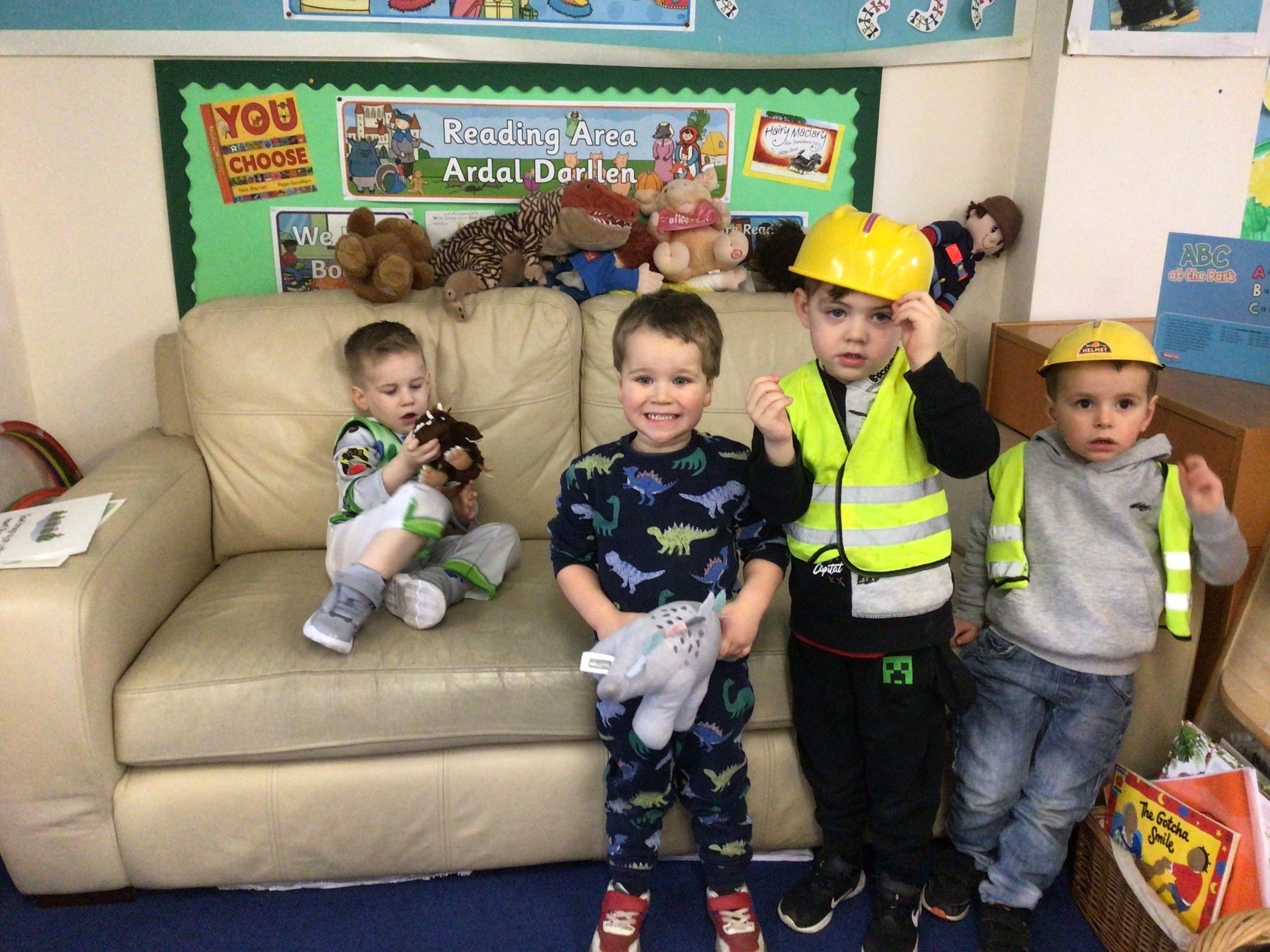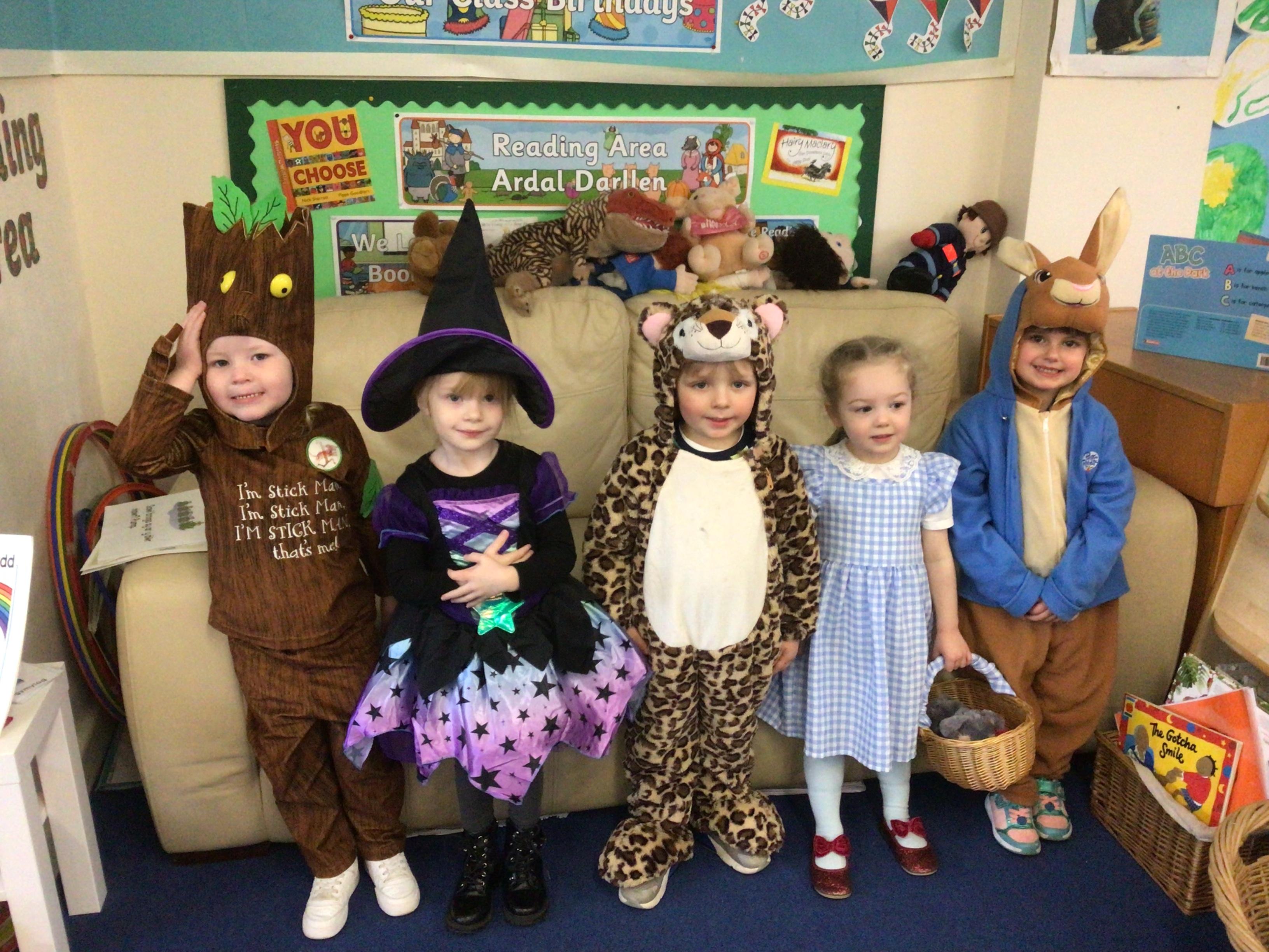We celebrated World Book Day today. Everyone came to school dressed as their favourite character from a book or as a crayon from the story The Day The Crayons Quit by Oliver Jeffers.   We made up our own stories in the story tray and shared a book with a partner in Reception.