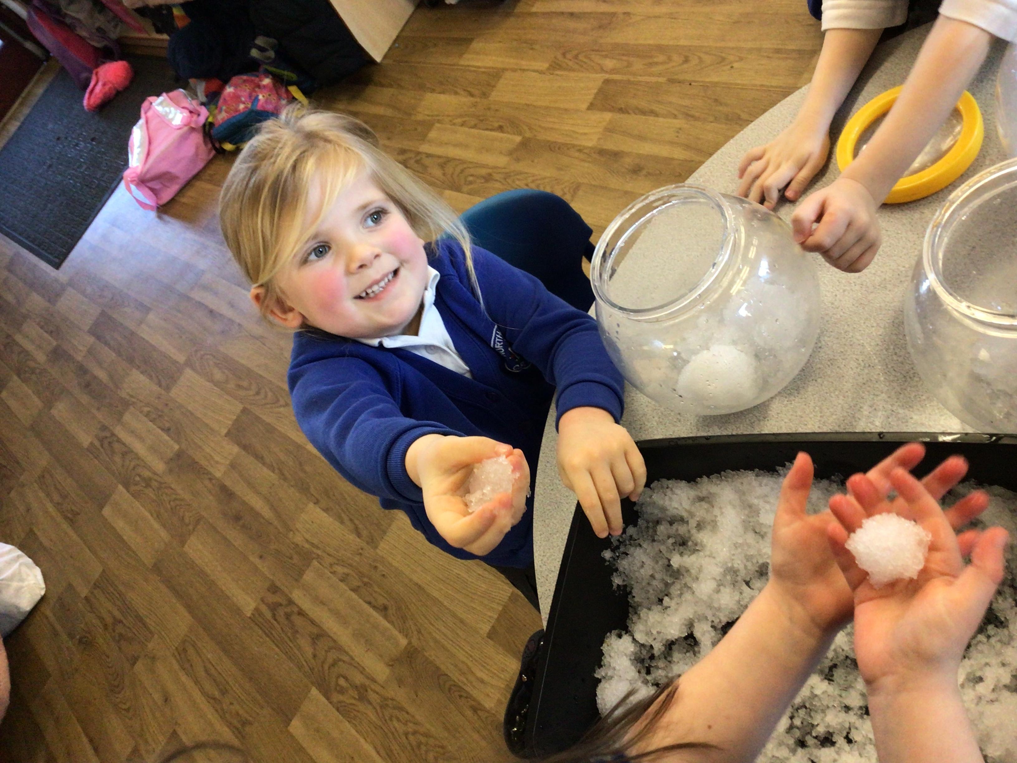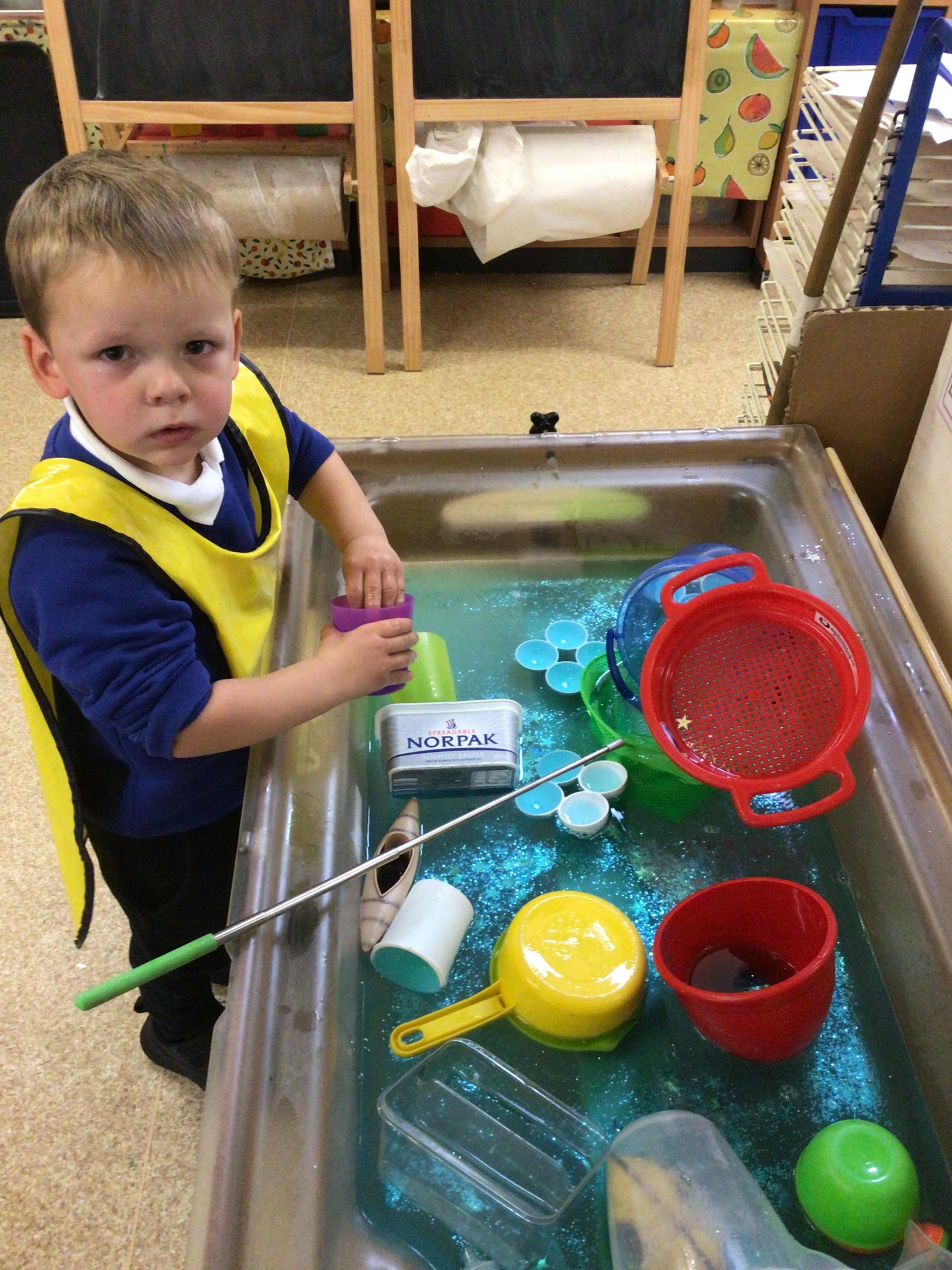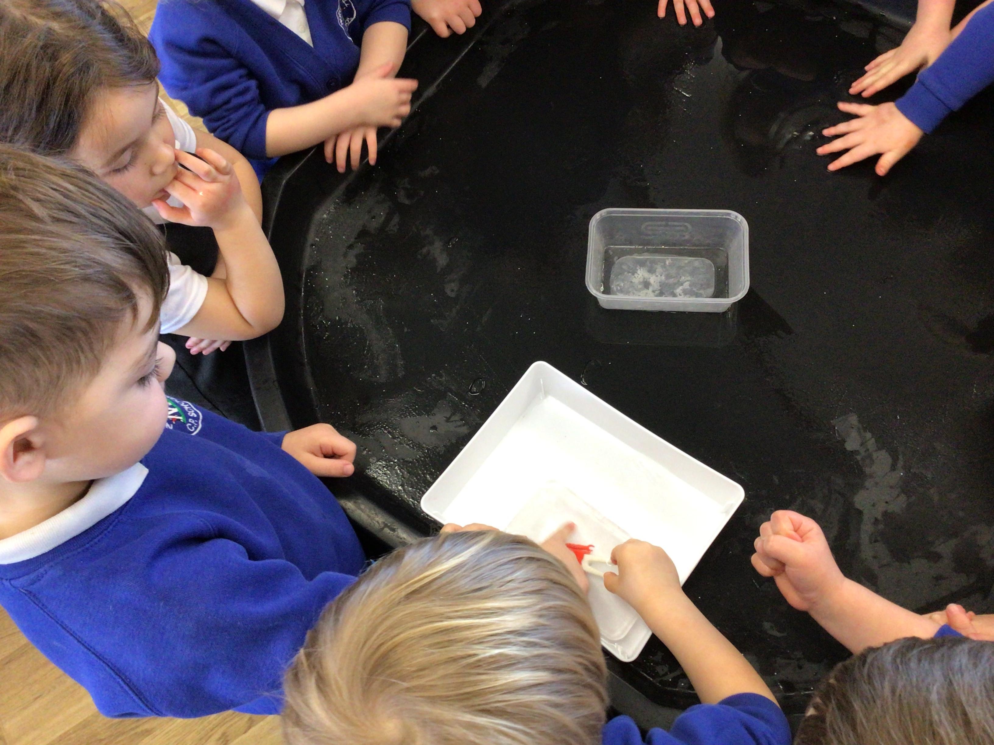 • We learnt about St Dwynwens day and in the story Maelon gets turned into a block of ice.  We explored big blocks of ice in the water tray.