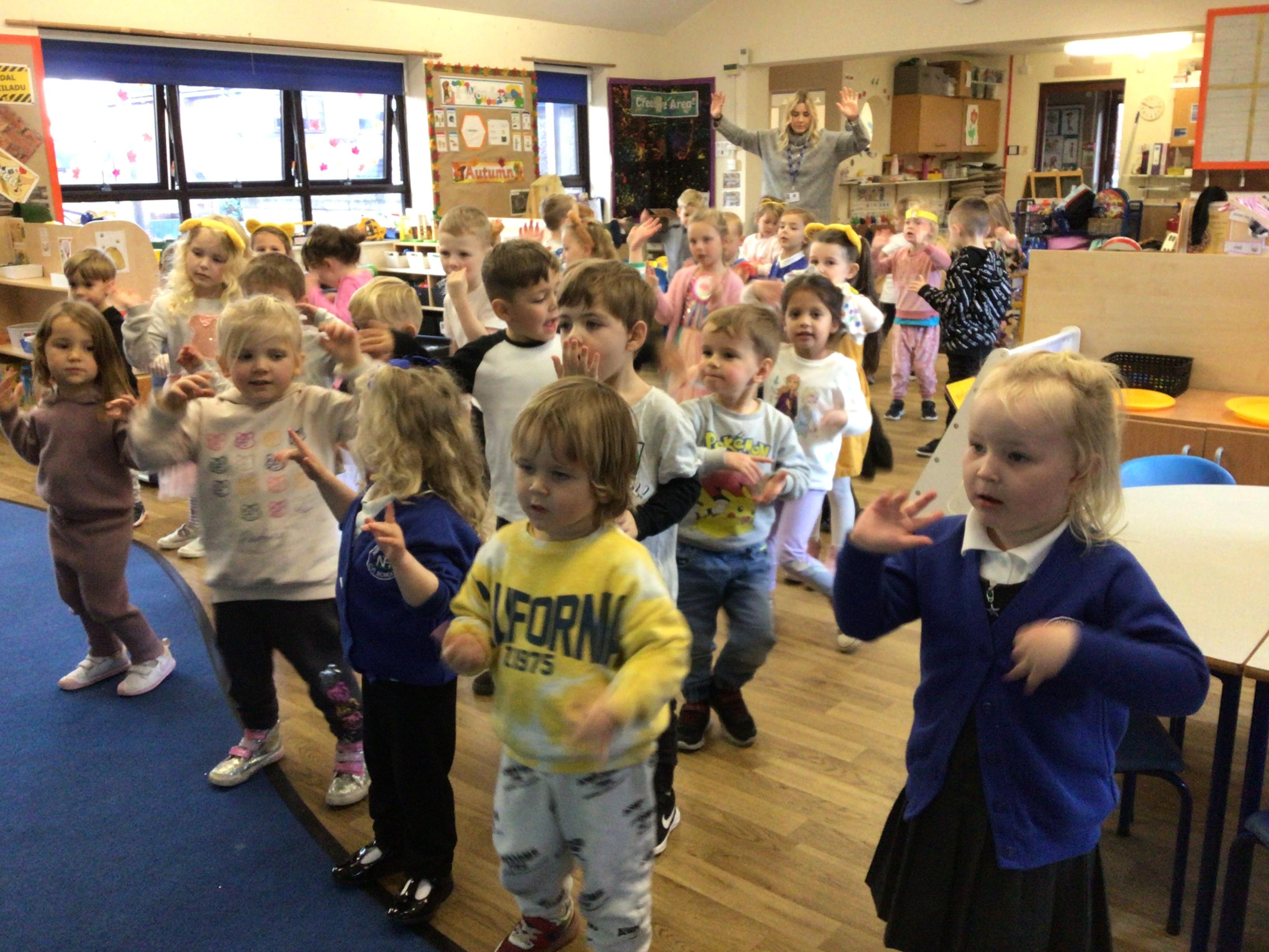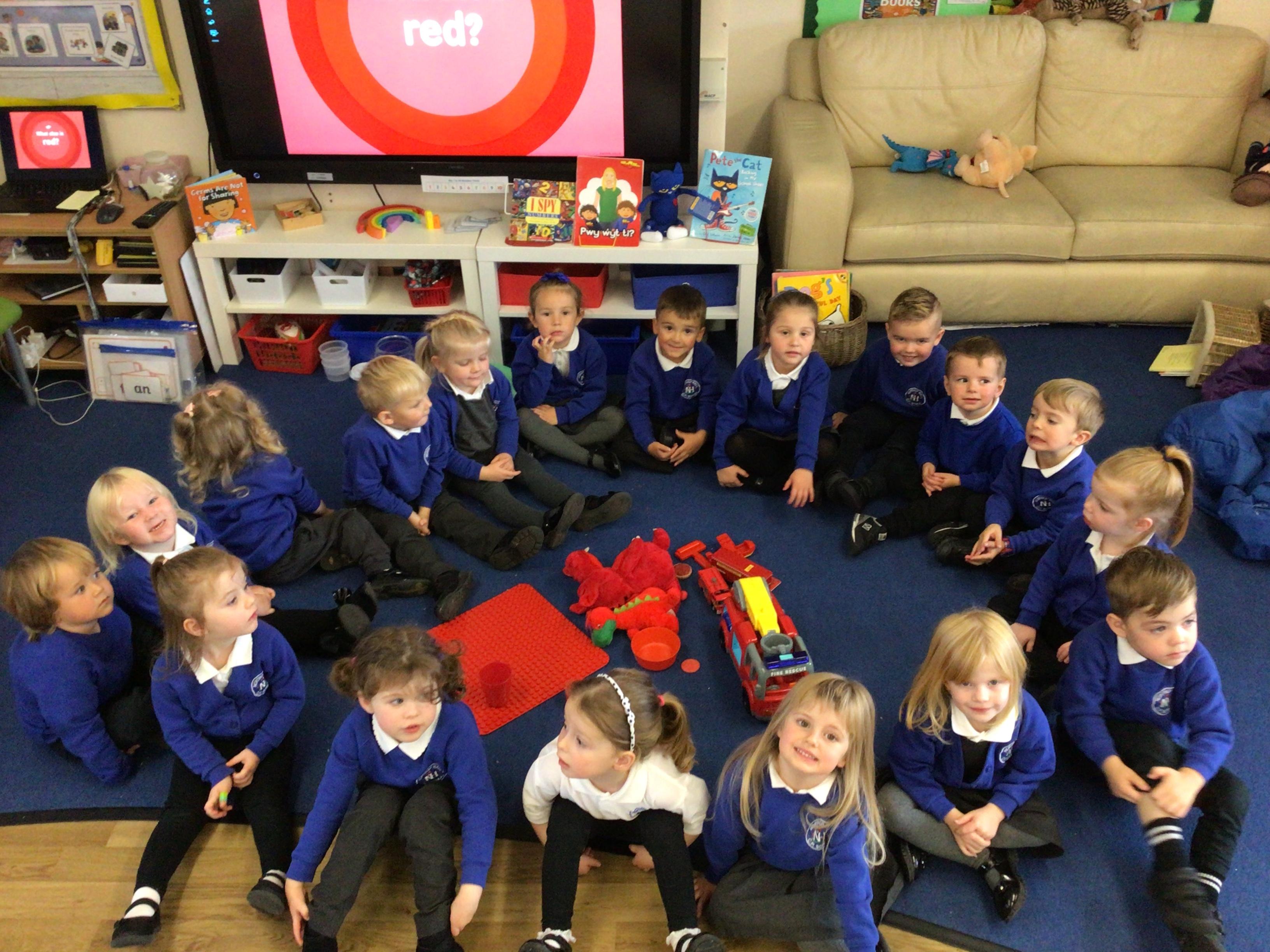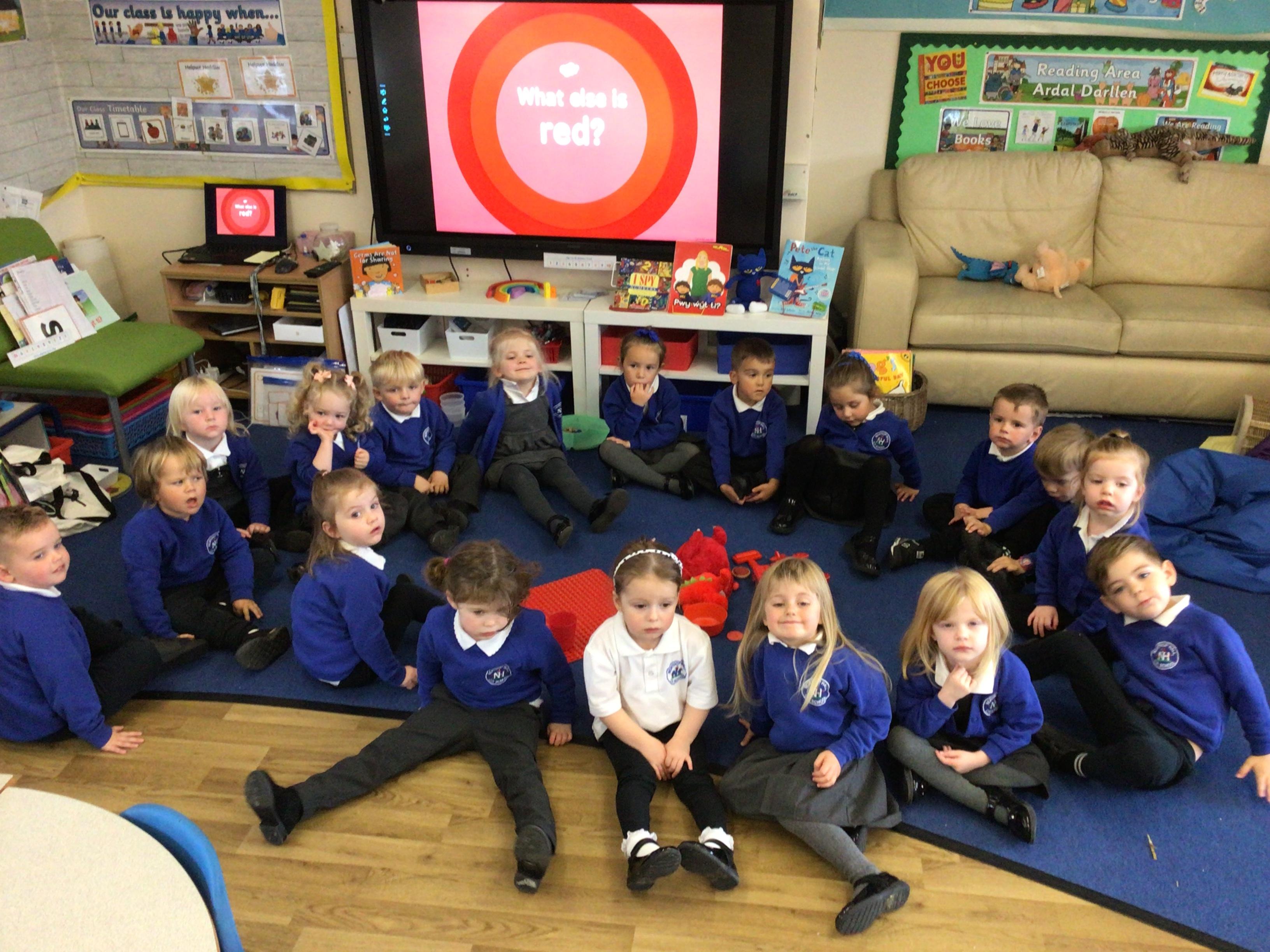 ��������������  We celebrated Dydd Miswig Cymraeg - Welsh language music day.  We listened to some songs in Welsh and joined in with ‘Pen, ysgwyddau, coesau, traed!’  ��������������