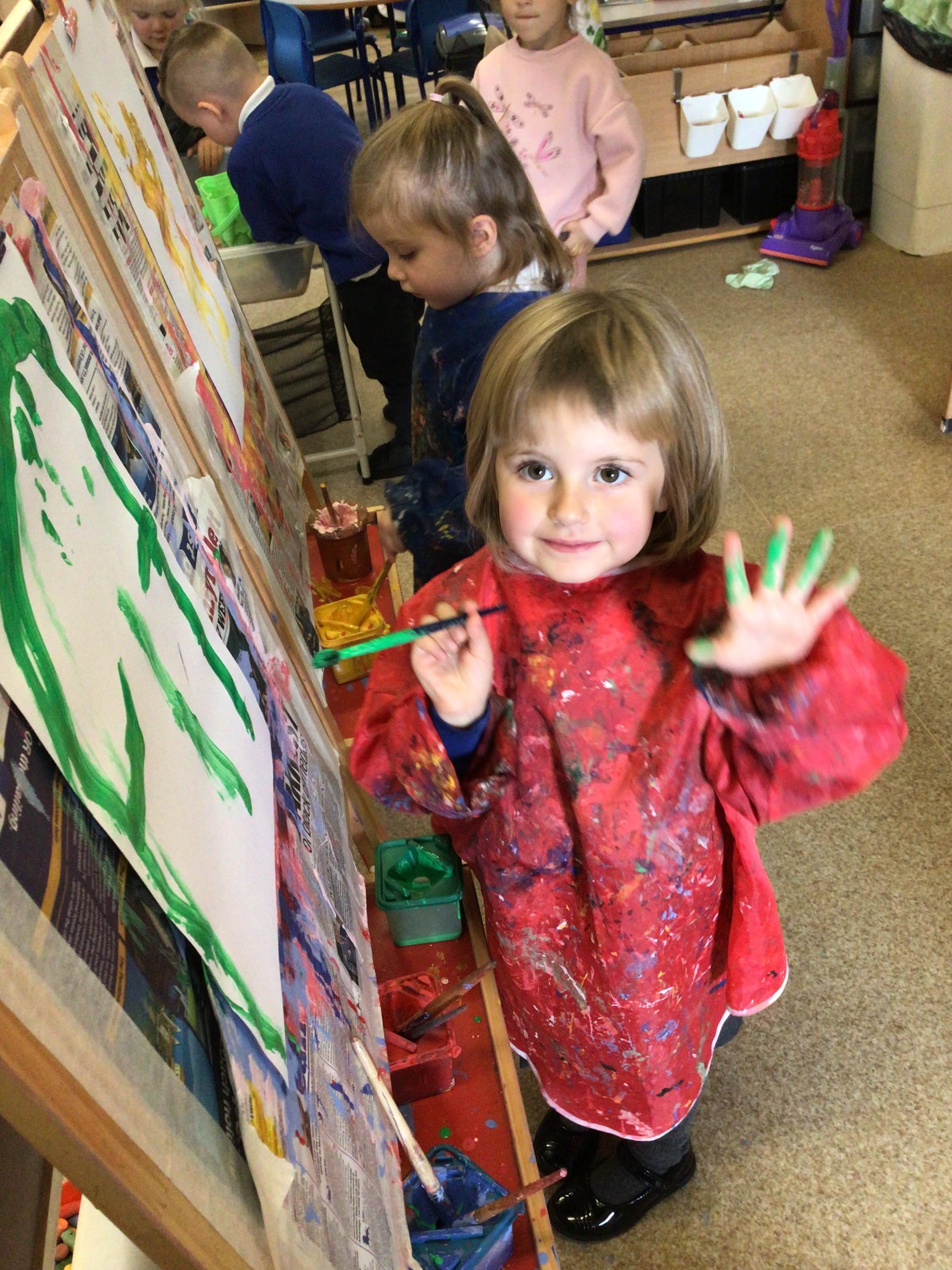 • We have been practising writing, drawing and painting “up” lines after our Wiggle dance to ‘The only way is up!’.