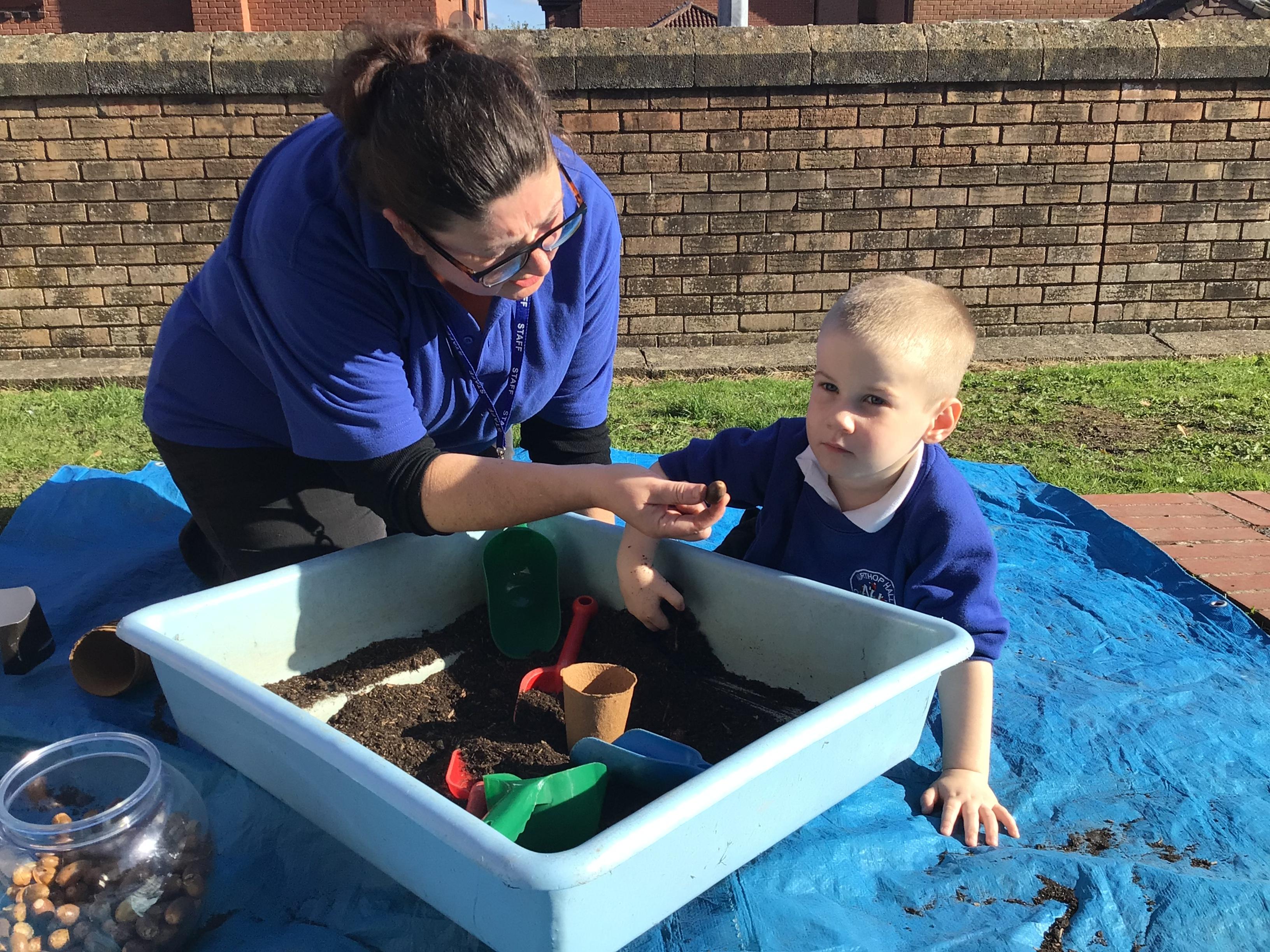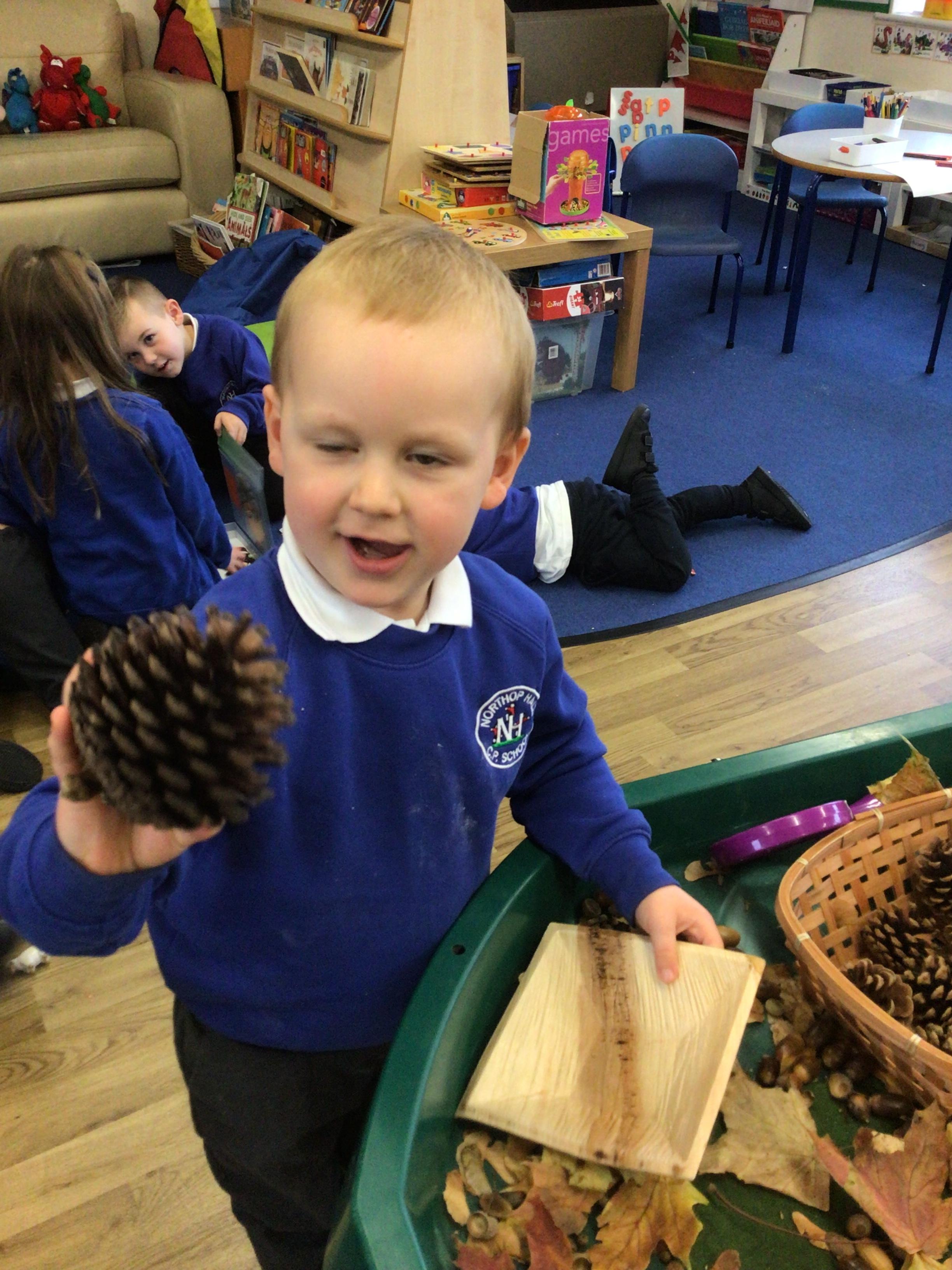 We went on an Autumn walk with a Reception partner and collected acorns, helicopters and Autumn leaves.  ��������