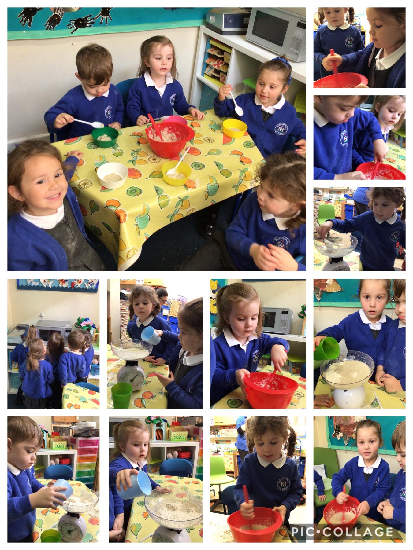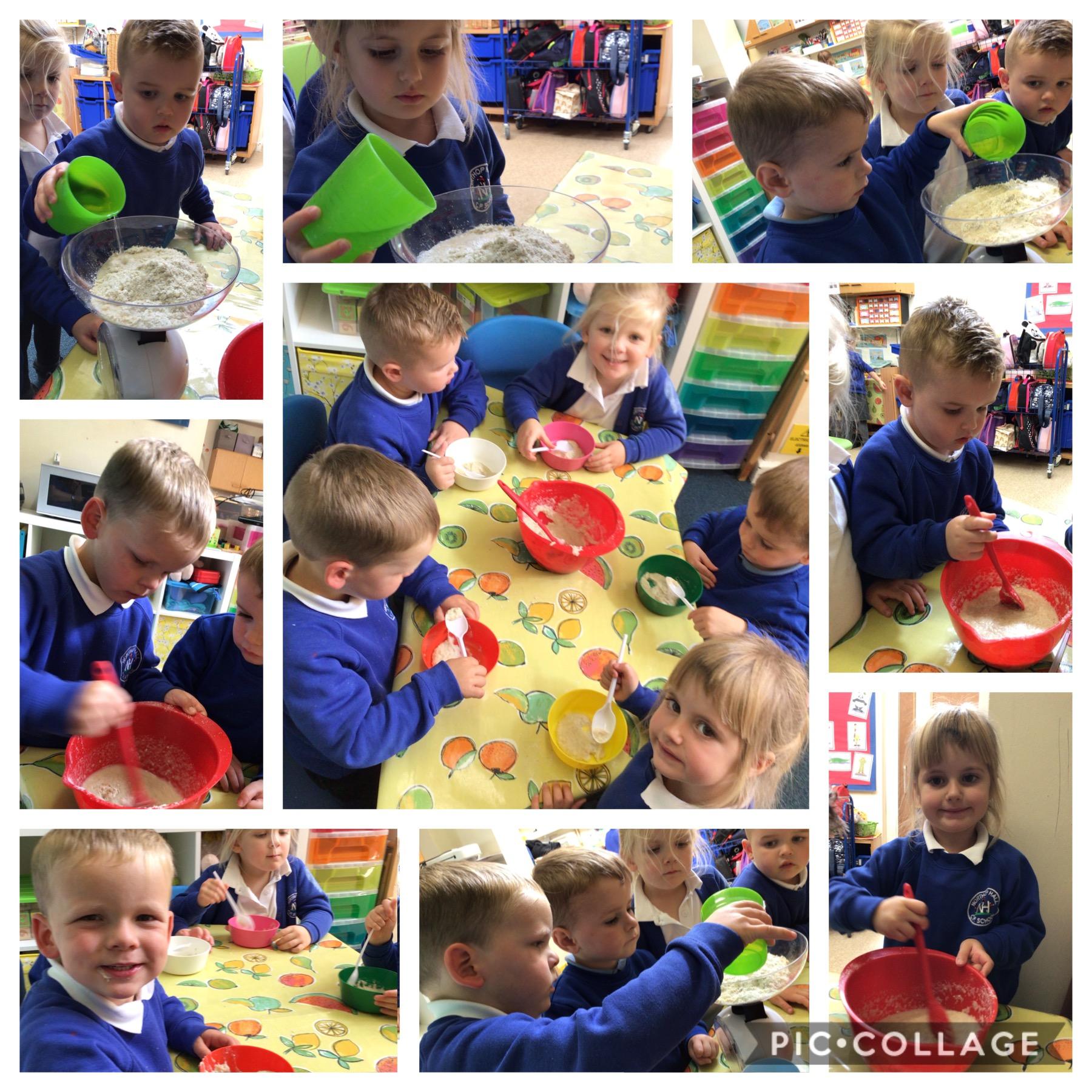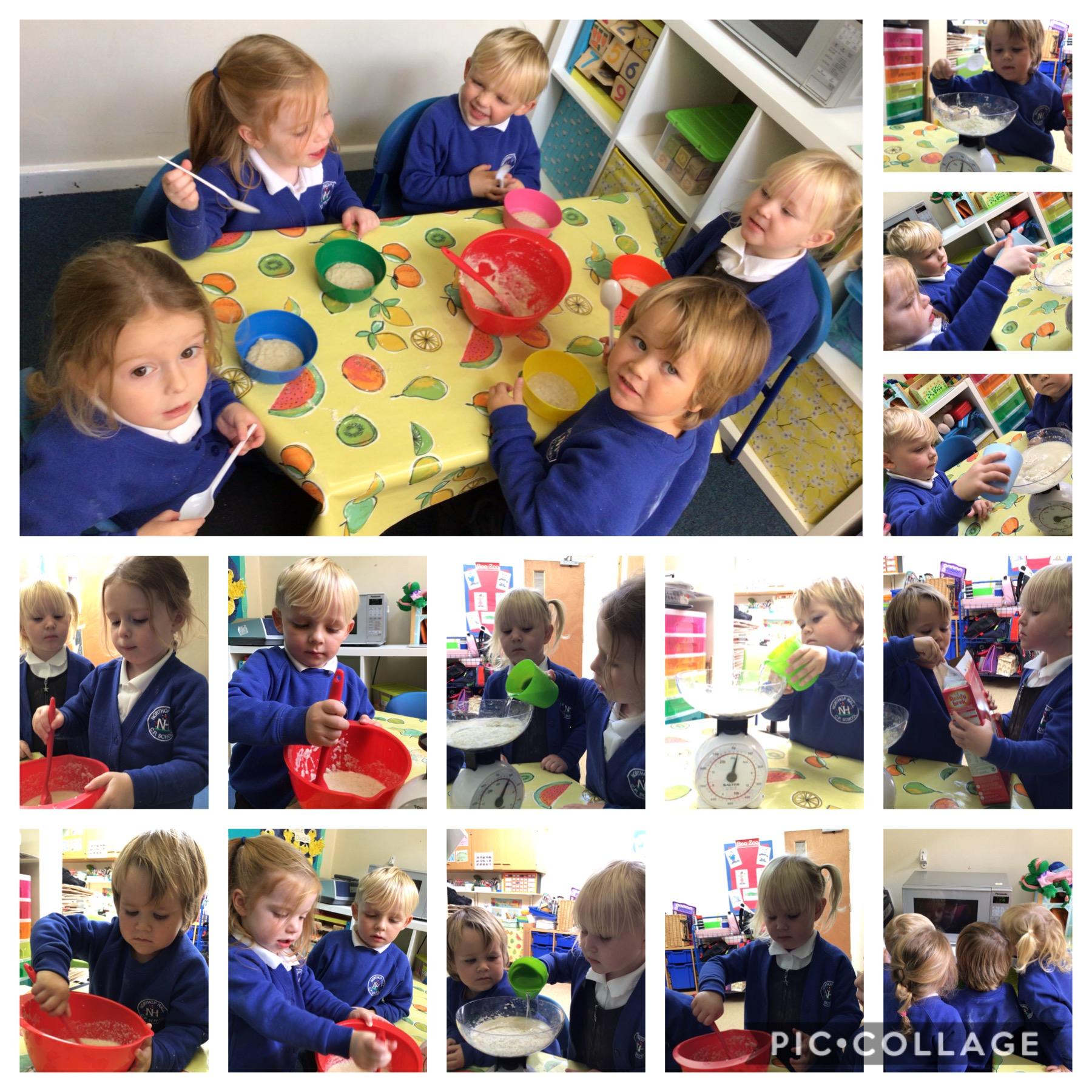 We have been reading the story of Goldilocks and the Three Bears. Today we followed a recipe and made porridge just like the bears eat. It wasn’t too hot or too cold. It was just right.