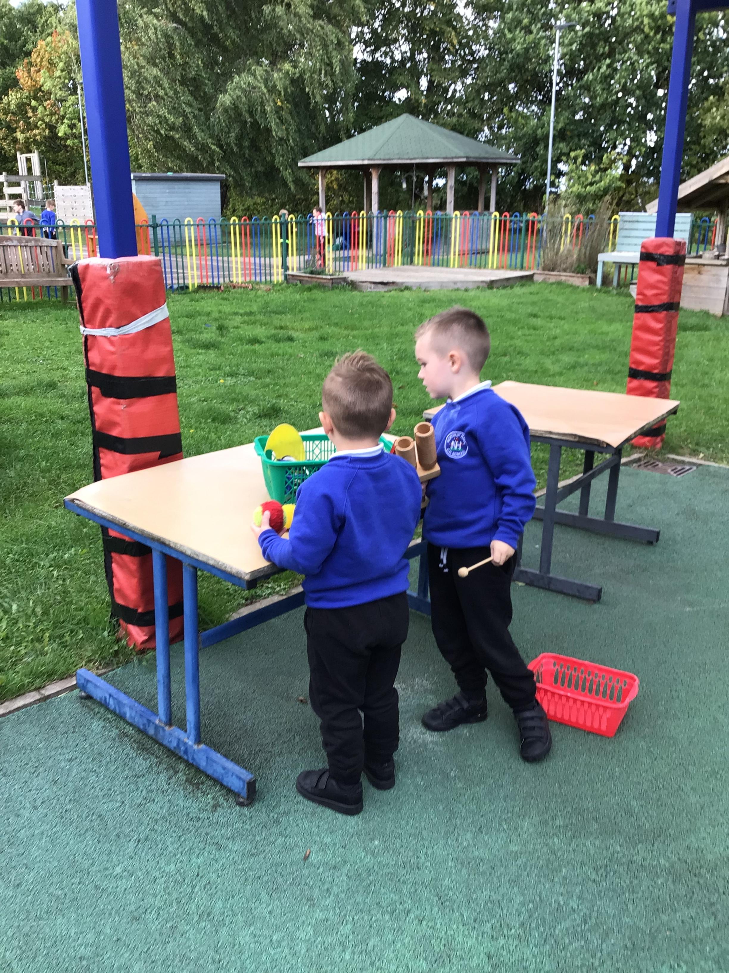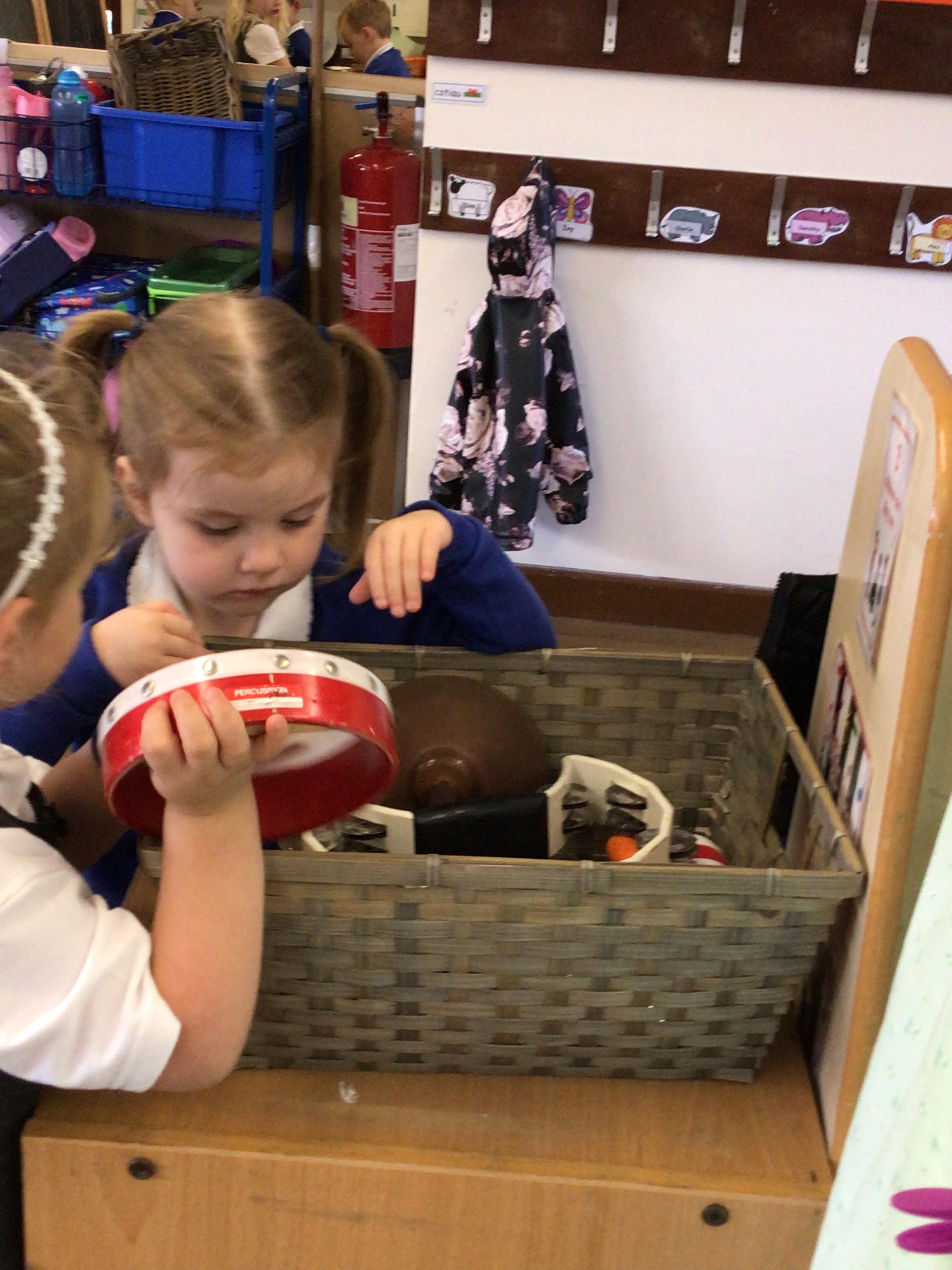 In groups, we went into the hall and watched a firework display. Mrs Griffith then turned the sound down and we used the different instruments to make the noises of the fireworks.