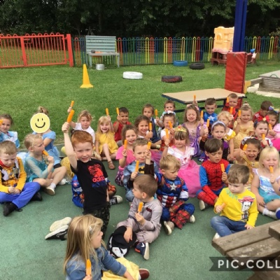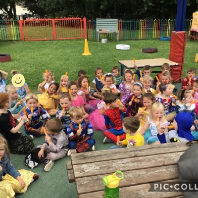 We had a costume day to celebrate the end of term. We wore a costume or our favourite clothes. We all had an ice cream!