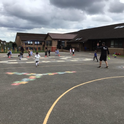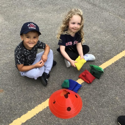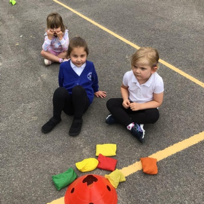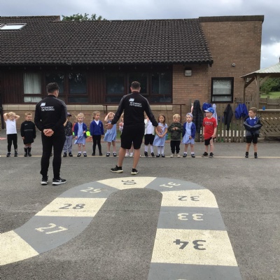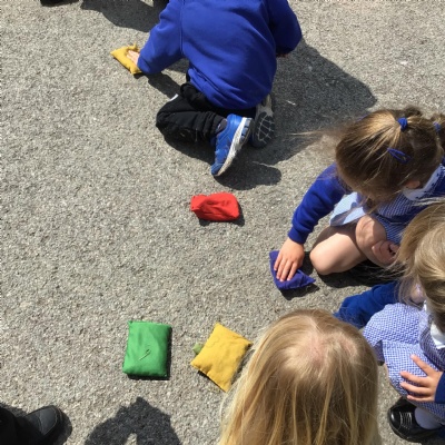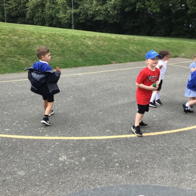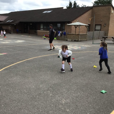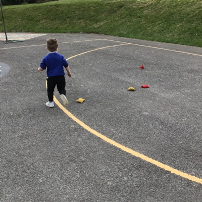 We had PE with Steve and Josh from Wrexham FC on the big yard.  We played 2 games, in one game we had to collect bean bags and see who had the most!  We had great fun.
