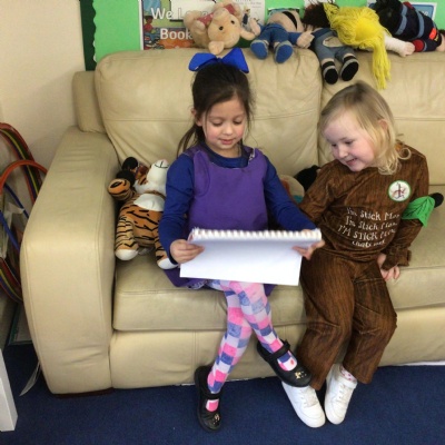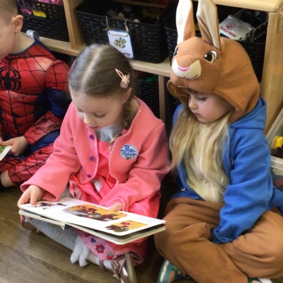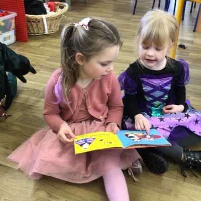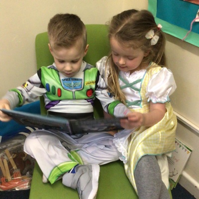 We celebrated World Book Day today. Everyone came to school dressed as their favourite character from a book or as a crayon from the story The Day The Crayons Quit by Oliver Jeffers.   We made up our own stories in the story tray and shared a book with a partner in Reception.