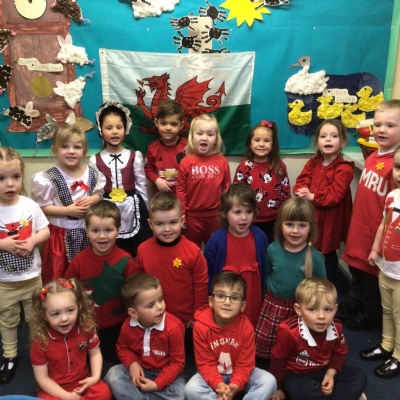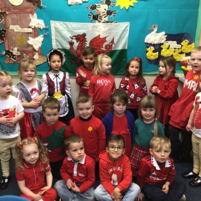 We celebrated St David’s Day today.  Everyone wore the colours of the Welsh flag or traditional Welsh costumes.  We made dragon pictures and at the end of the day we shared some Welsh songs with our families.