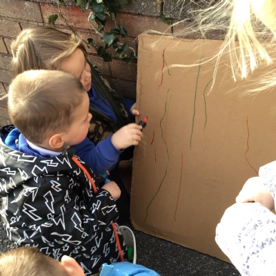 • We have been practising writing, drawing and painting “up” lines after our Wiggle dance to ‘The only way is up!’.