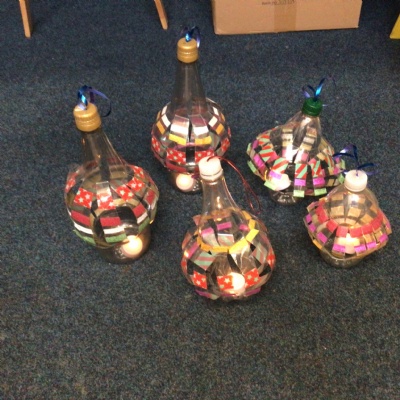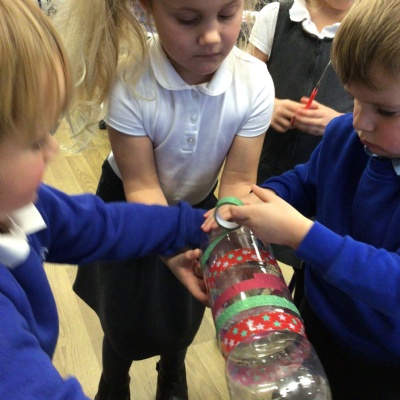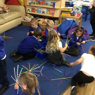 In groups, we went into the hall and watched a firework display. Mrs Griffith then turned the sound down and we used the different instruments to make the noises of the fireworks.