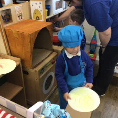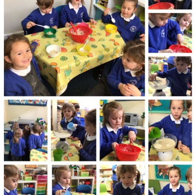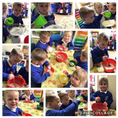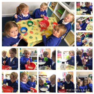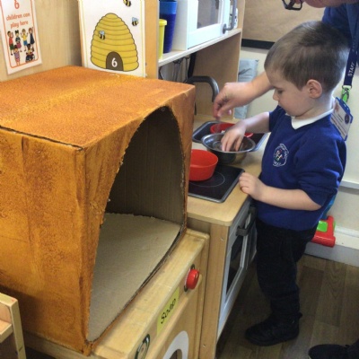 We have been reading the story of Goldilocks and the Three Bears. Today we followed a recipe and made porridge just like the bears eat. It wasn’t too hot or too cold. It was just right.
