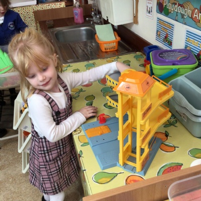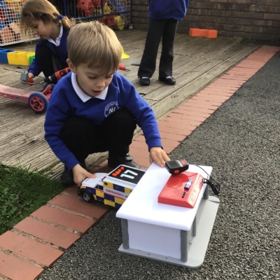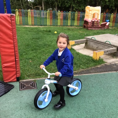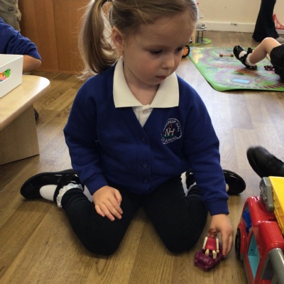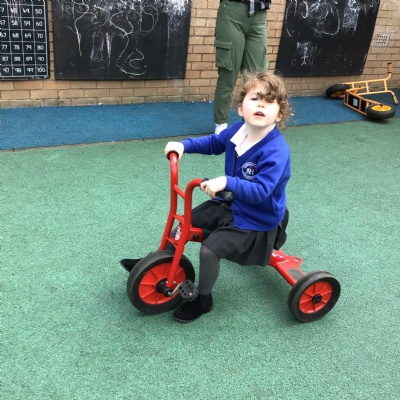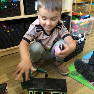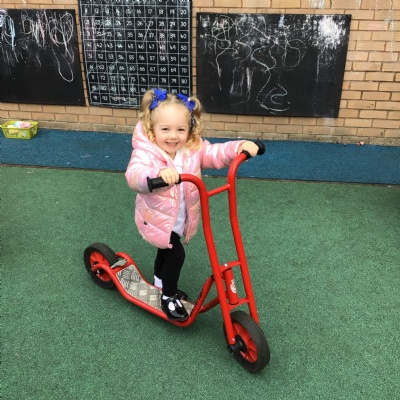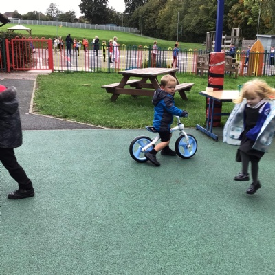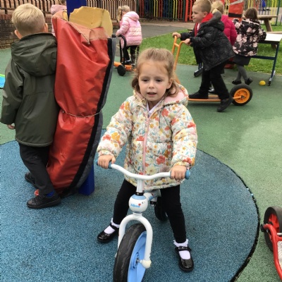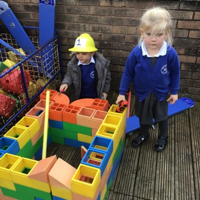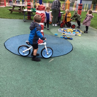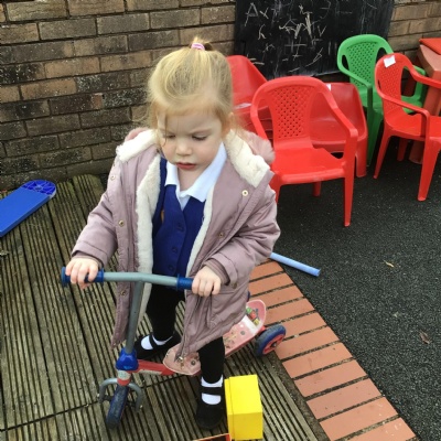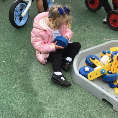 This week we played in the “big outside” area with the bikes, scooters and large construction.