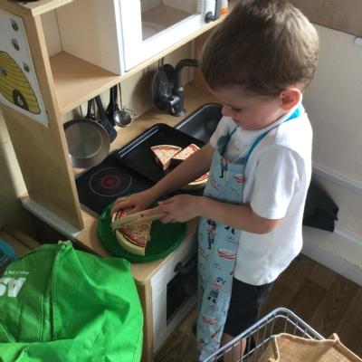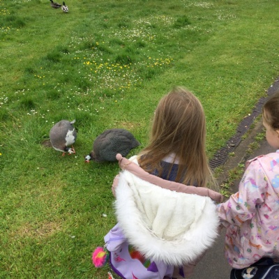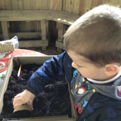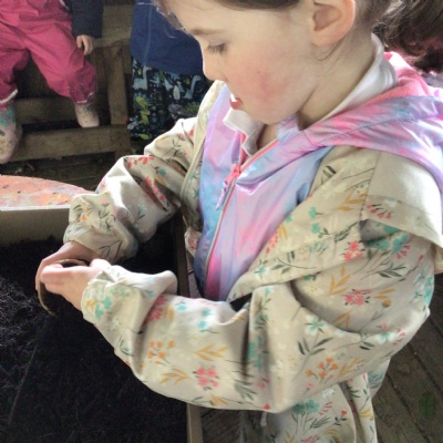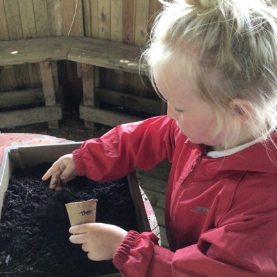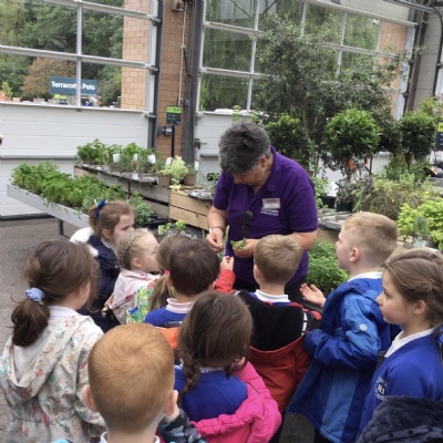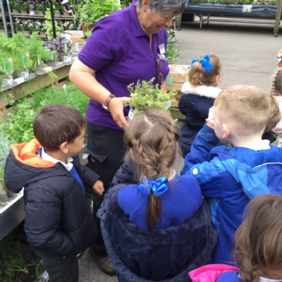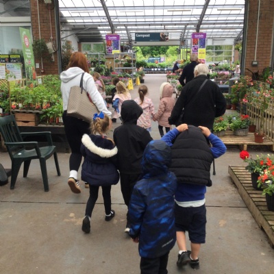 At the garden centre:  we planted seeds, we had a look at all the vegetables and herbs that grew and we learnt about the different insects that are important for plants.  We then had our snack in the coffee shop and had a walk around outside.