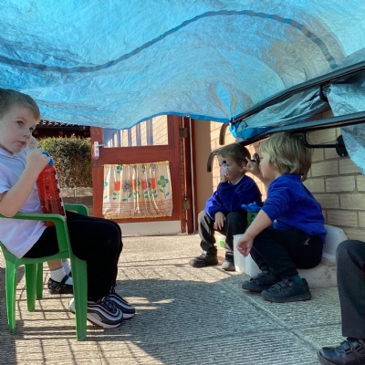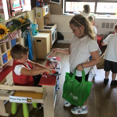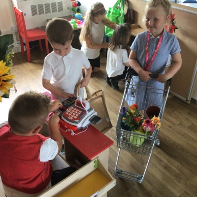Our class garden centre is open for business. We have plants, flowers, seeds, garden equipment for sale. There is even a cafe!