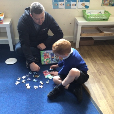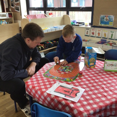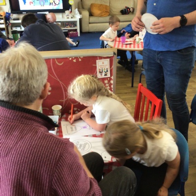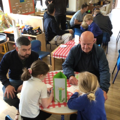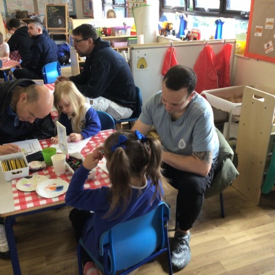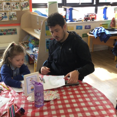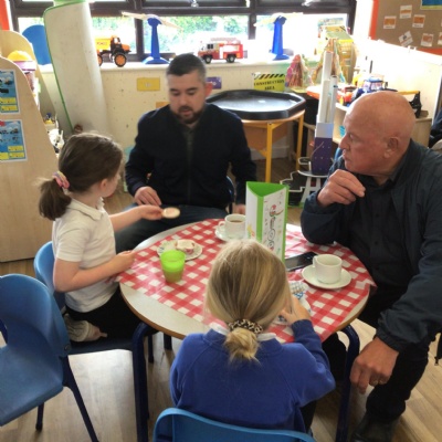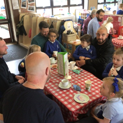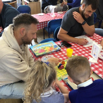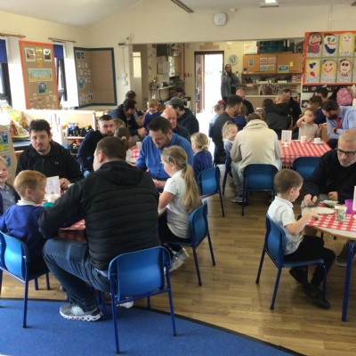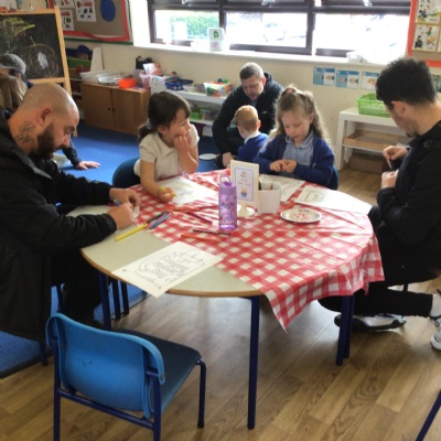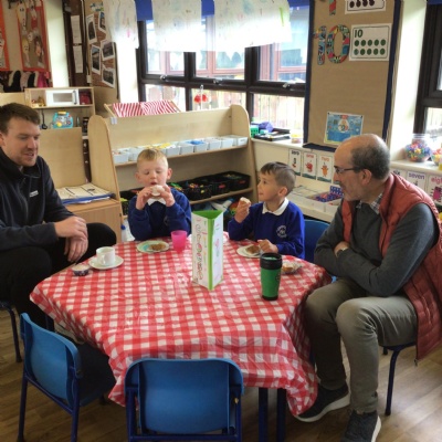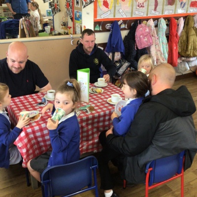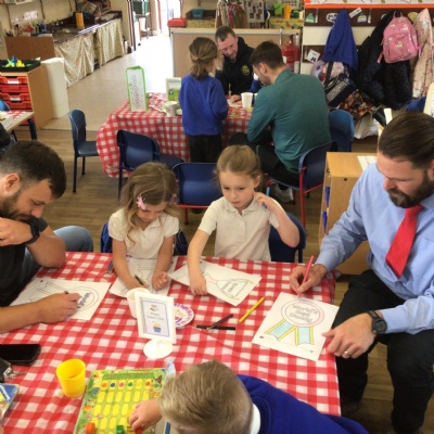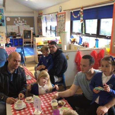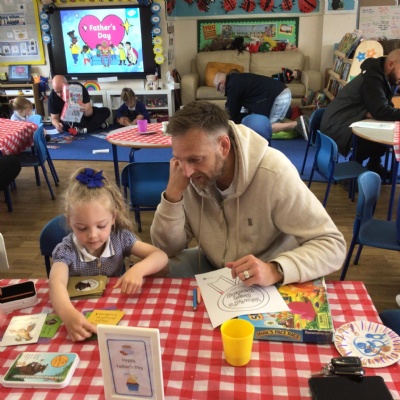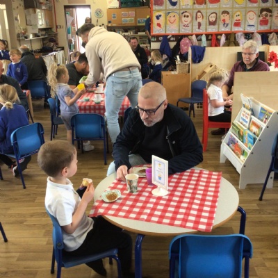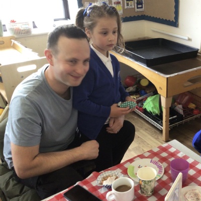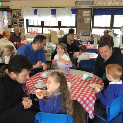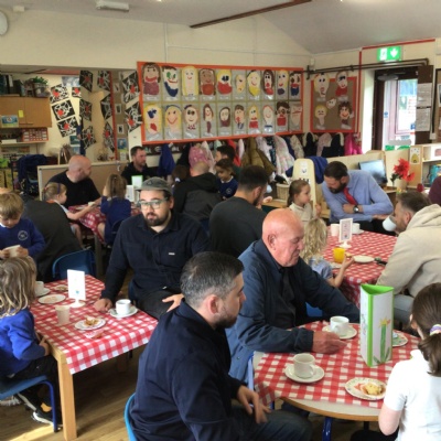 We invited our Dads, Grandads and carers to our Fathers Day cafe in school this morning.  We had baked cakes and decorated special plates for our guests.   Grown ups had a hot drink and a cake and we had squash and a cake. After that we did some colourings, games, jigsaws and shared books with our special guests.  ❤️