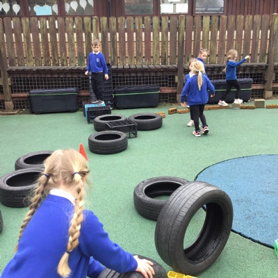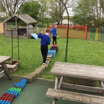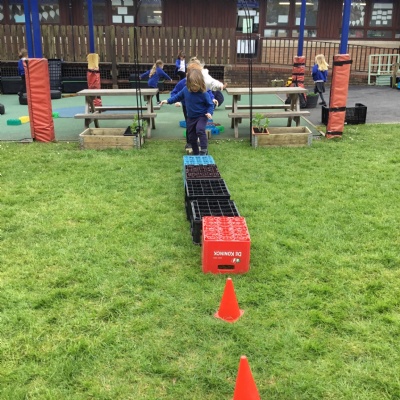 We built our own mazes and obstacle courses today!