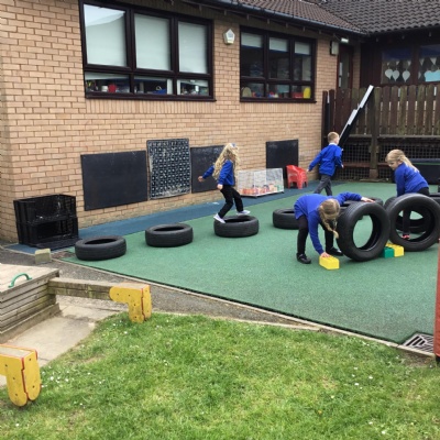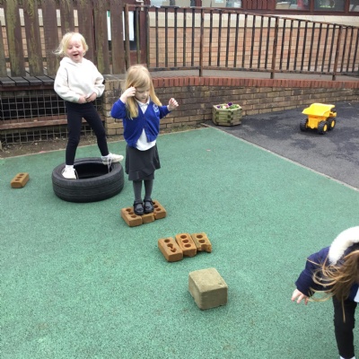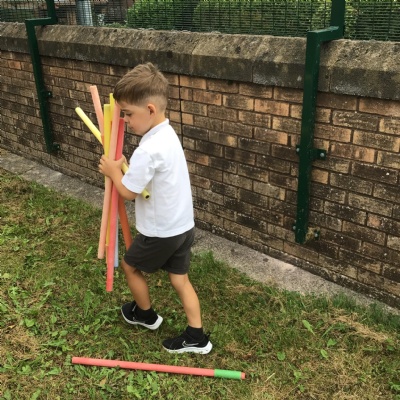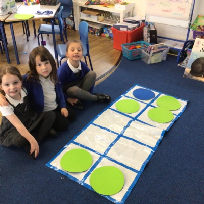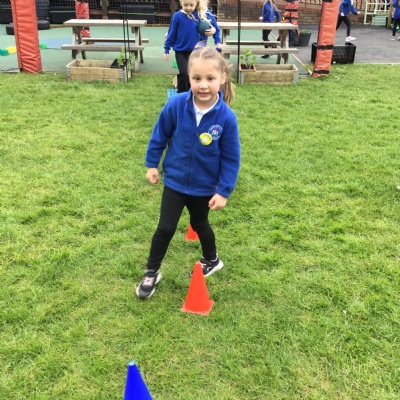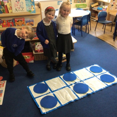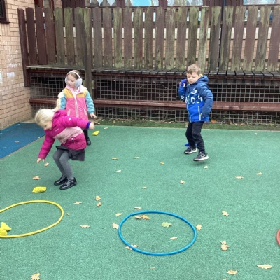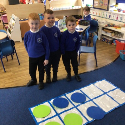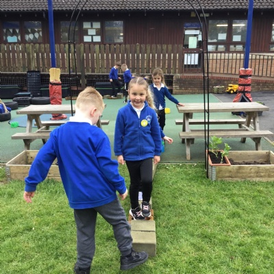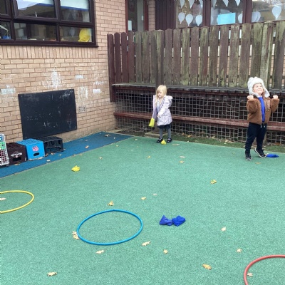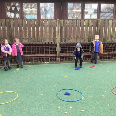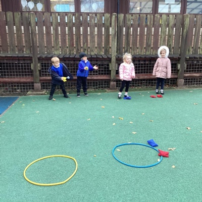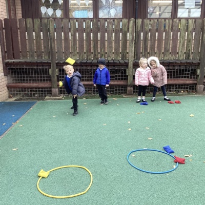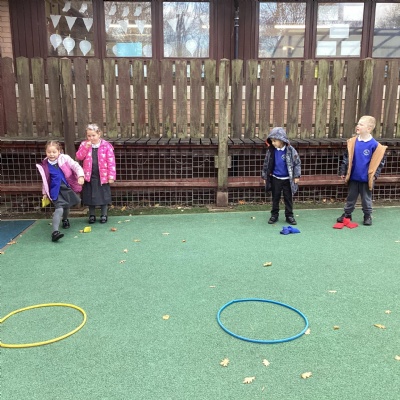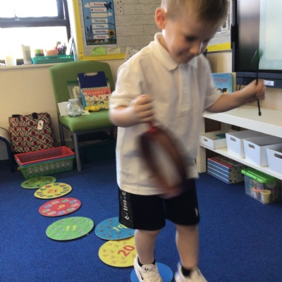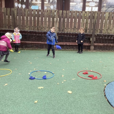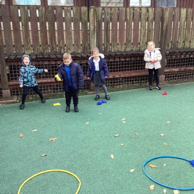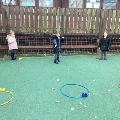 We played a 123 game outside with Mr Moody.  We had to see how many of our 3 bean bags we could throw into the hoops.