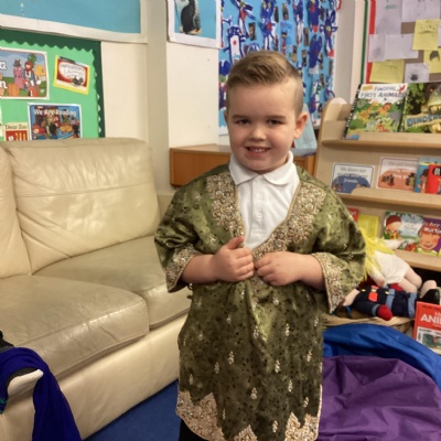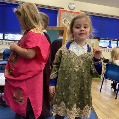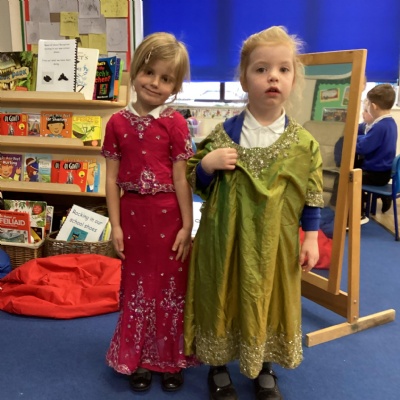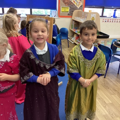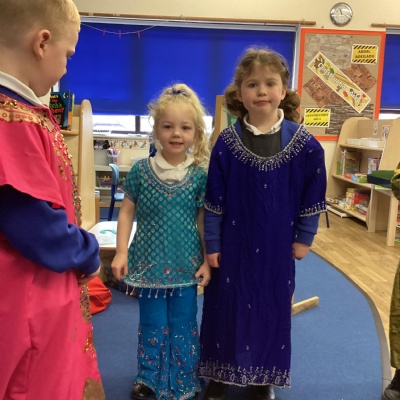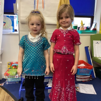We dressed up in special clothes, made Rangoli patterns and Diya lamps.