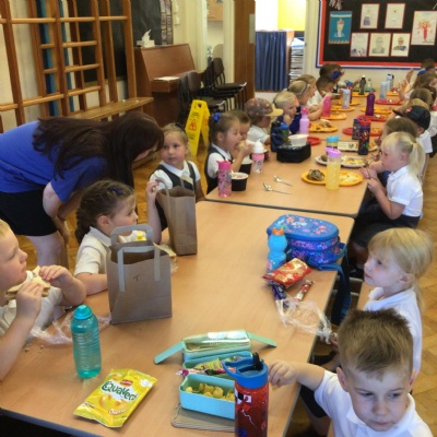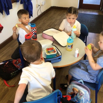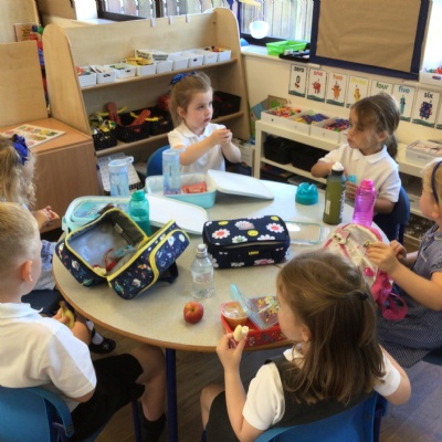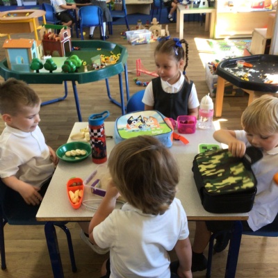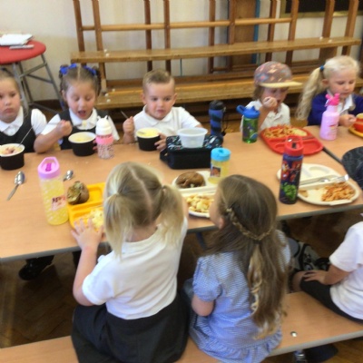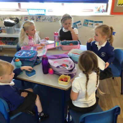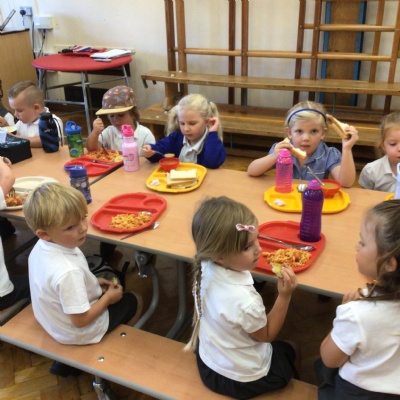 What a fantastic and busy first morning Reception have had. We are so proud of how well they all came in on their own and settled into class. They loved having their lunch in the dinner hall too!