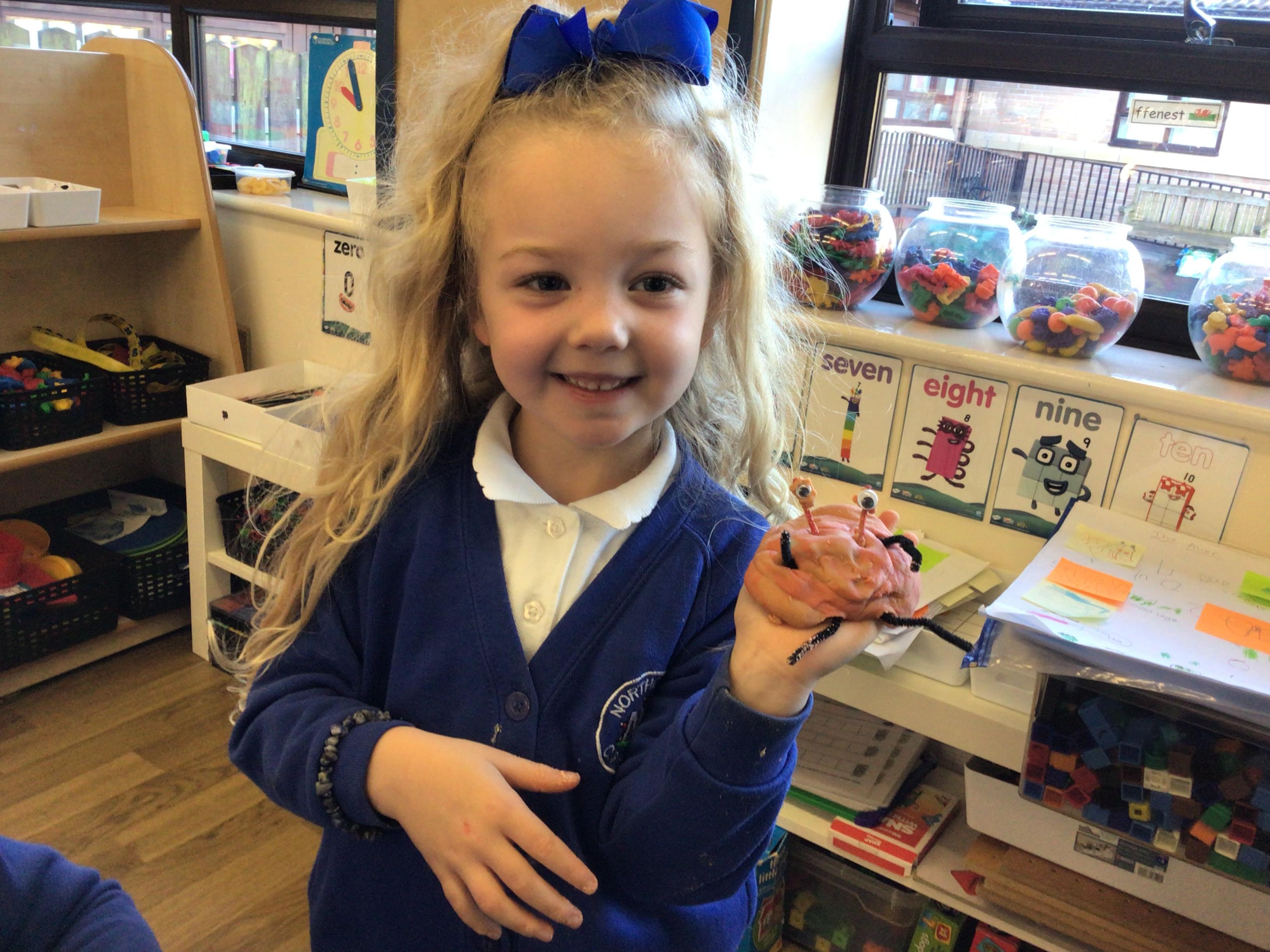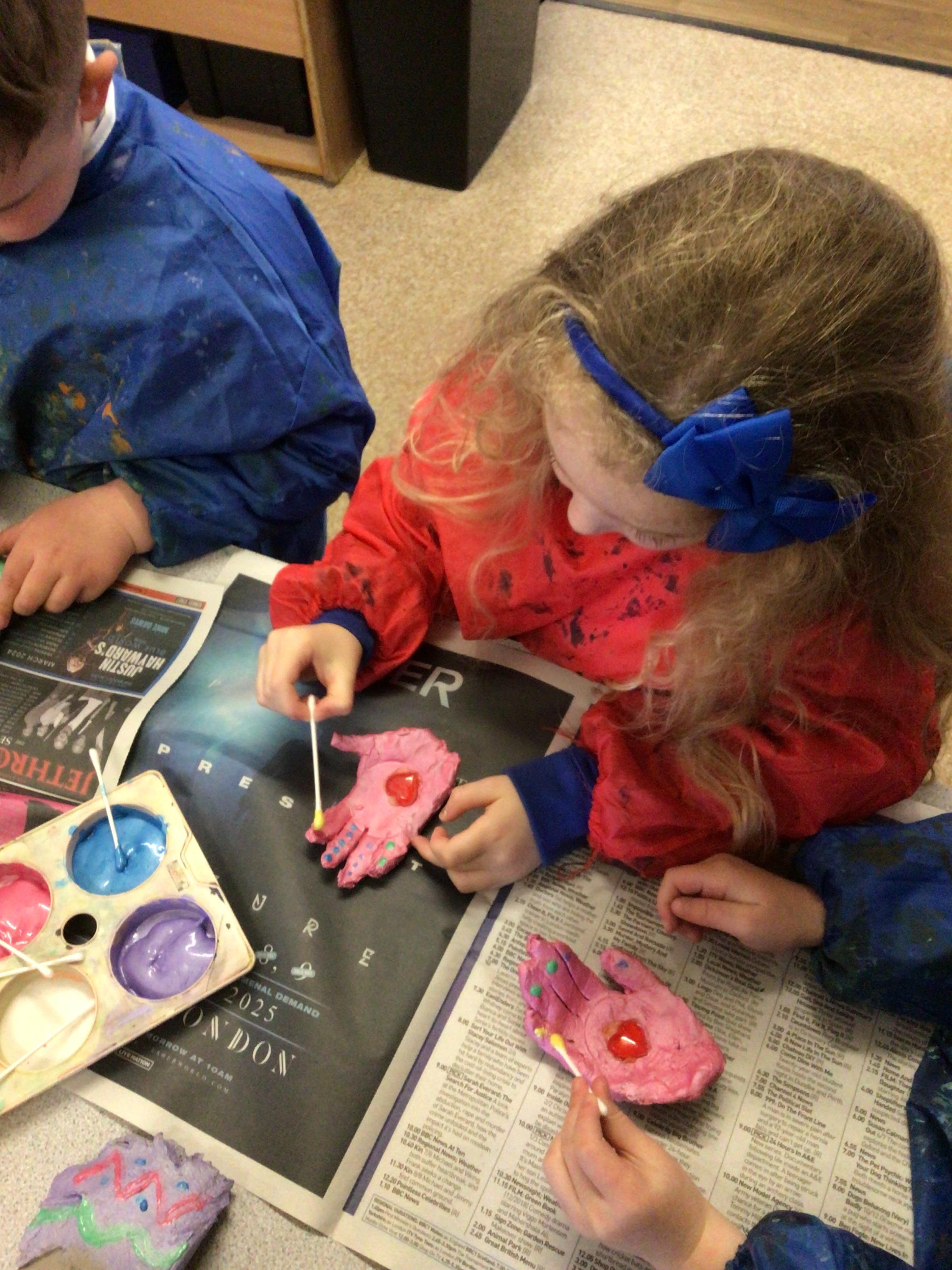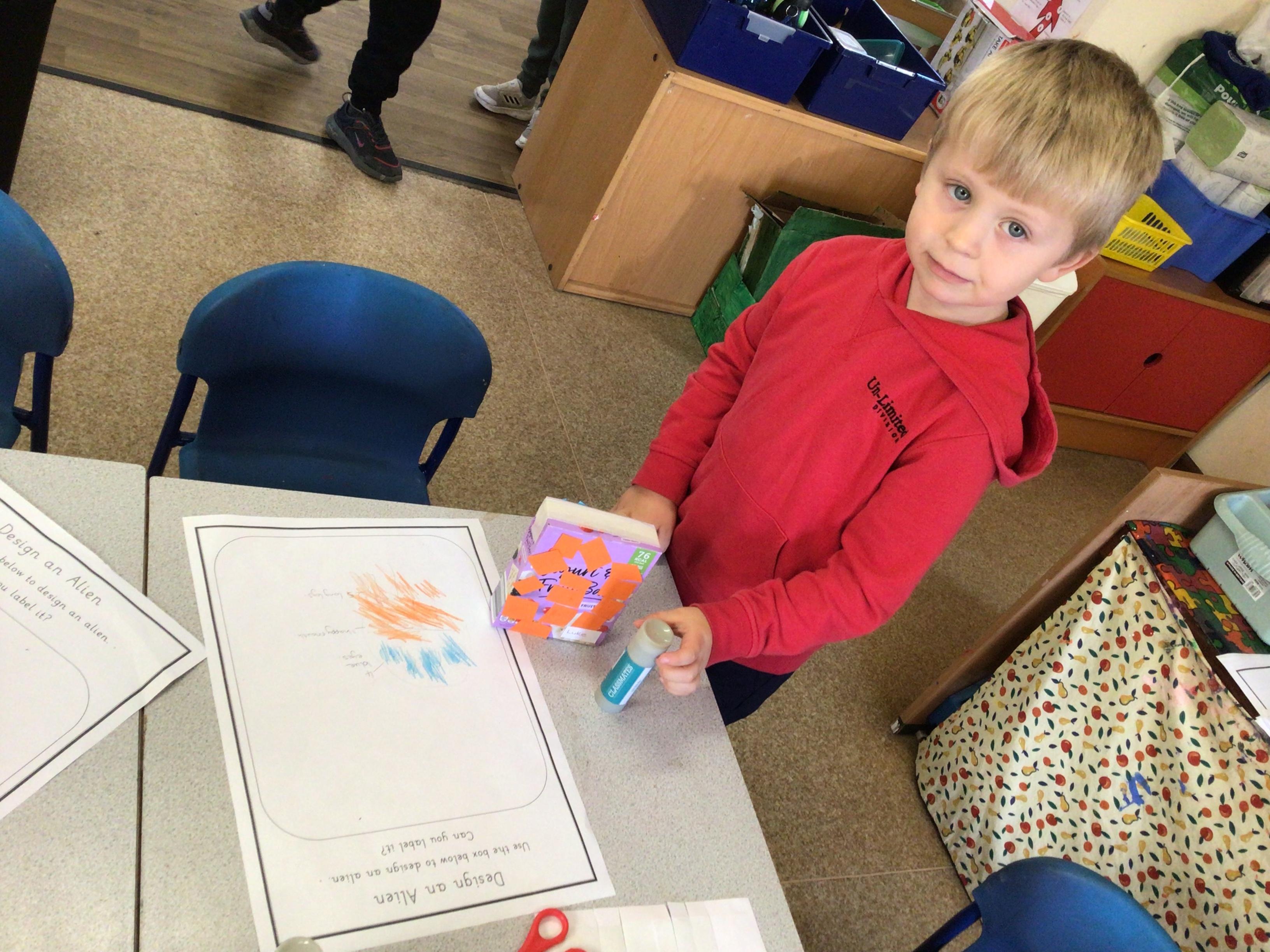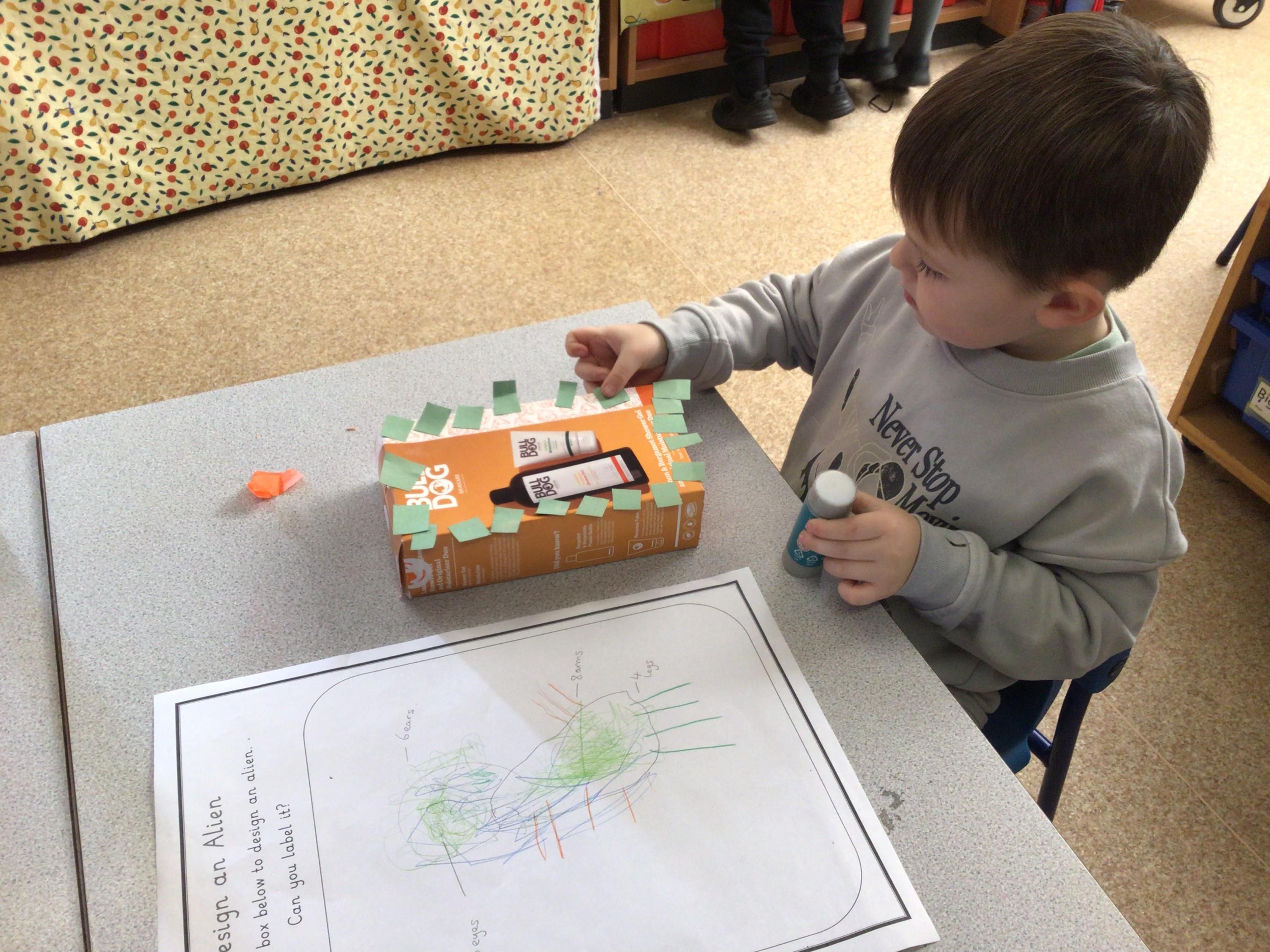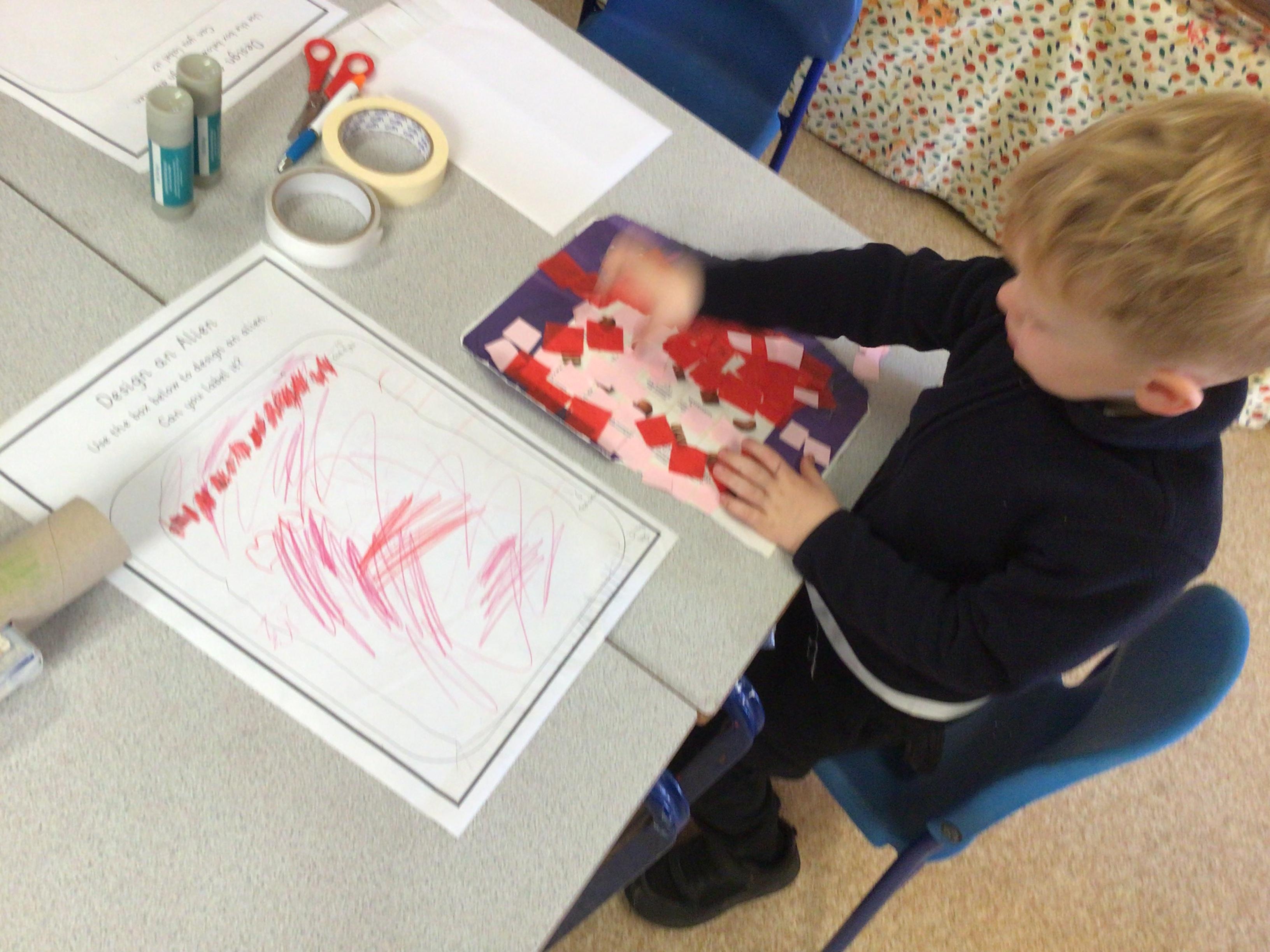 We have enjoyed learning through our Space topic. We learnt a poem ‘The Alien,’ with actions, and we annotated the poem to make it our own. We have completed lots of activities, including designing and making our own aliens, creating aliens in the dough, painting aliens, making spaceships and rockets in the construction area, counting and sorting in the water tray, making alien jelly, and of course, performing as aliens and stars in our production of ‘Christmas with the aliens!’