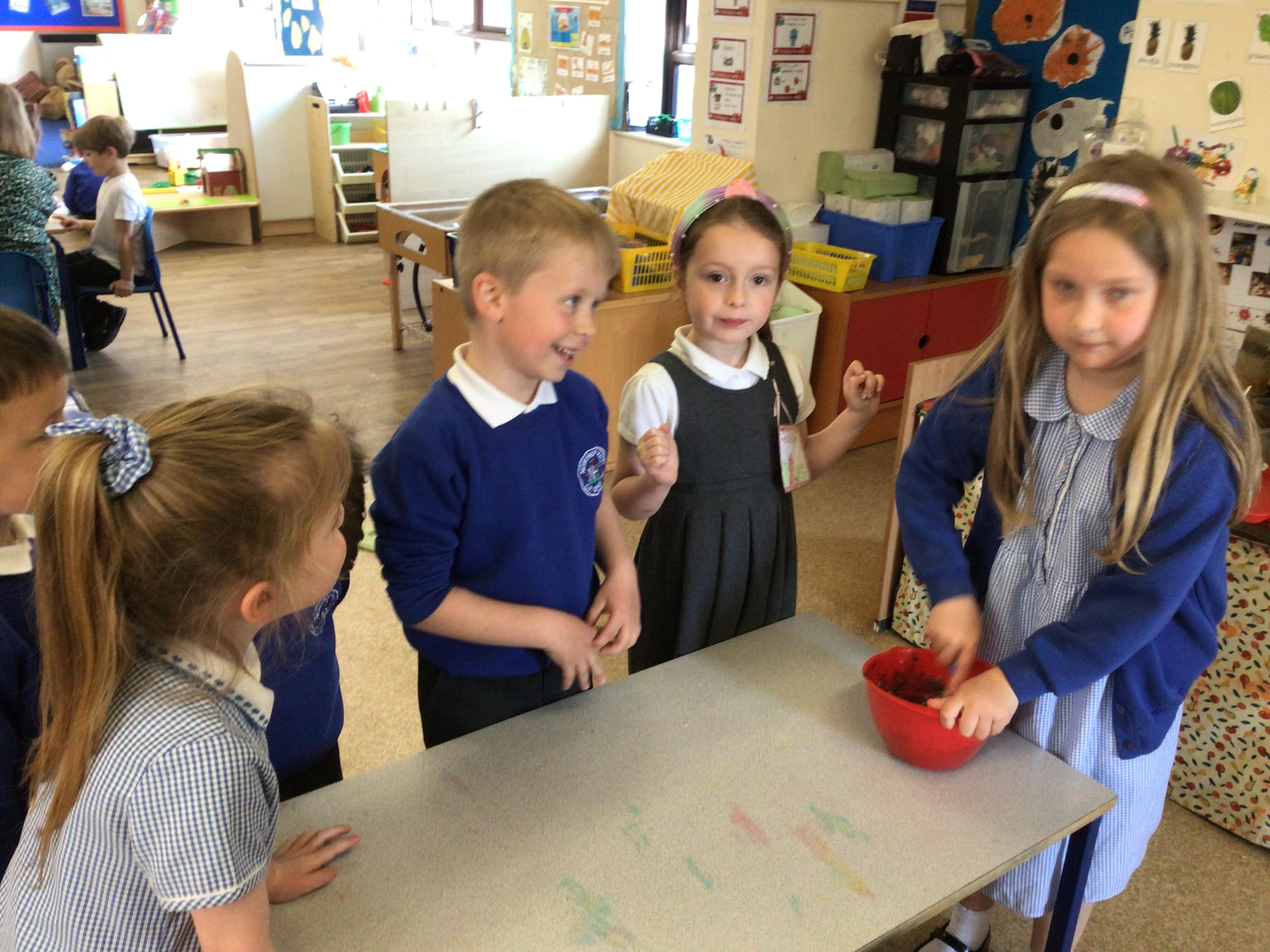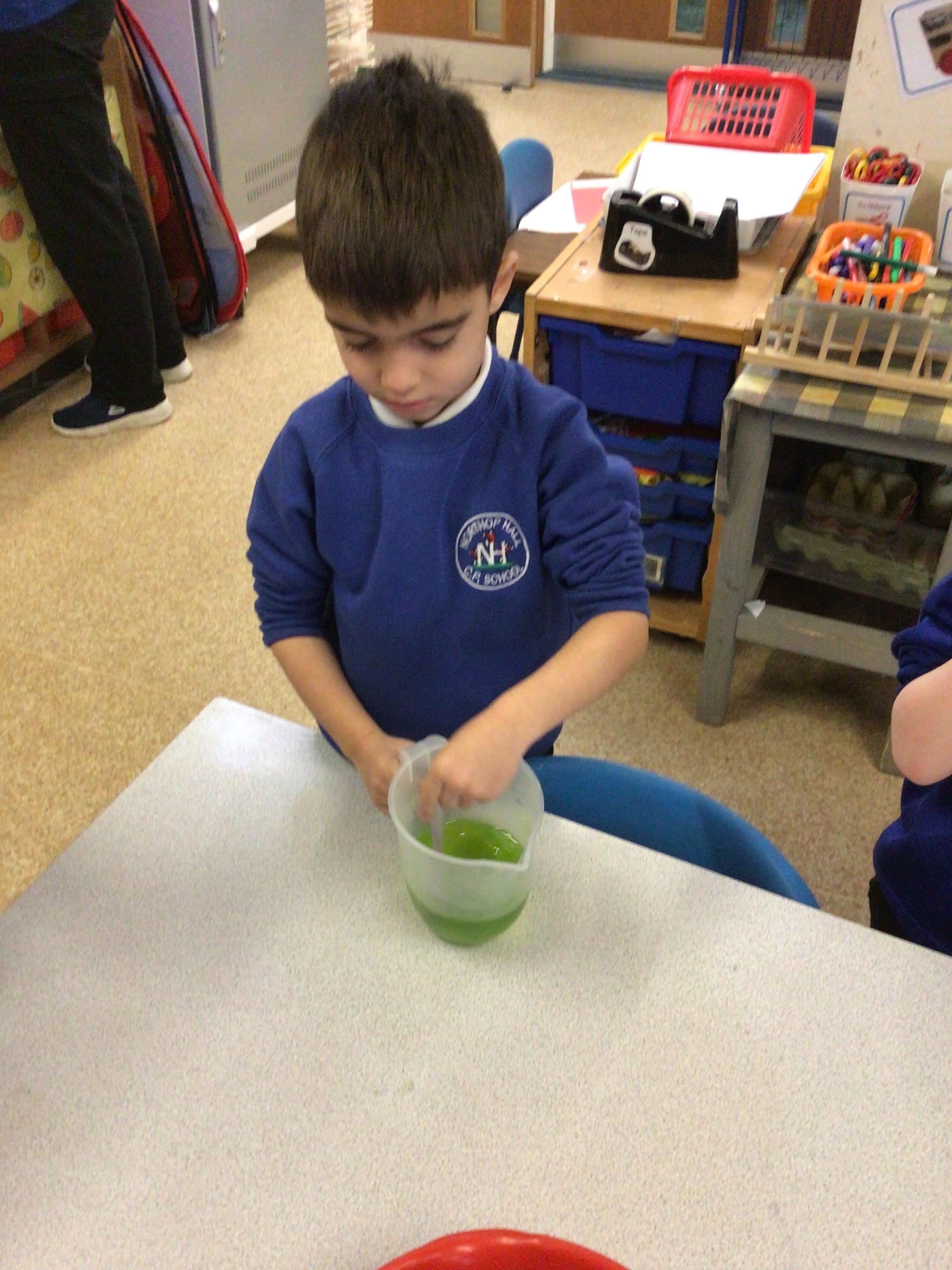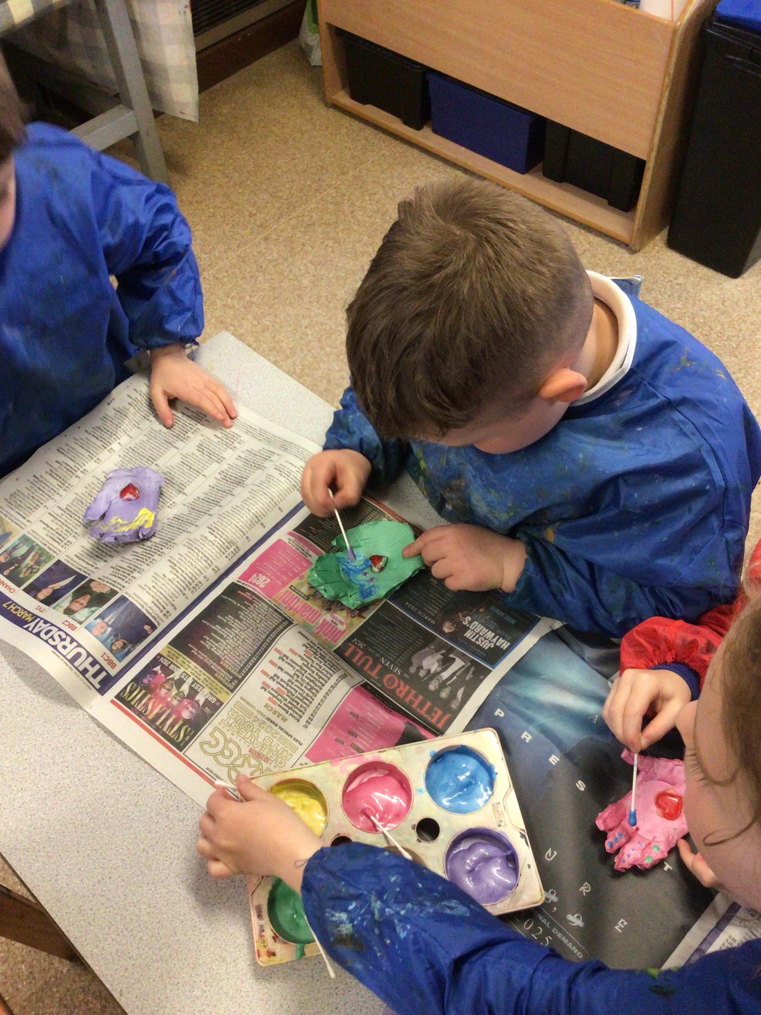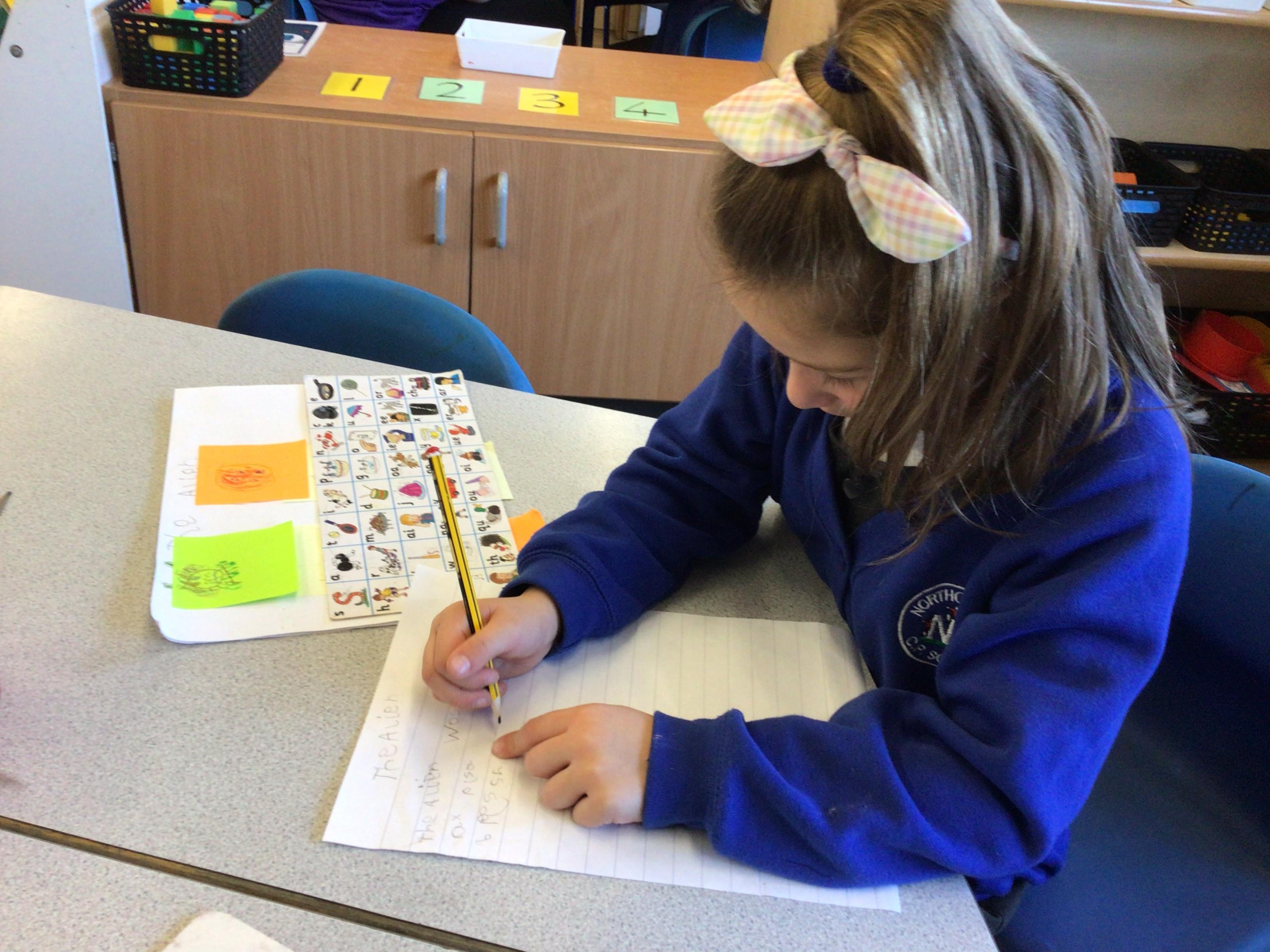 We have enjoyed learning through our Space topic. We learnt a poem ‘The Alien,’ with actions, and we annotated the poem to make it our own. We have completed lots of activities, including designing and making our own aliens, creating aliens in the dough, painting aliens, making spaceships and rockets in the construction area, counting and sorting in the water tray, making alien jelly, and of course, performing as aliens and stars in our production of ‘Christmas with the aliens!’