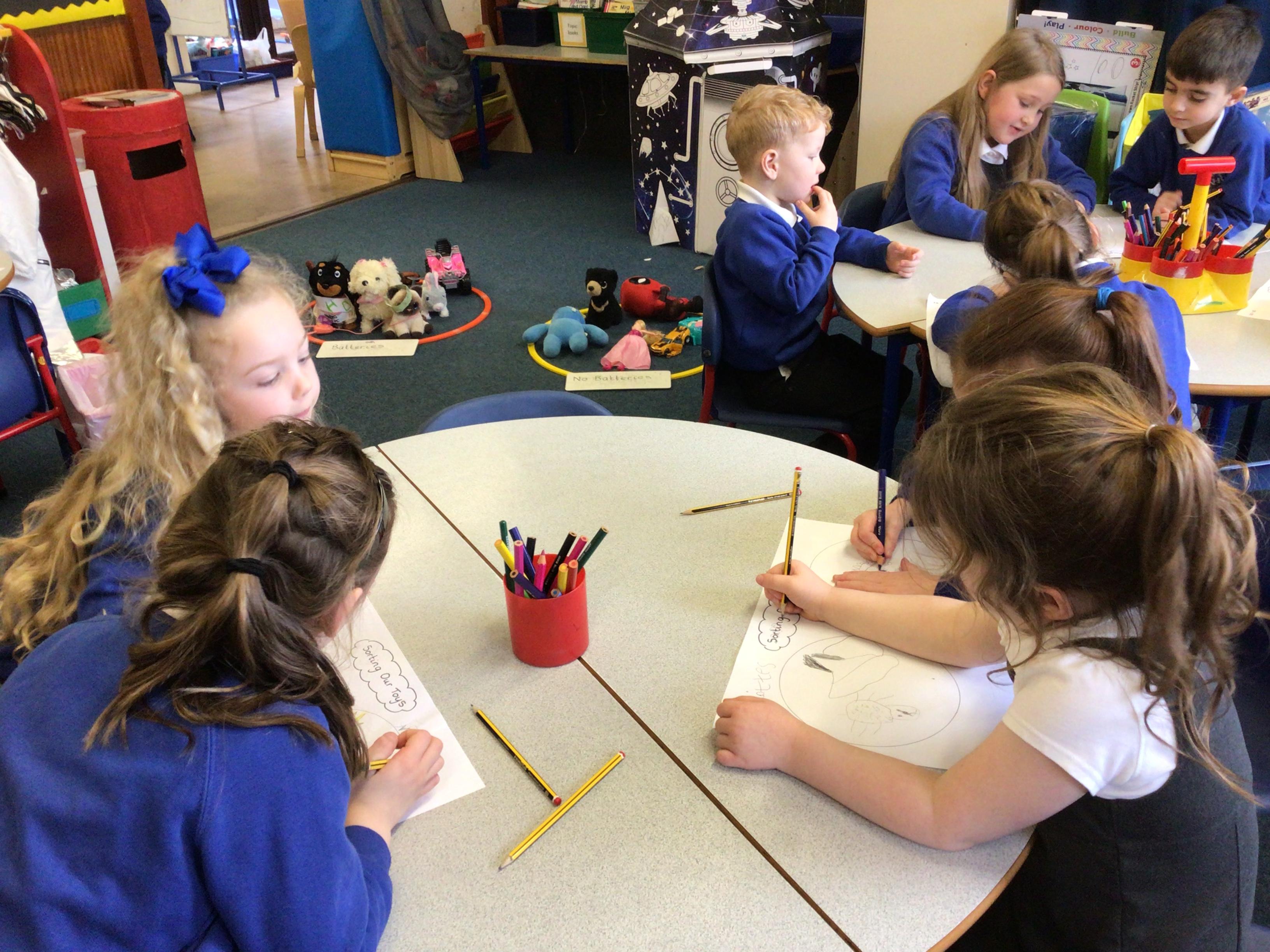 We have enjoyed playing with our own toys. We have drawn and labelled them and described what they look like and how they work. We have talked about how we would feel if we lost our favourite toy. We have been very busy sorting the toys in lots of different ways and working together with a partner to record our sorting.