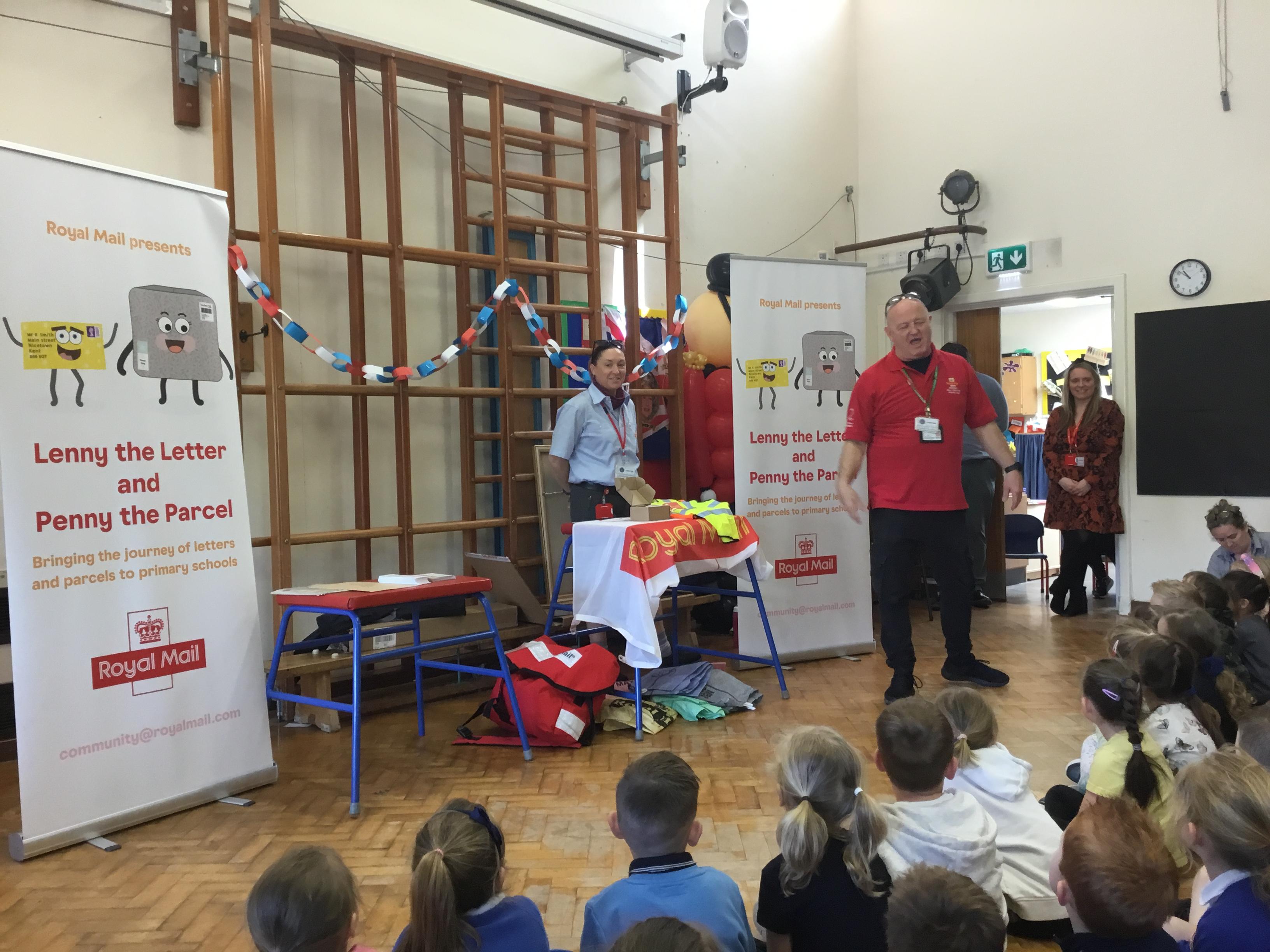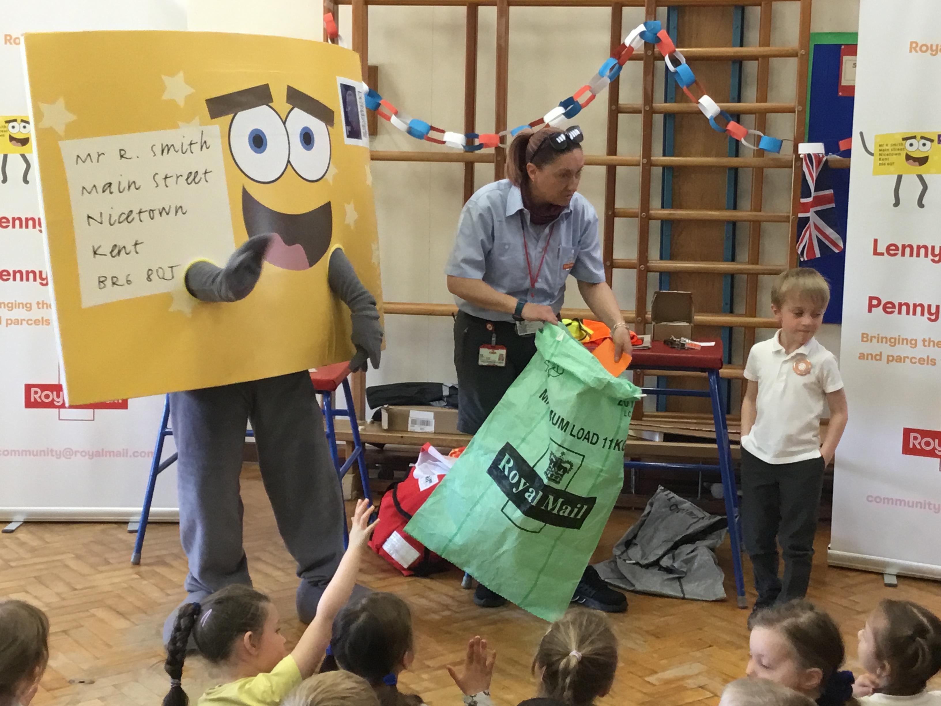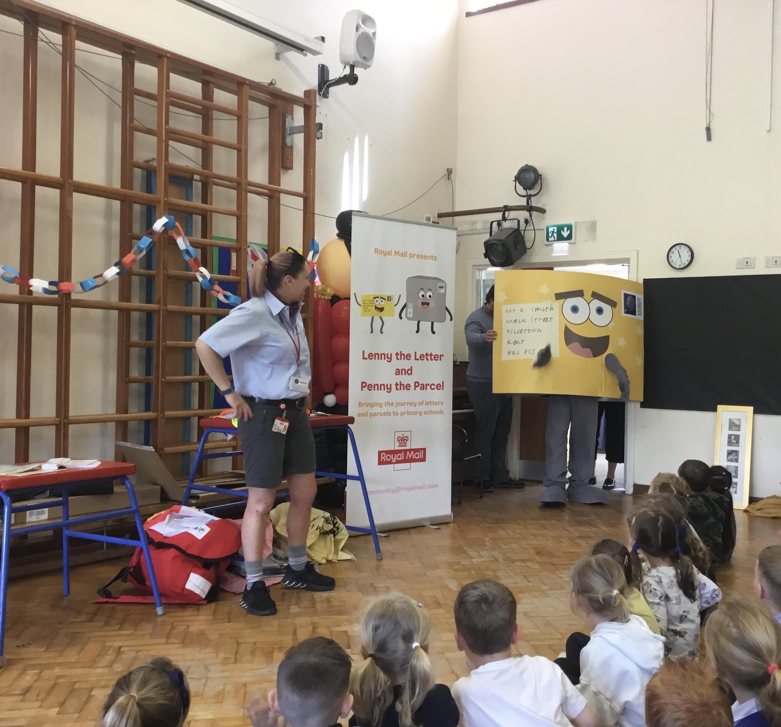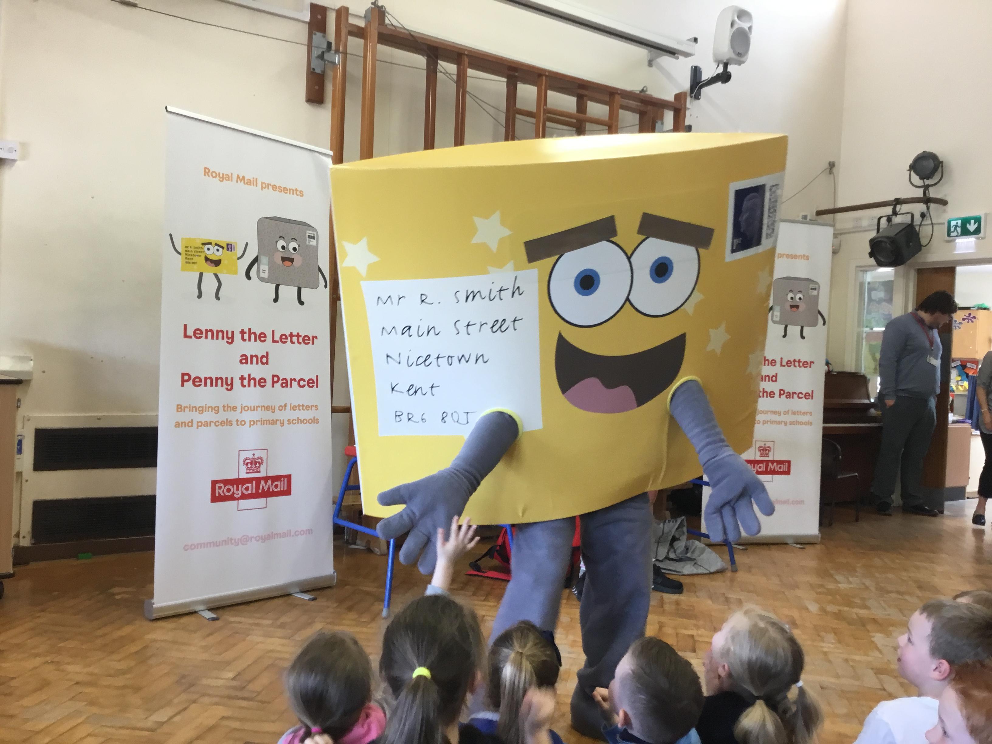 We had a visit from the Royal Mail. We got to meet Lenny the letter.