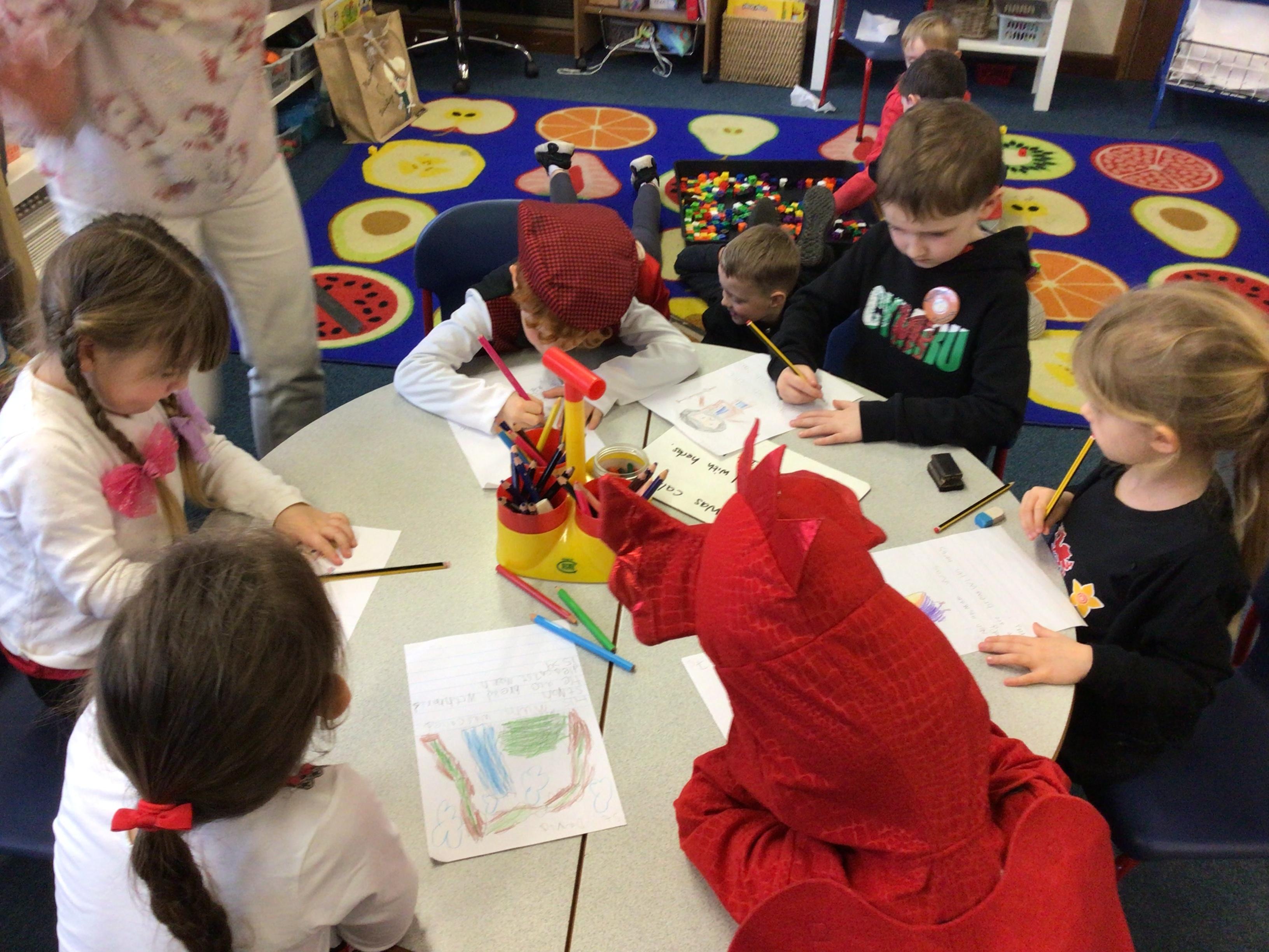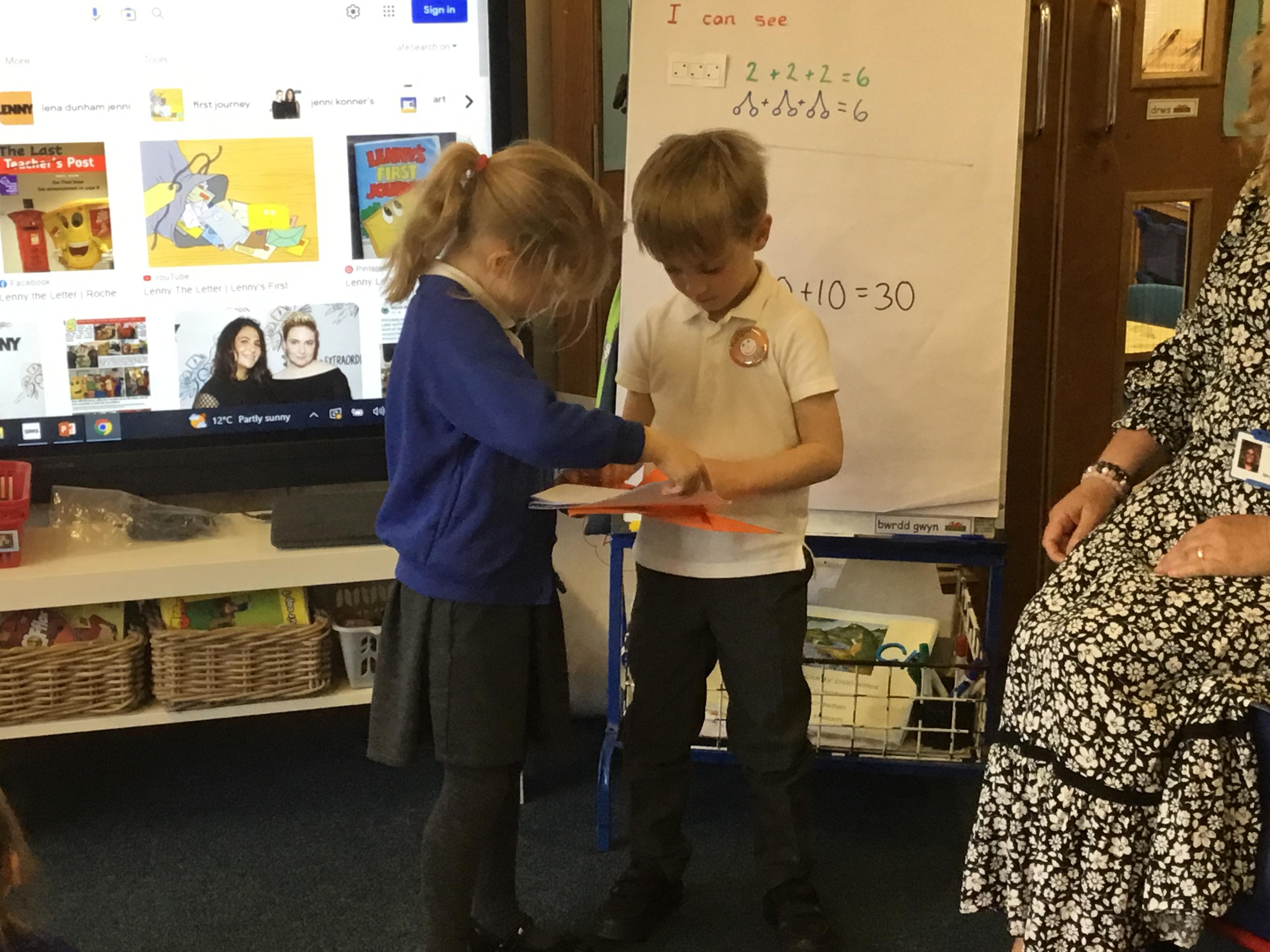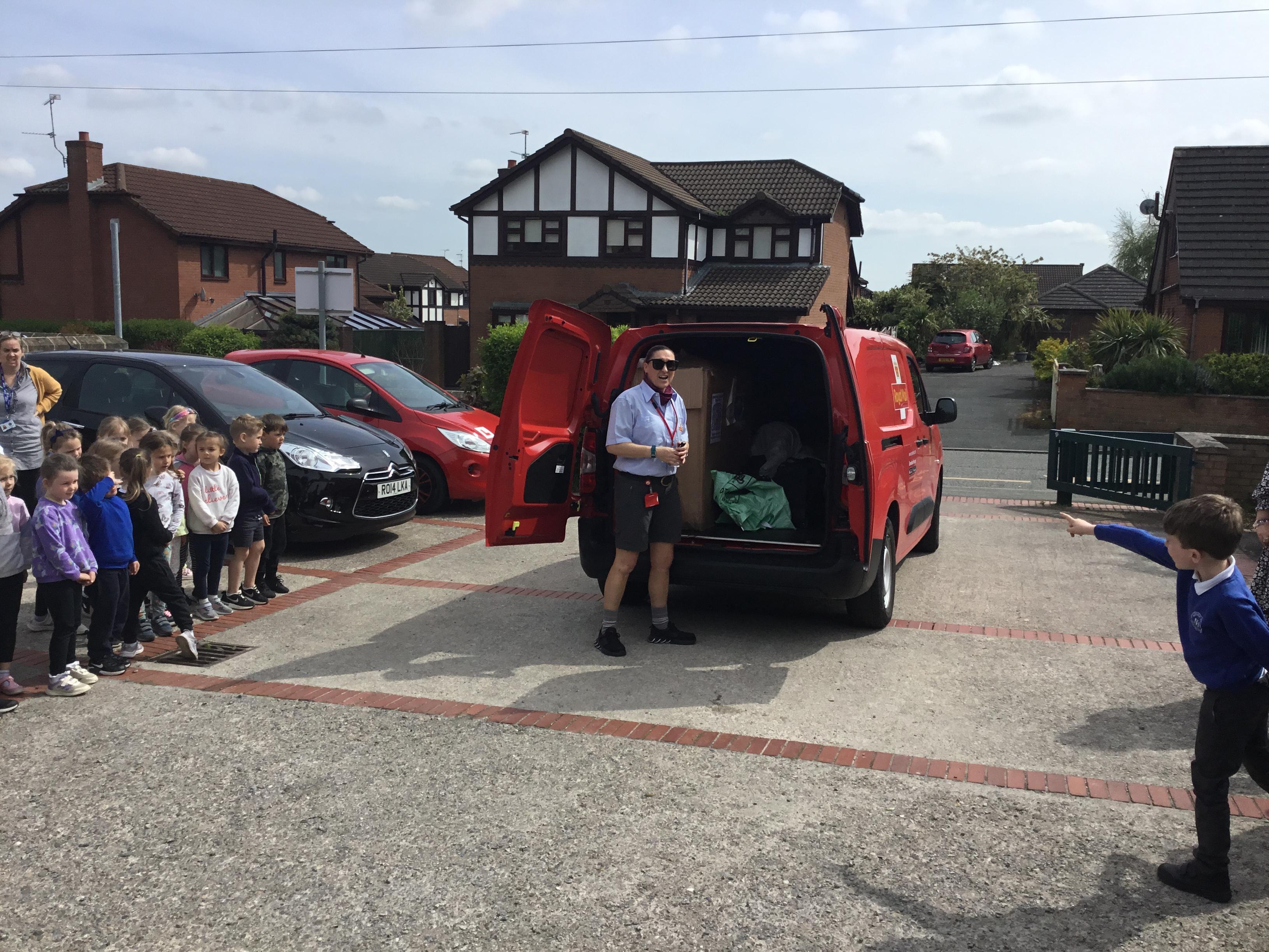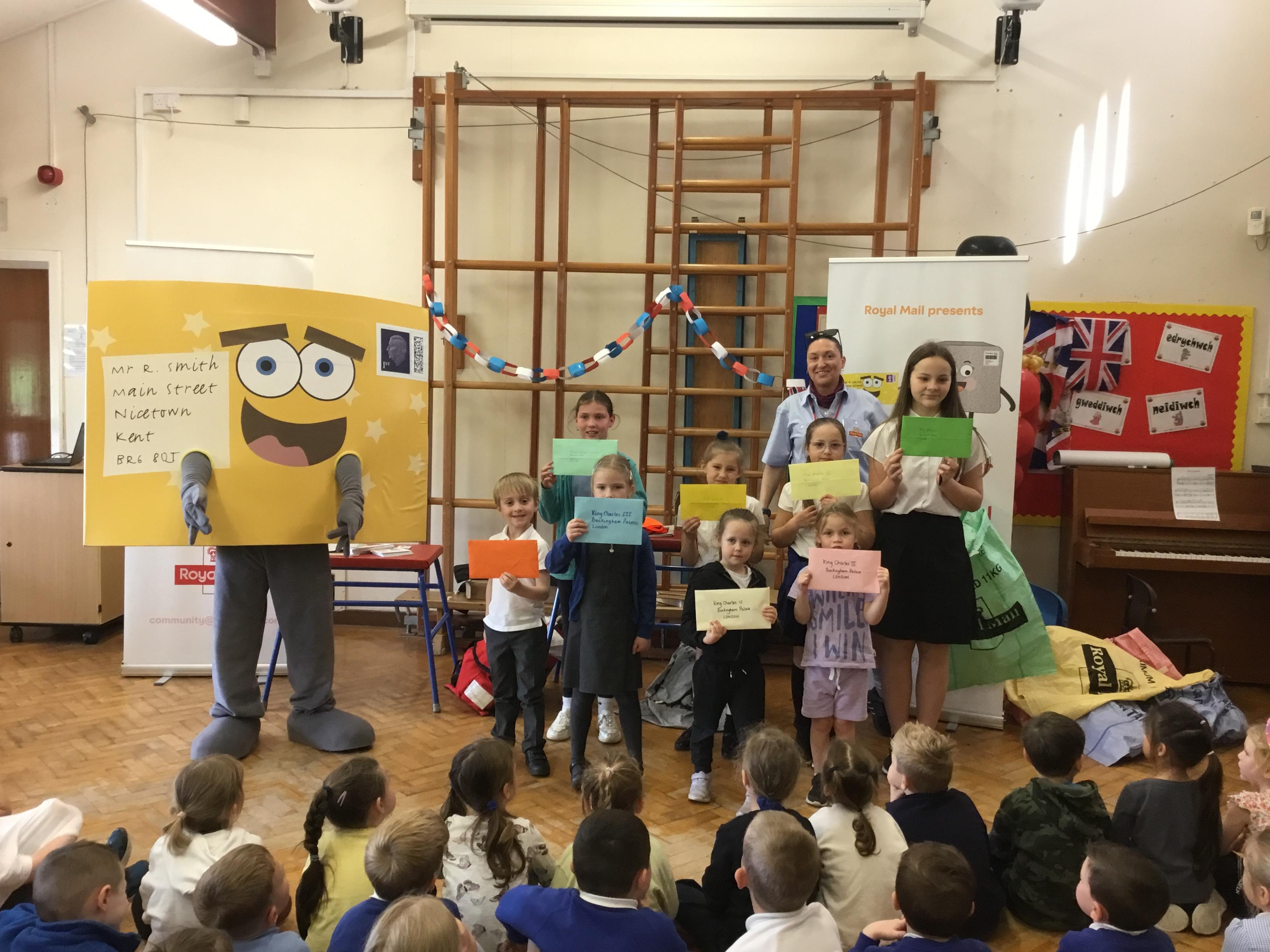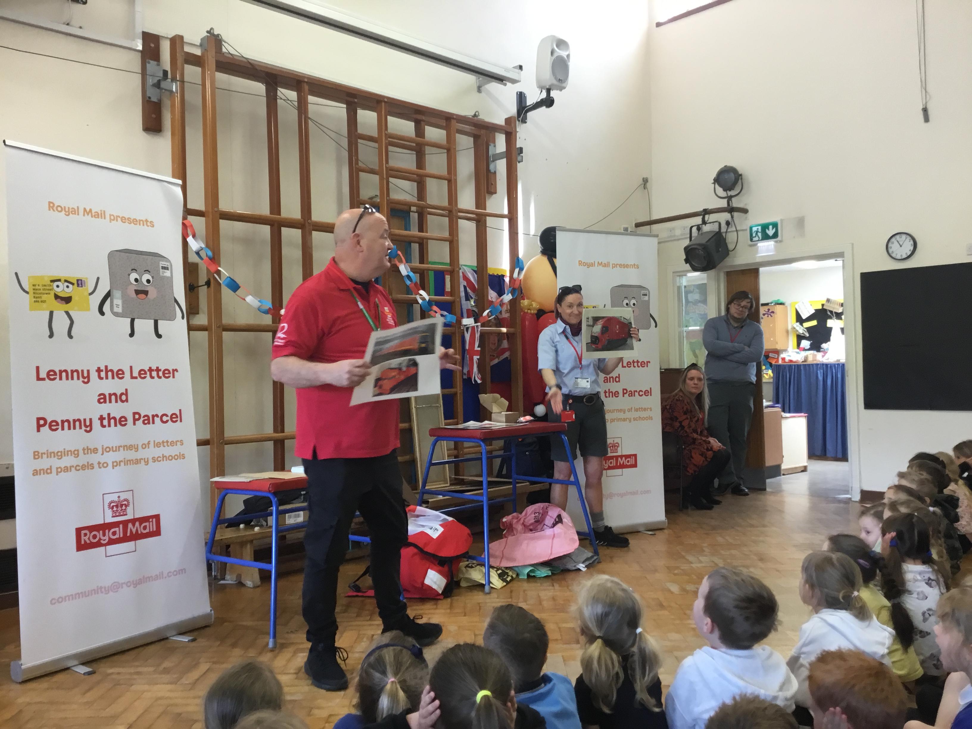 We had a visit from the Royal Mail. We got to meet Lenny the letter.