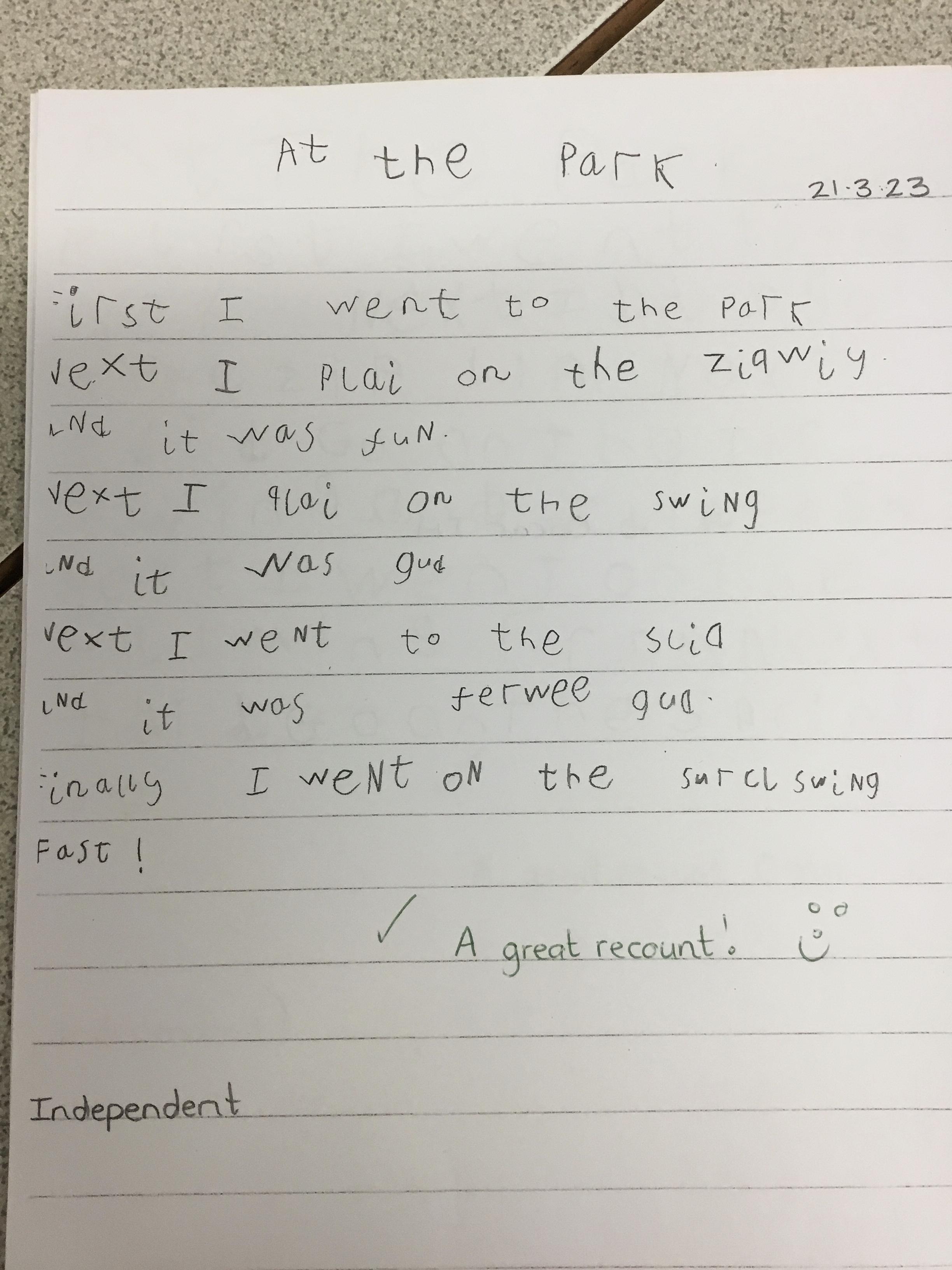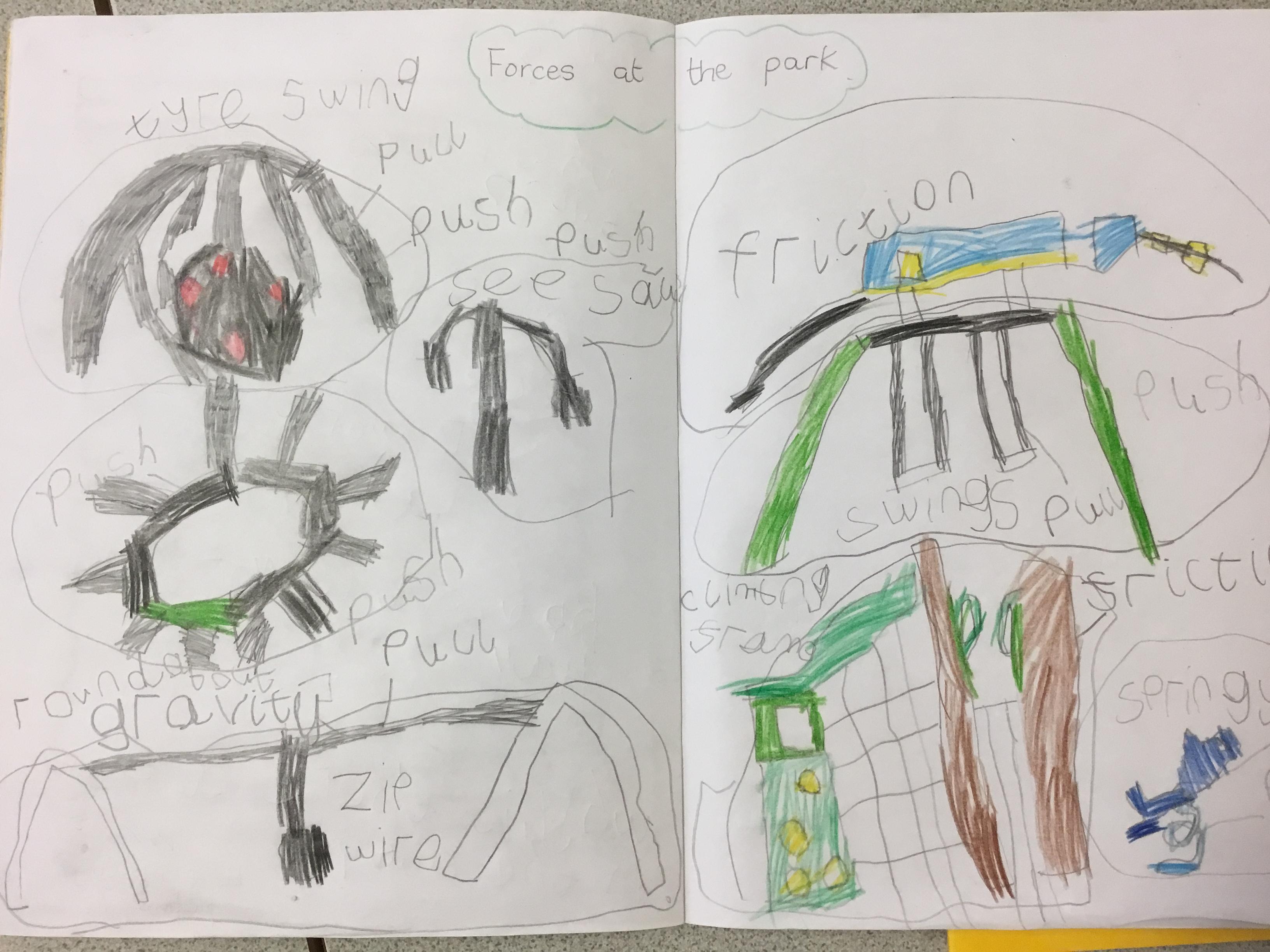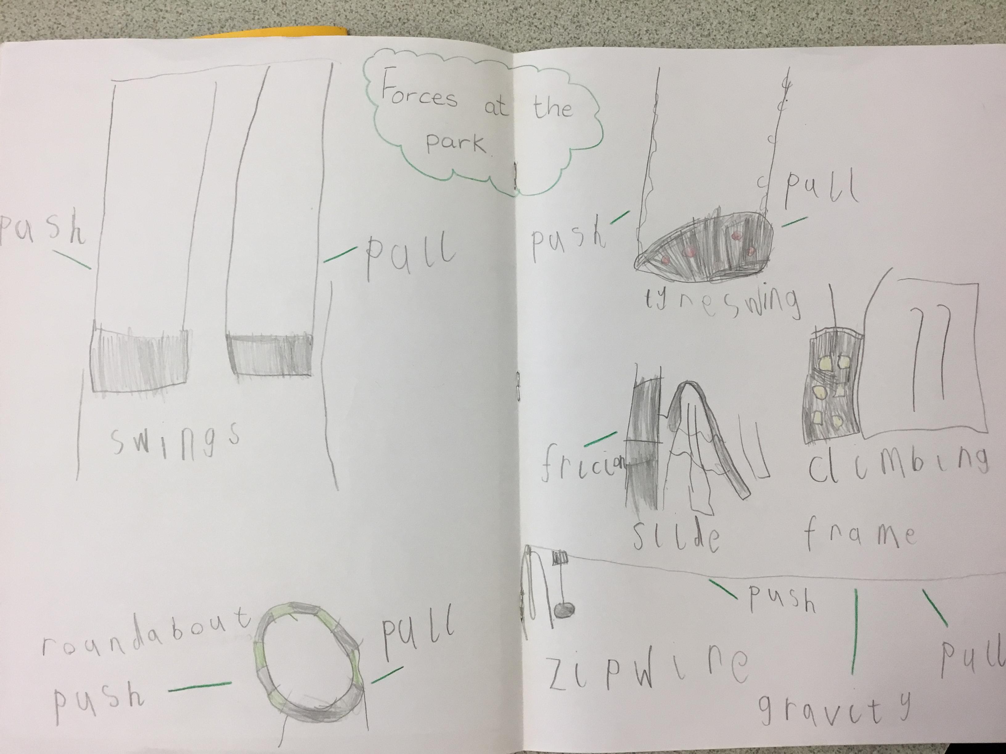 During and following our visit to the park, we learnt about forces. Some Year 2 children came to our class and explained some of the different forces. We learnt about pushes, pulls, gravity and friction. We also wrote a recount of our visit to the park.
