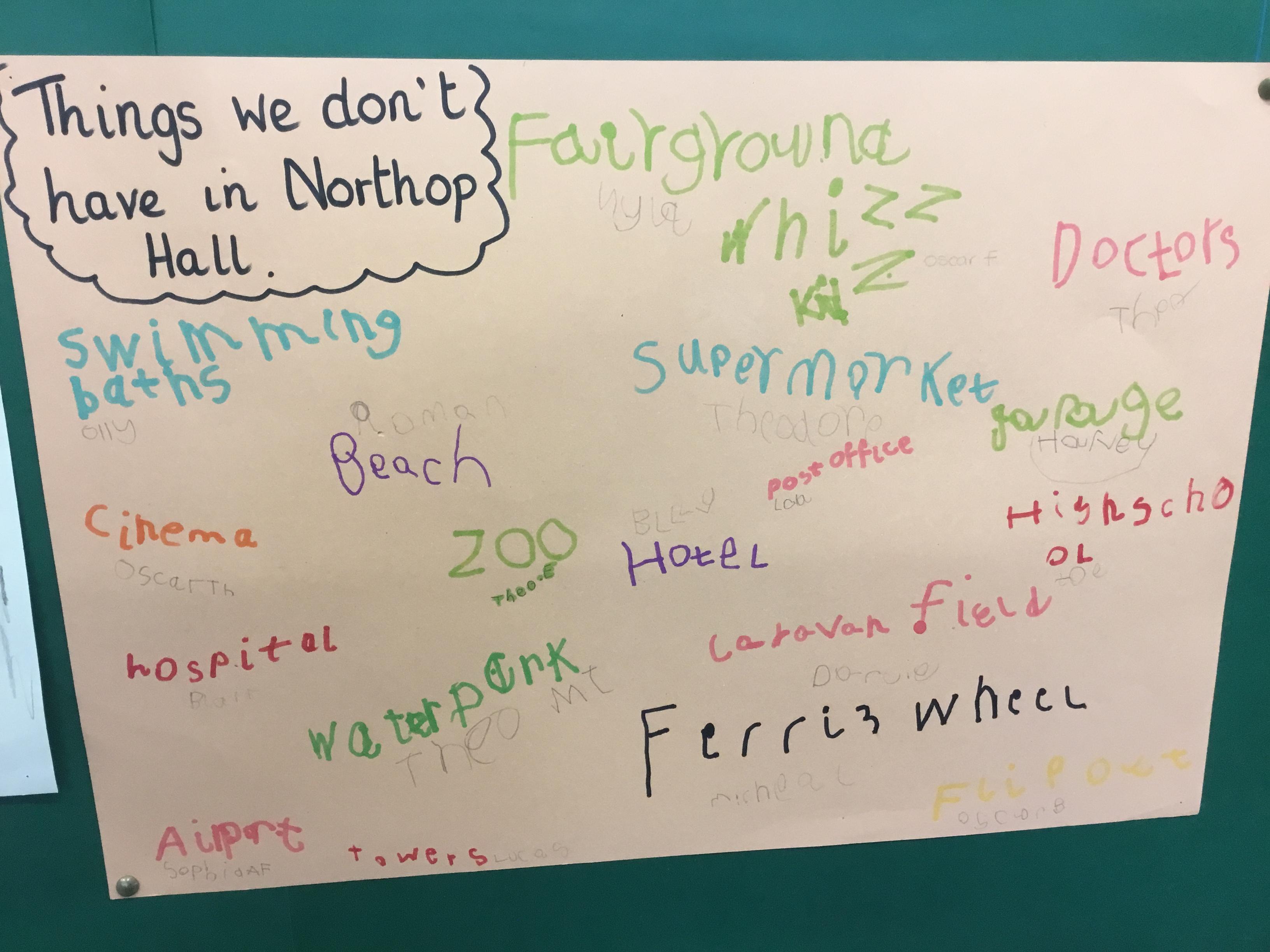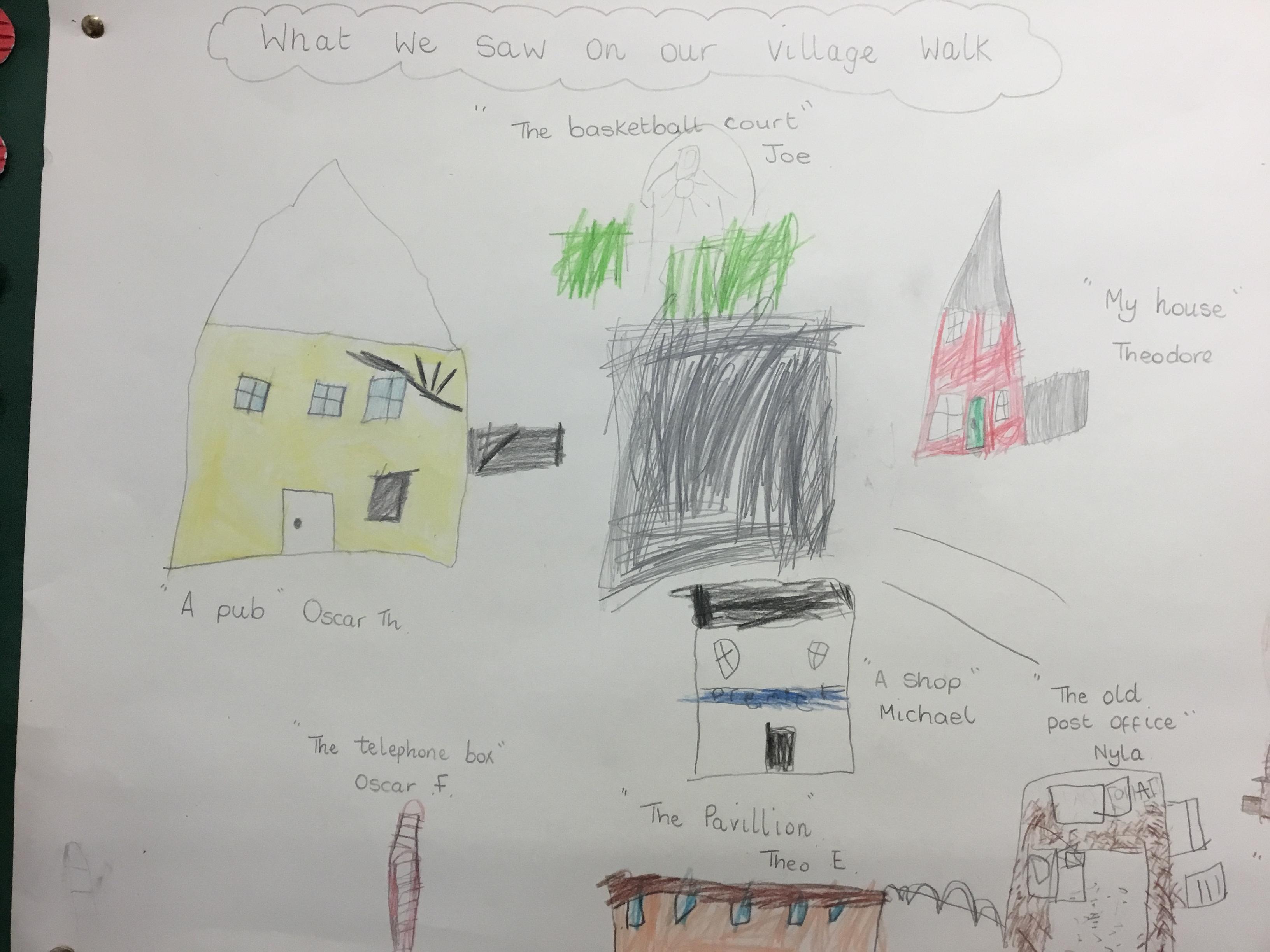 Following our walk around our village, we discussed all the things we had seen. We then thought about why our village didn’t have other things which we have seen in other places.