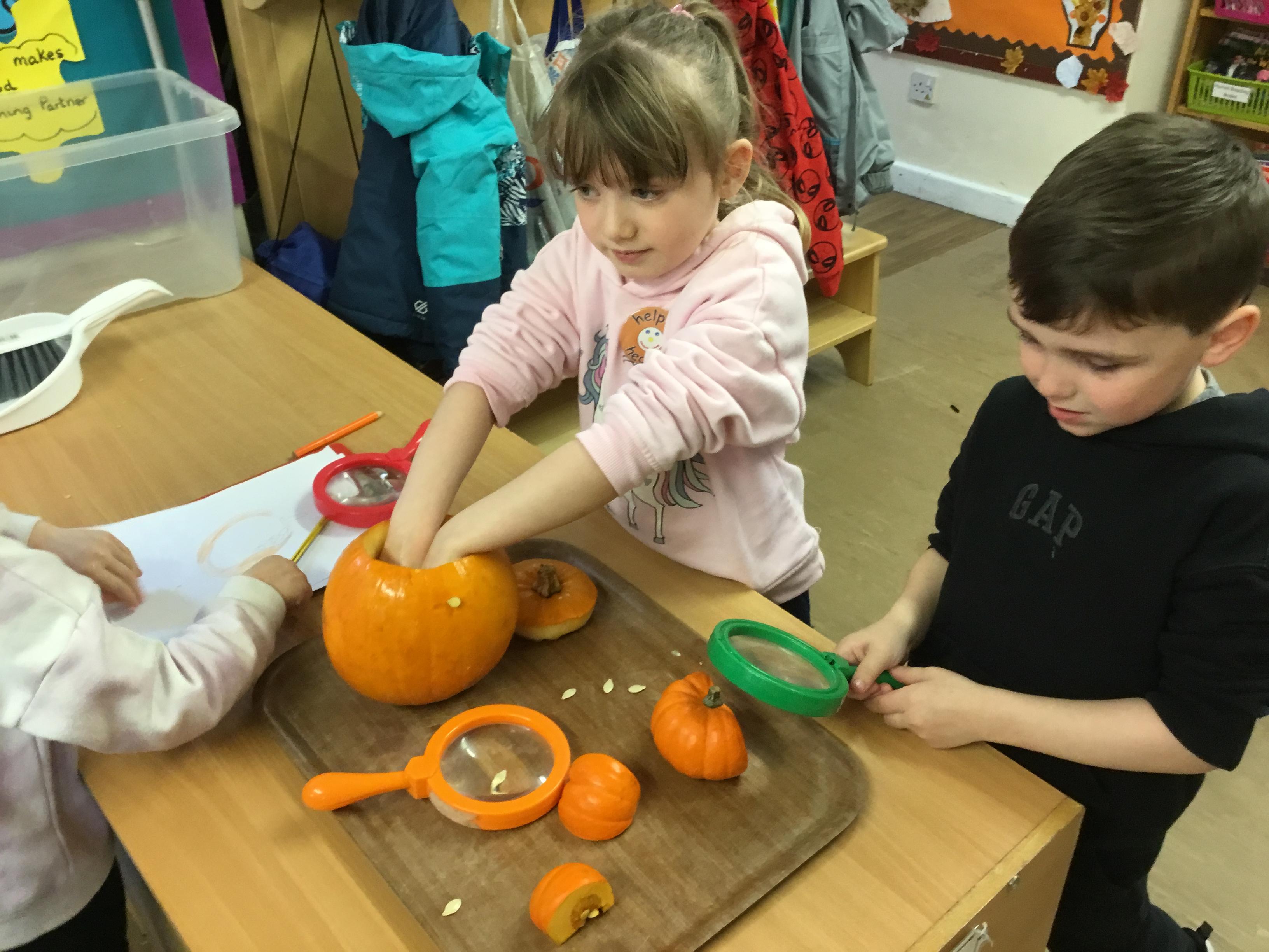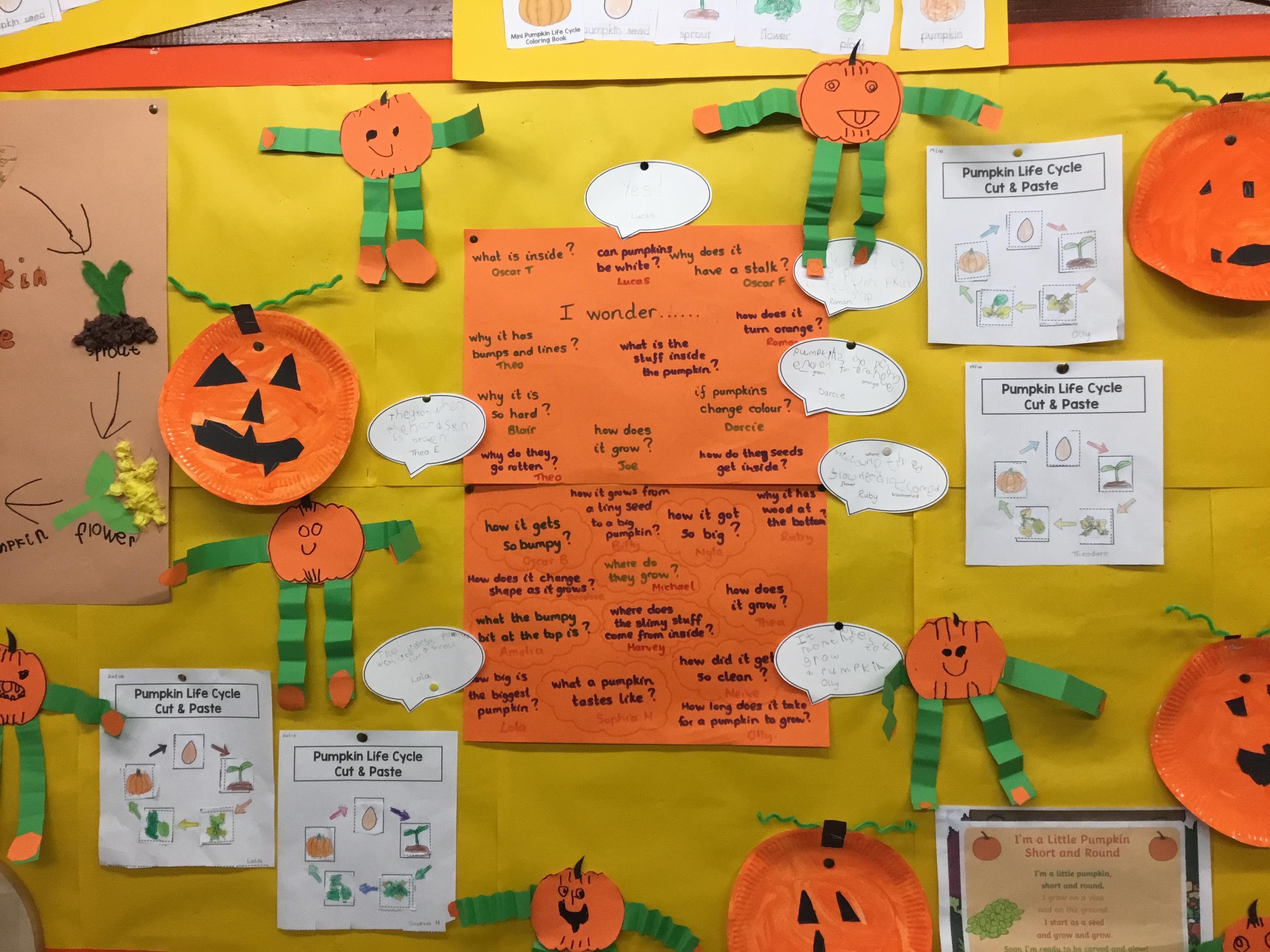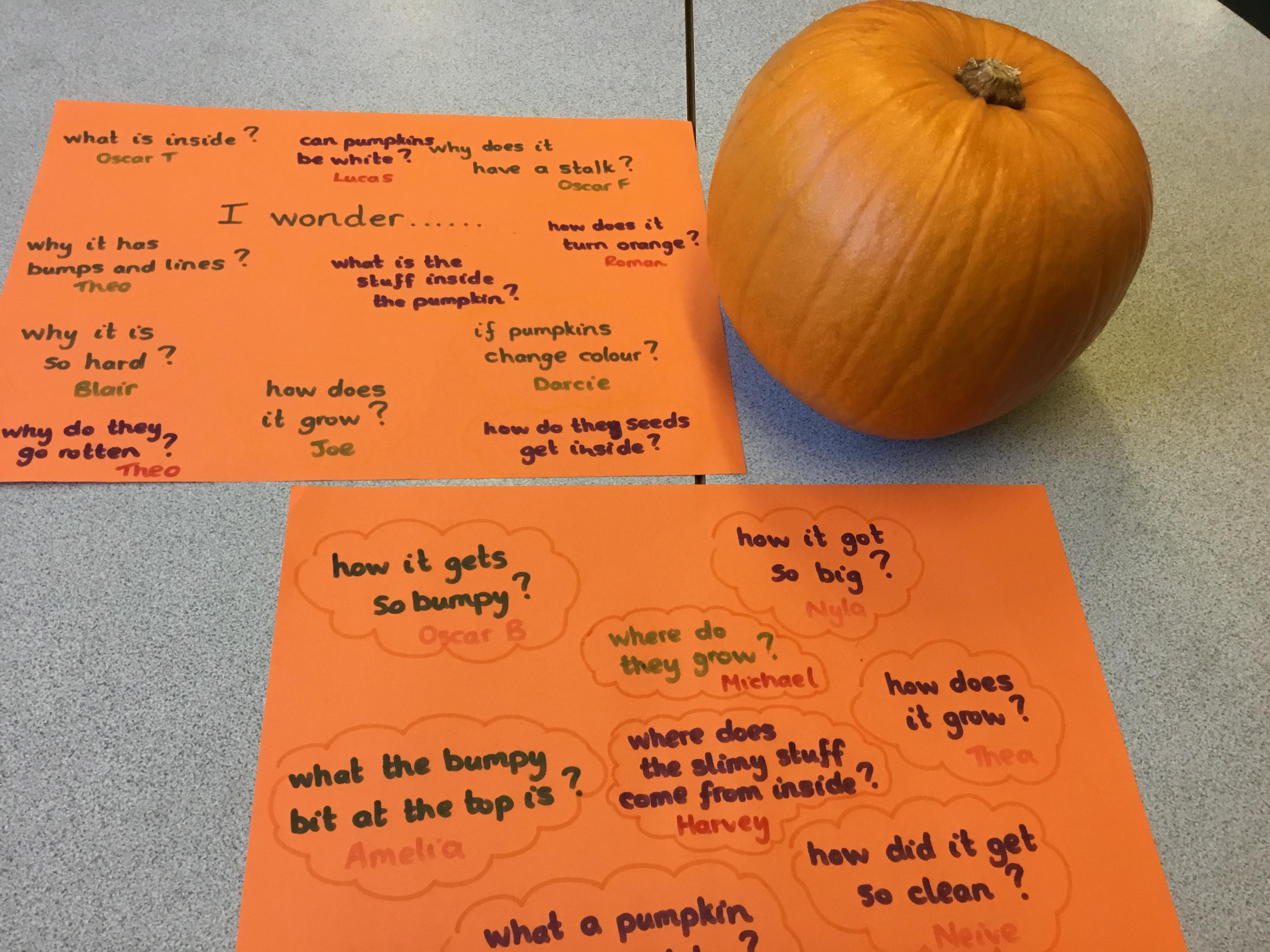 Over the past couple of weeks, we have been ‘finding out’ about pumpkins. We have asked ‘I wonder ........?’ questions and we have had lots of fun researching the answers.