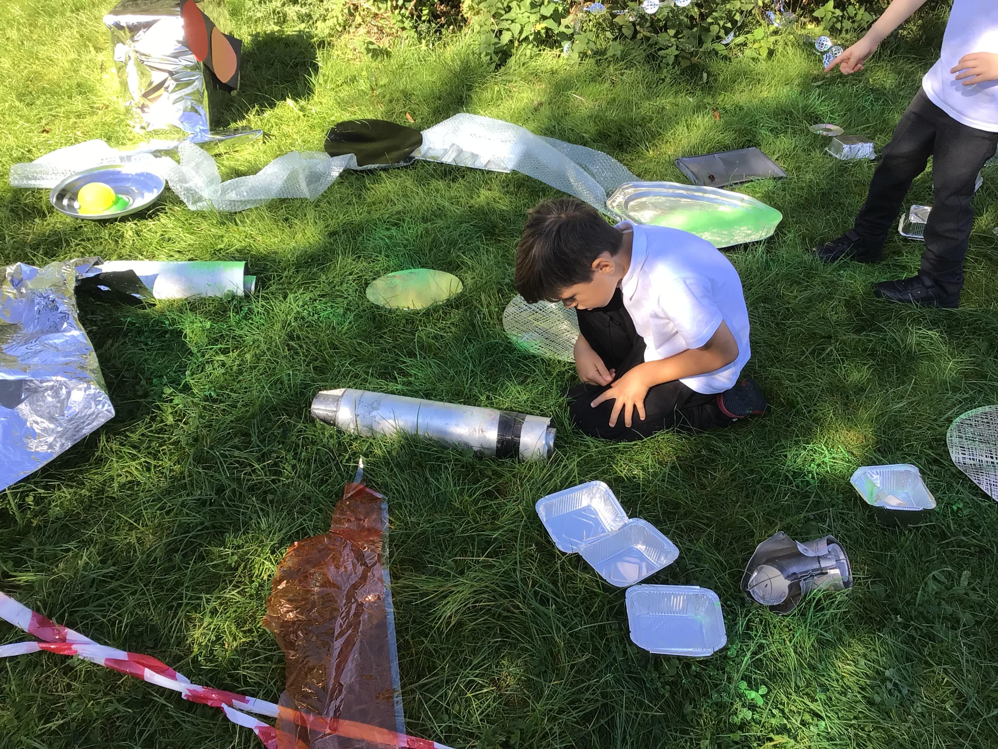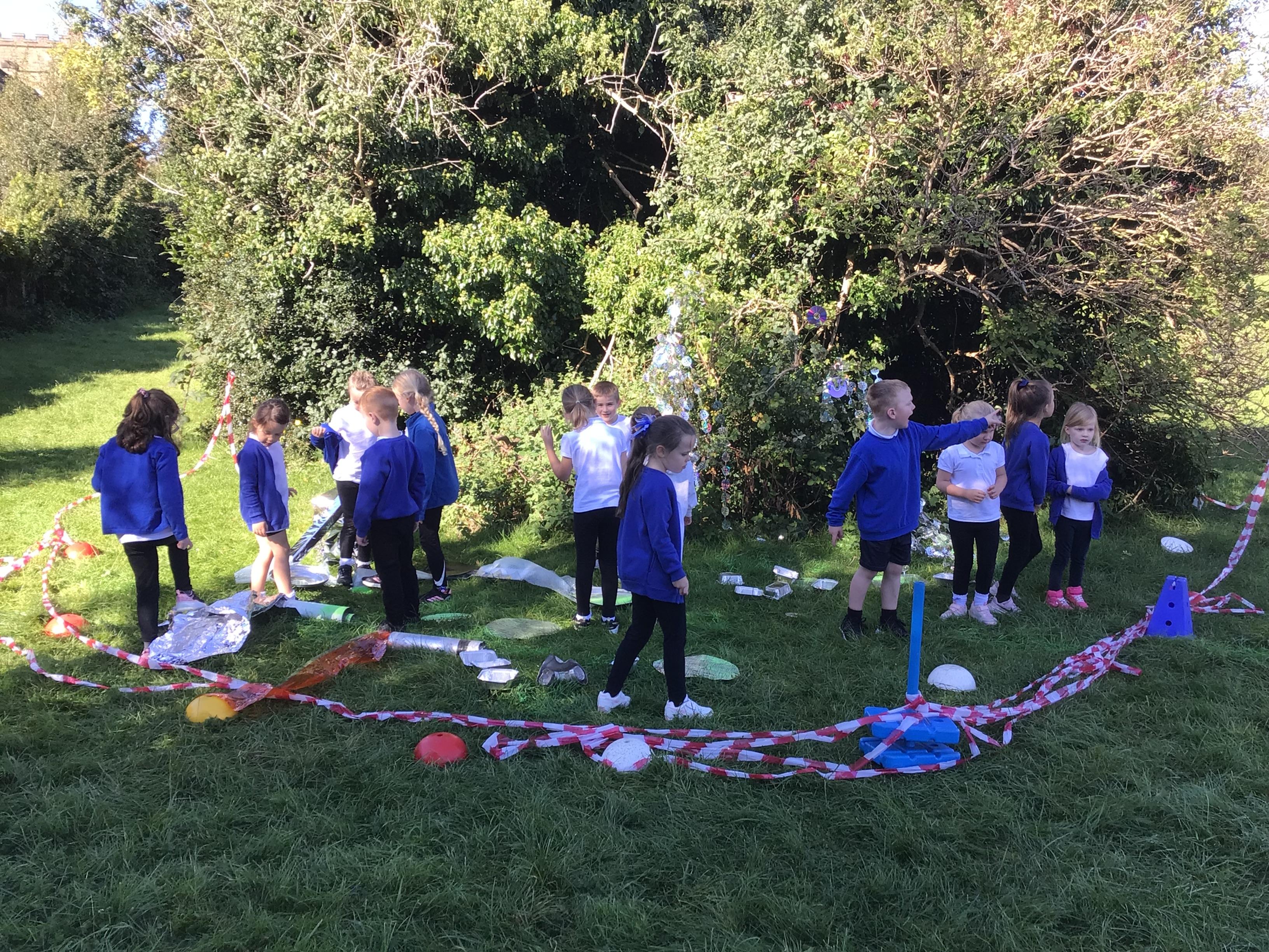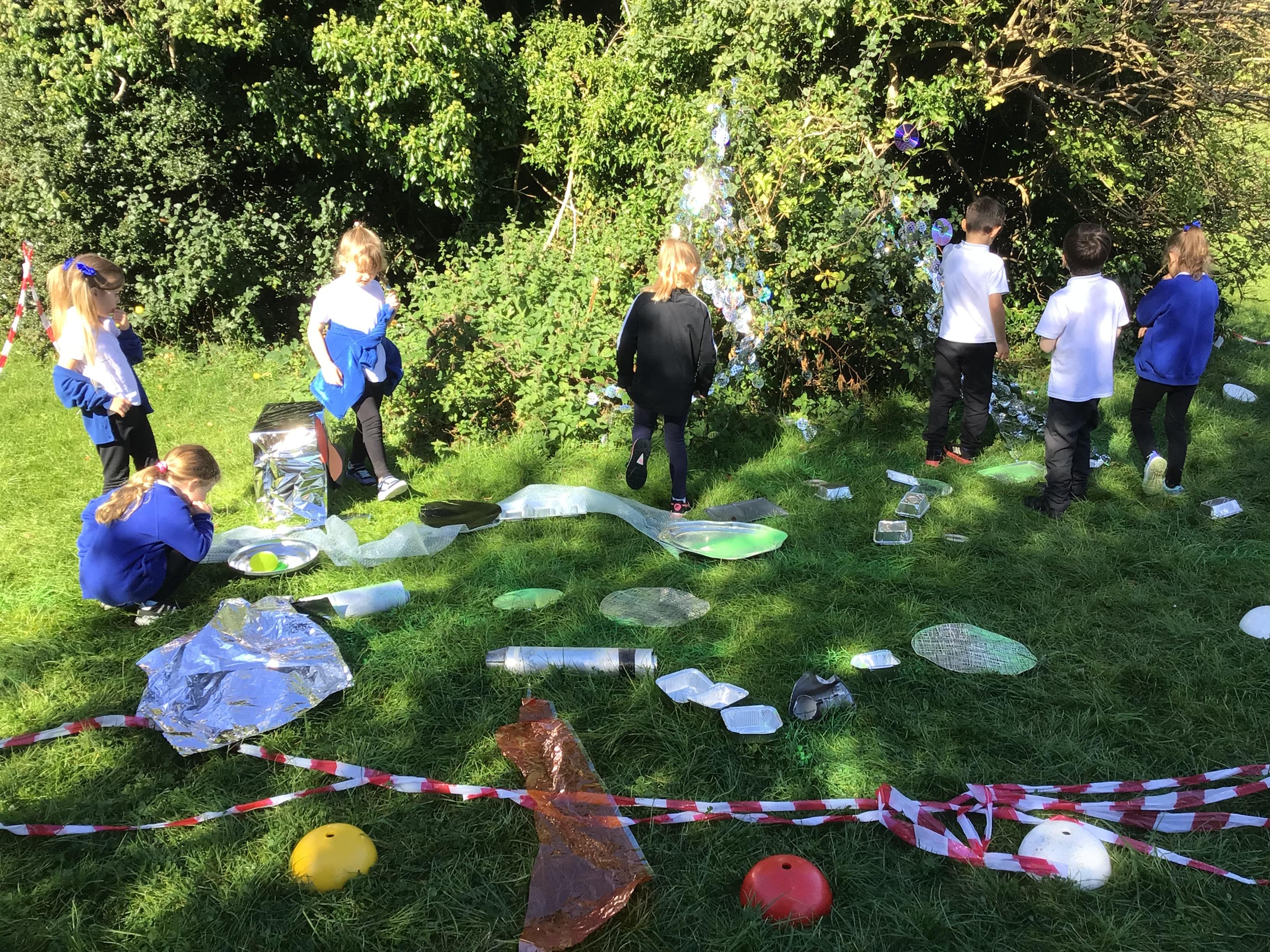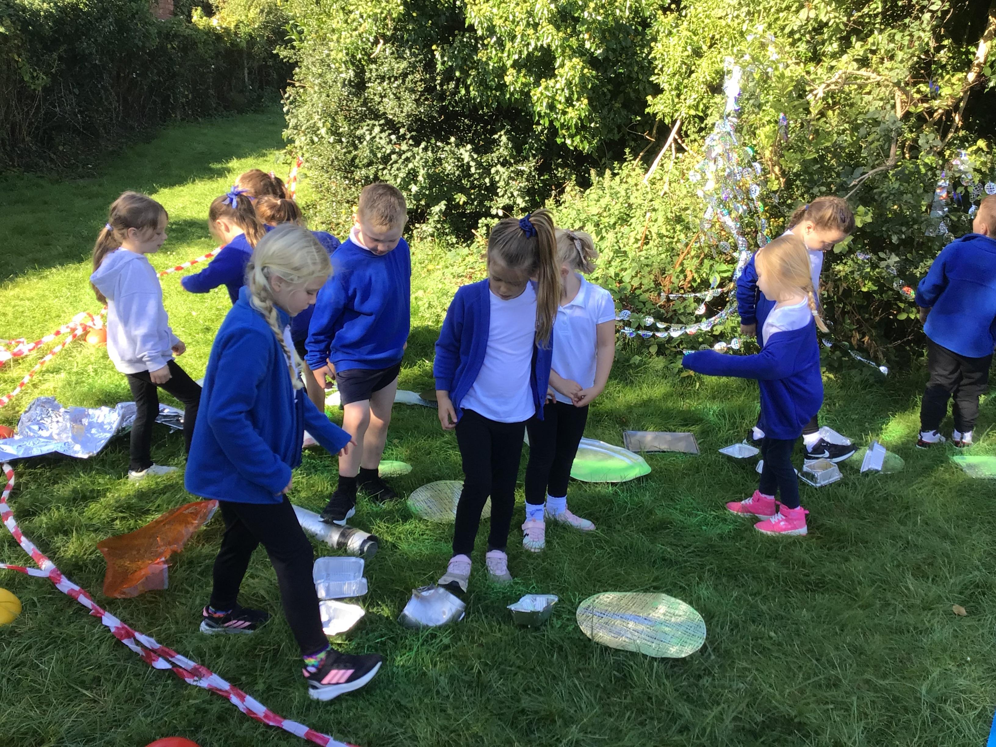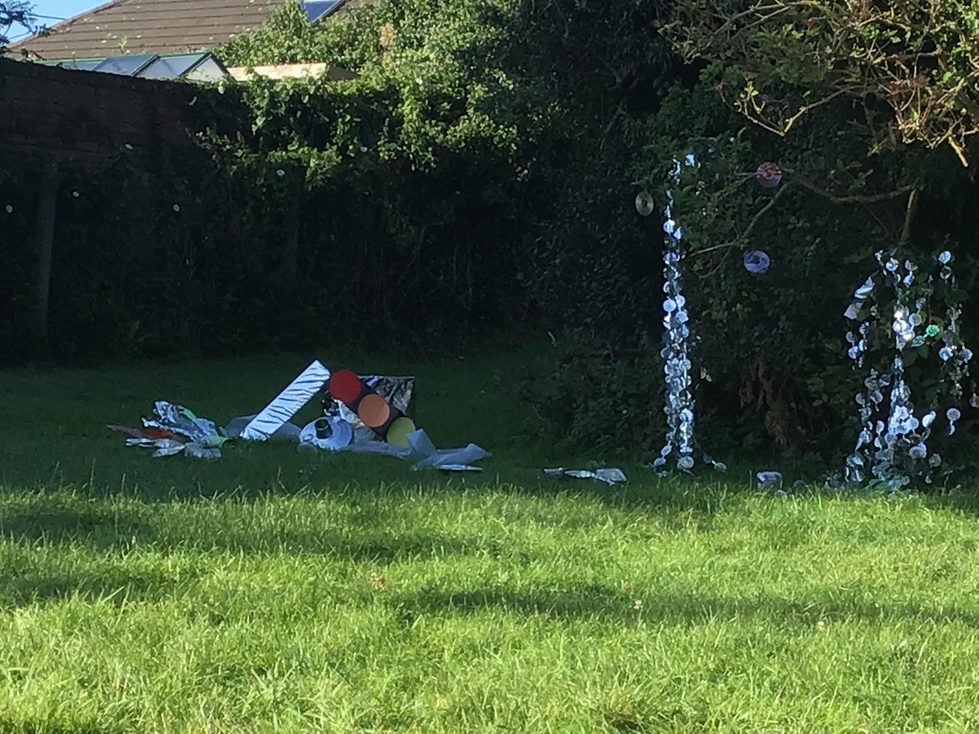 After receiving inquiries about flashing lights and mysterious noises, we went to investigate and couldn’t believe what we found! A spaceship had crash landed on our school field!!! There were pieces of spaceship spread all over and we even found some green space dust and slime!