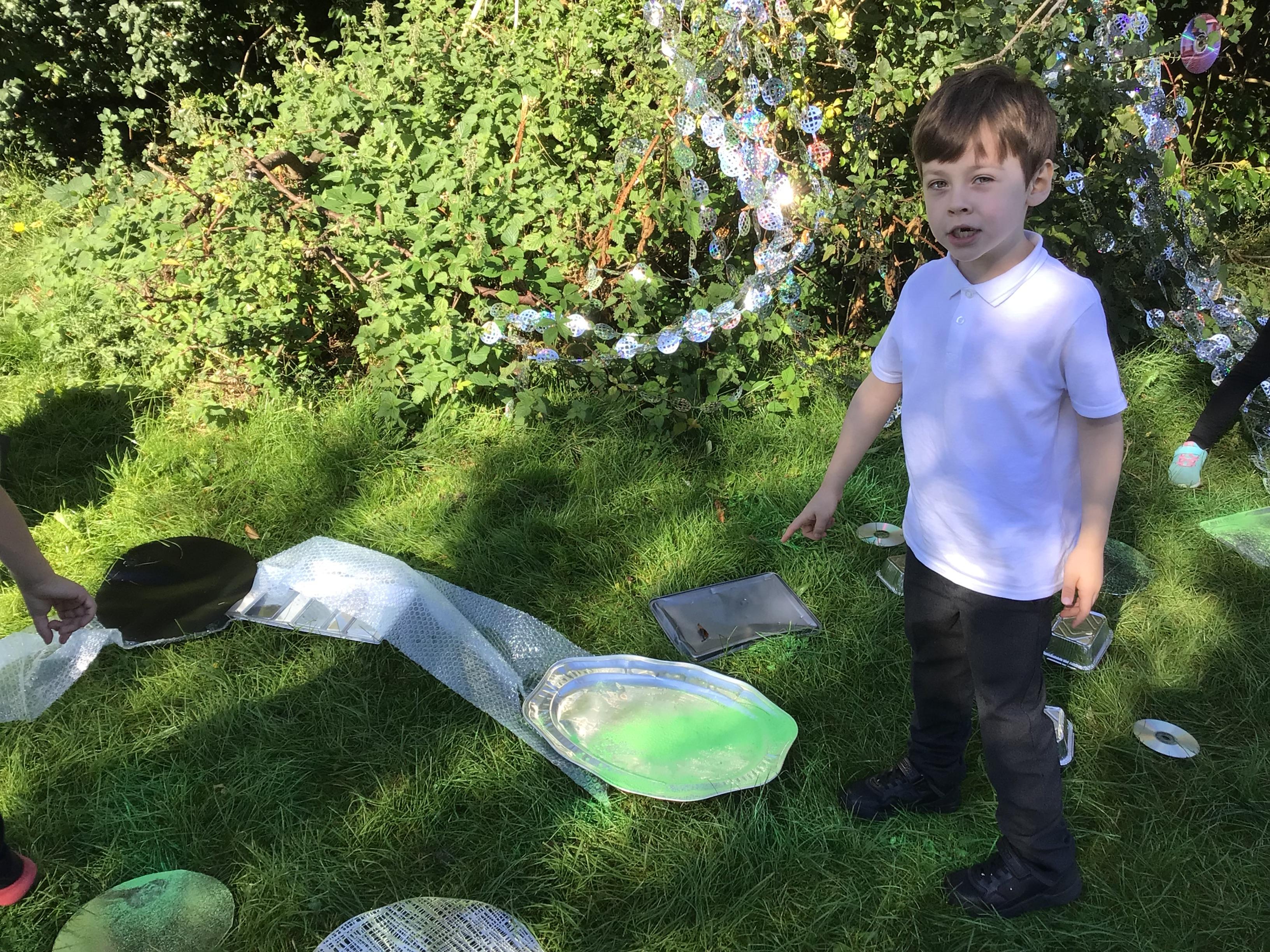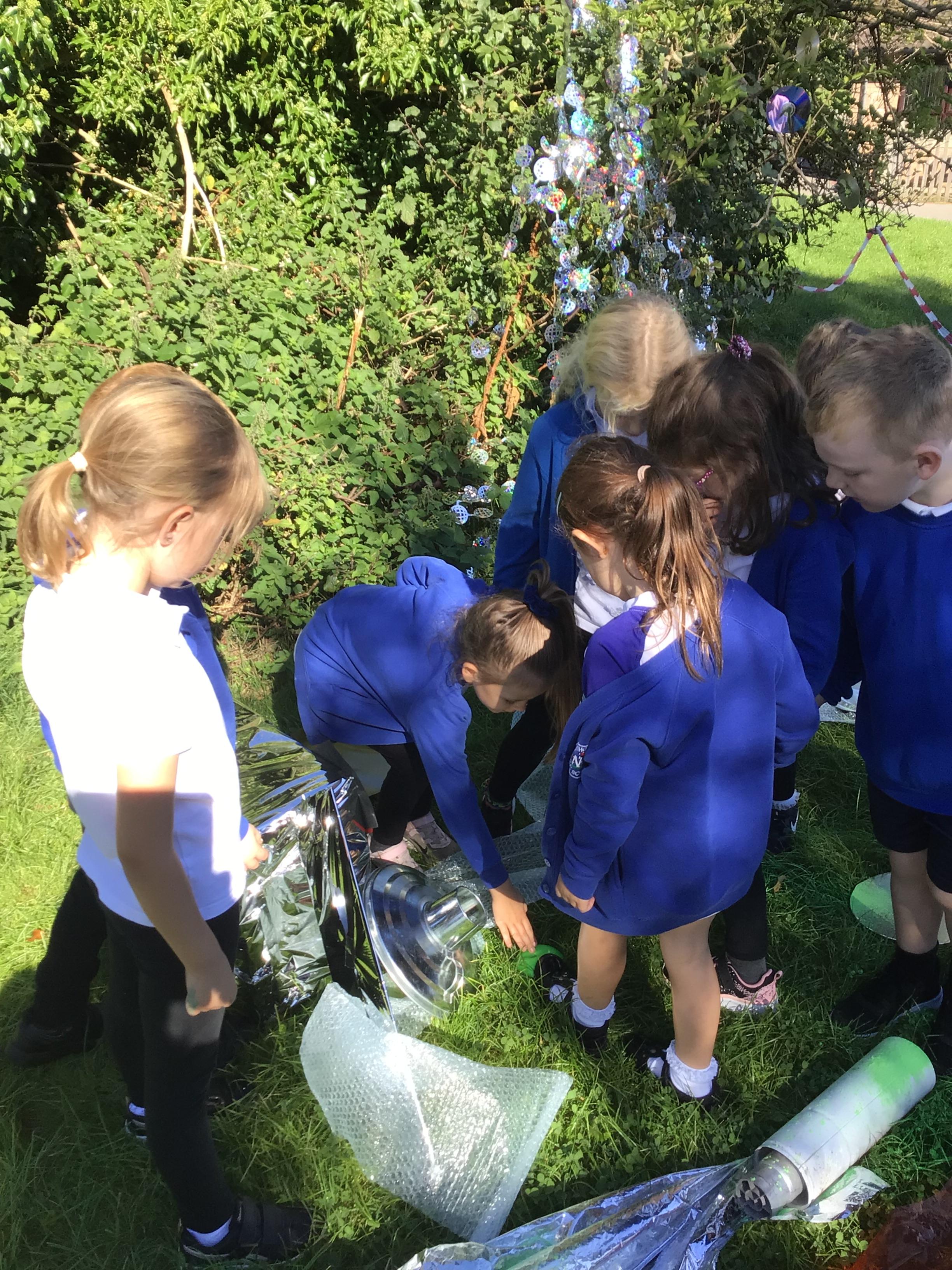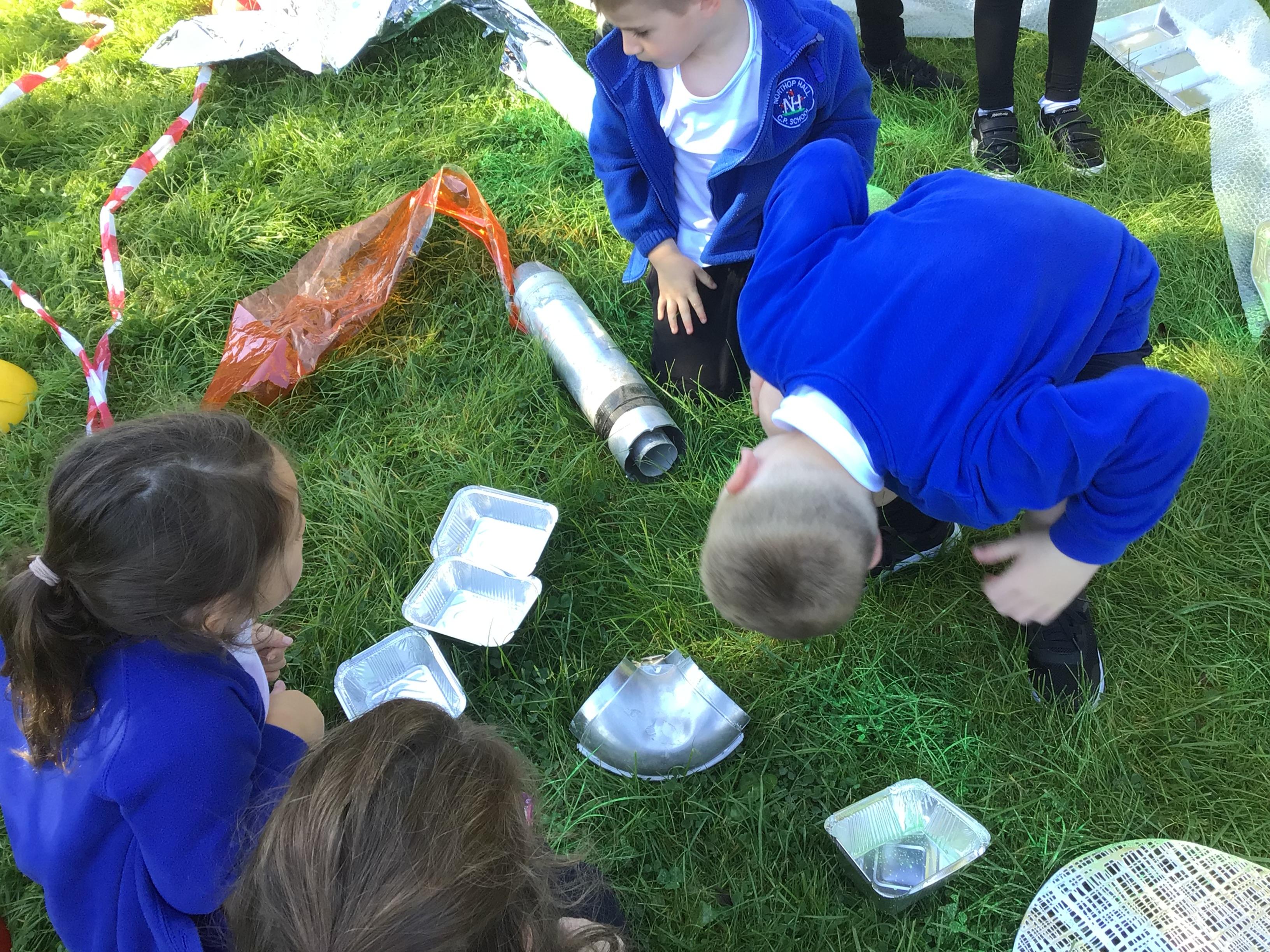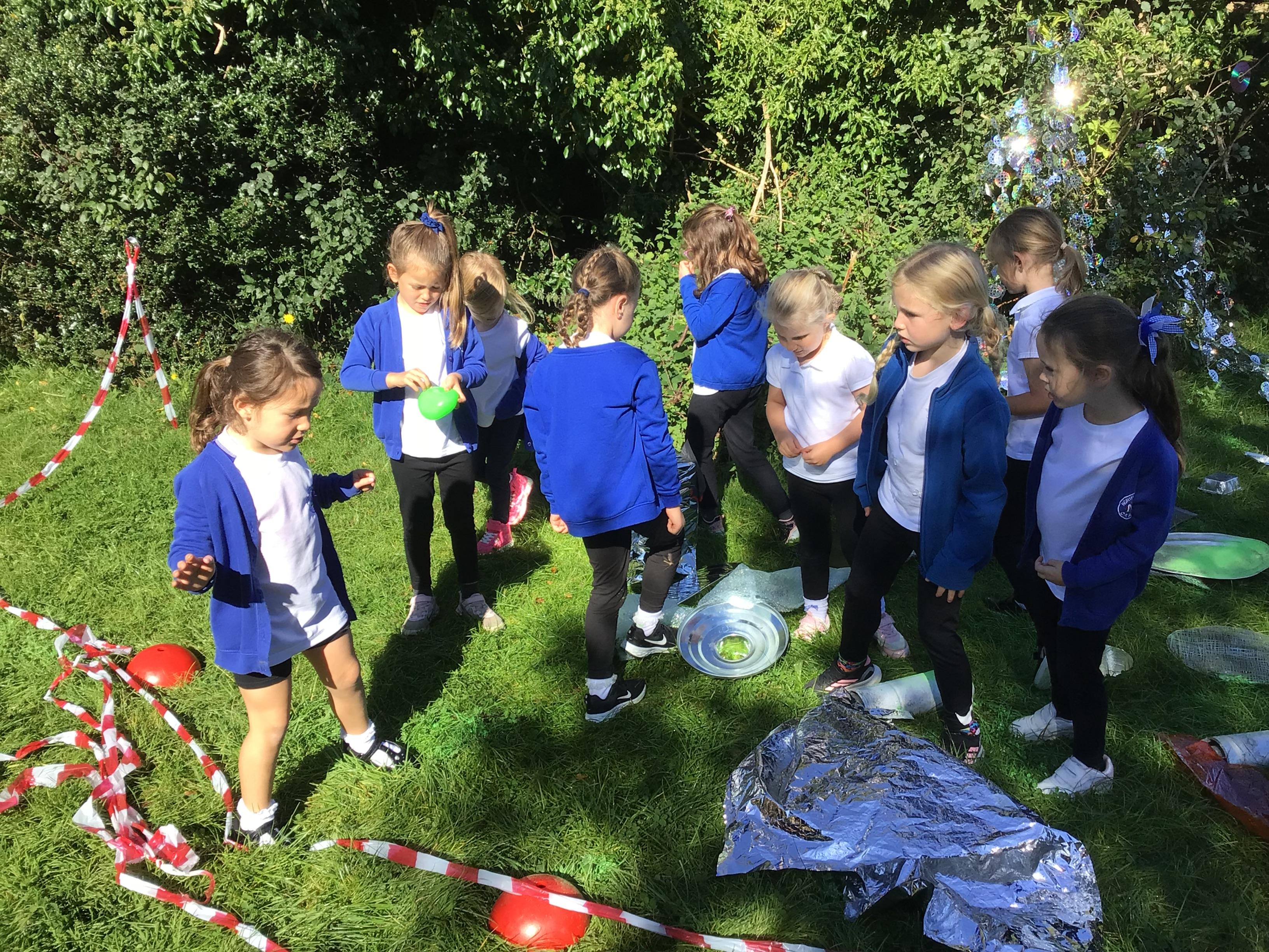 After receiving inquiries about flashing lights and mysterious noises, we went to investigate and couldn’t believe what we found! A spaceship had crash landed on our school field!!! There were pieces of spaceship spread all over and we even found some green space dust and slime!