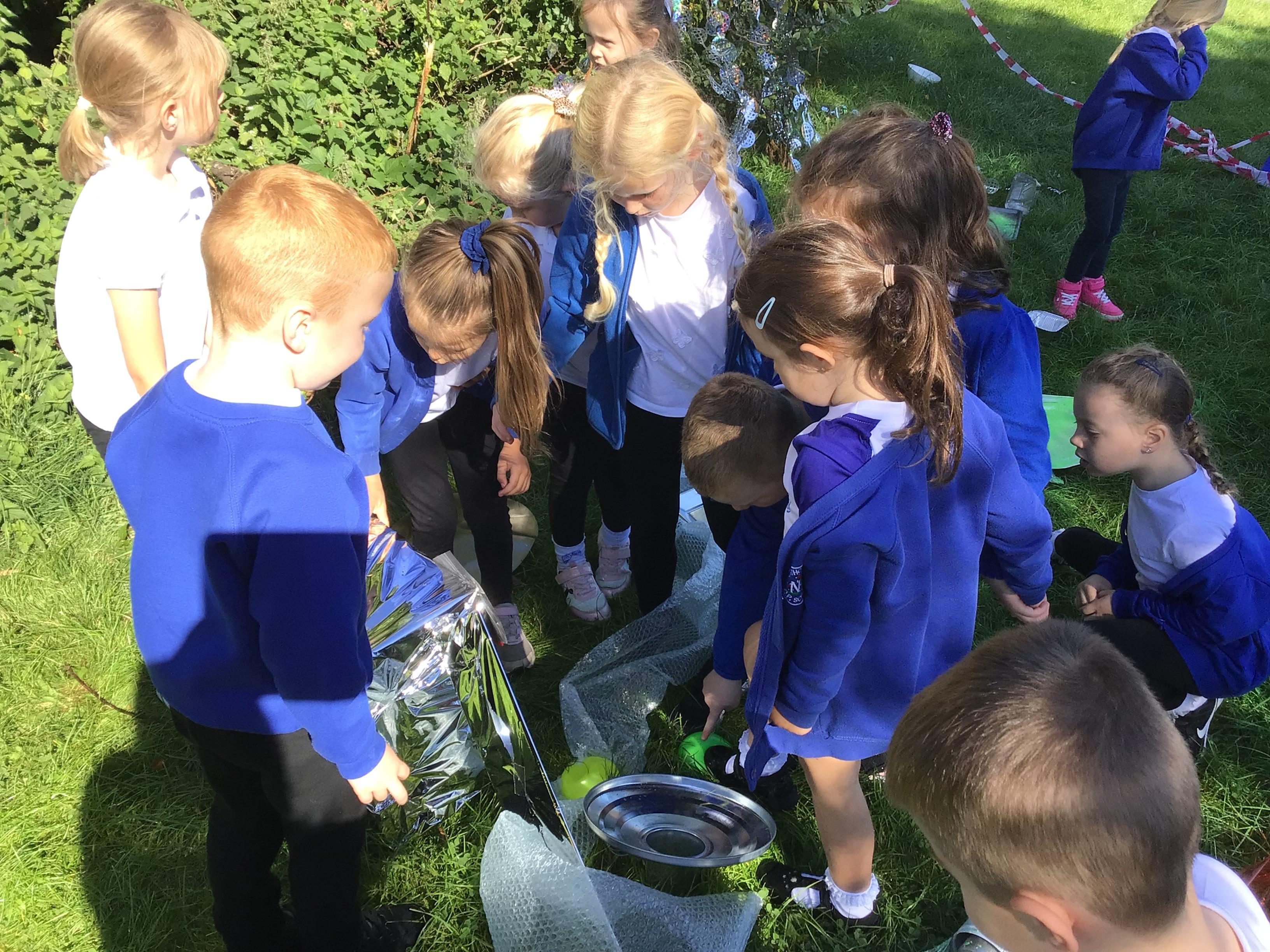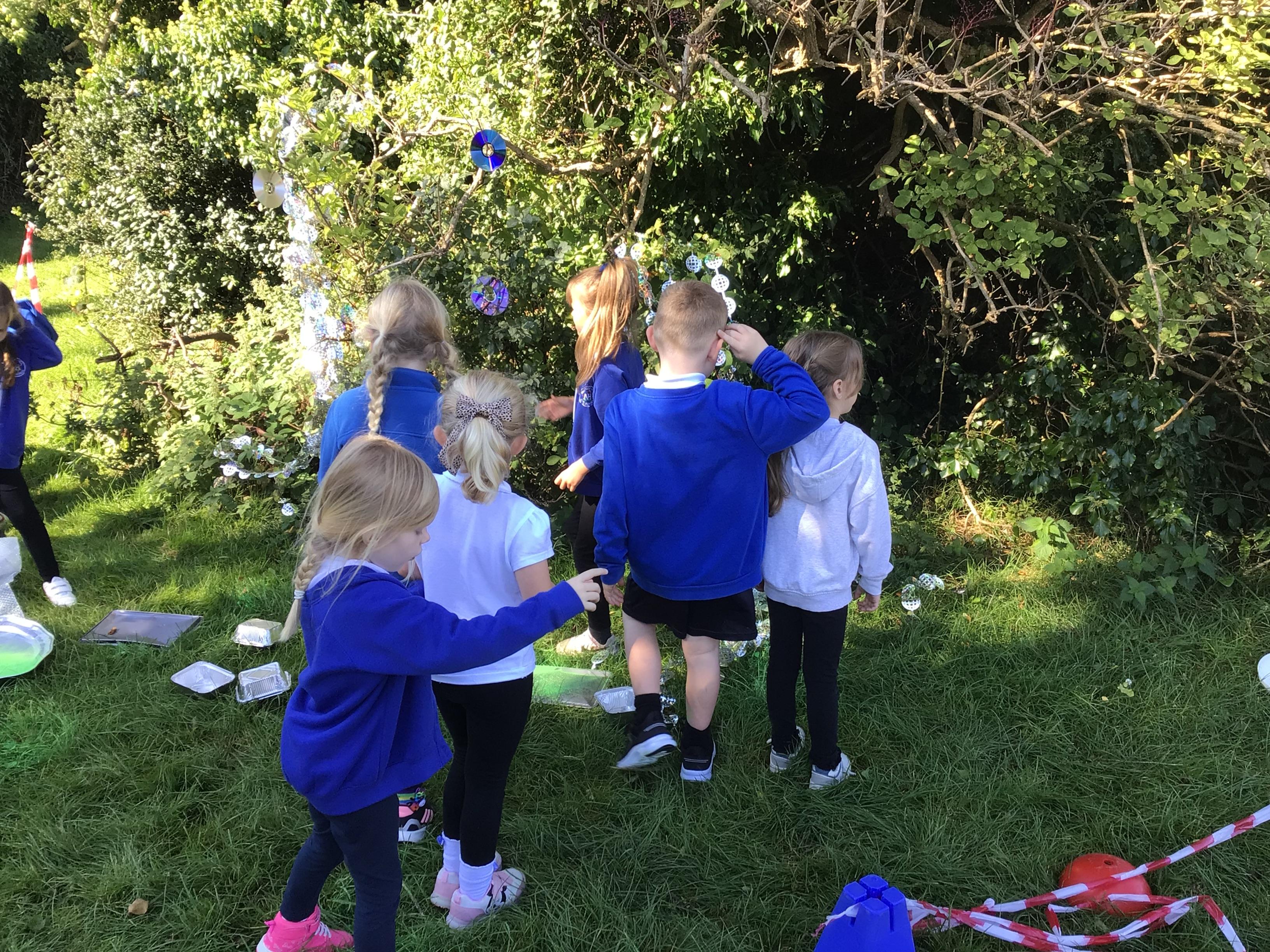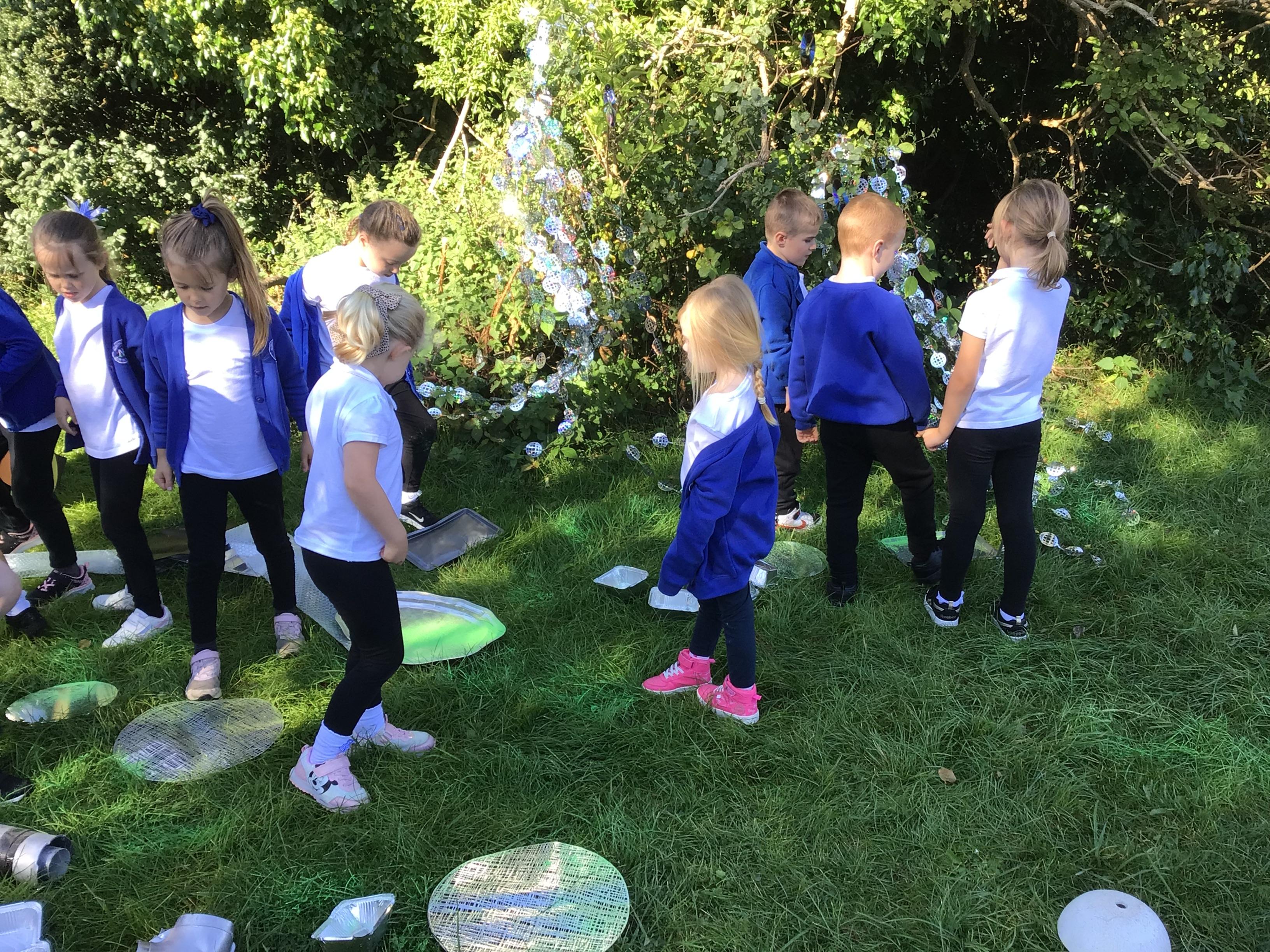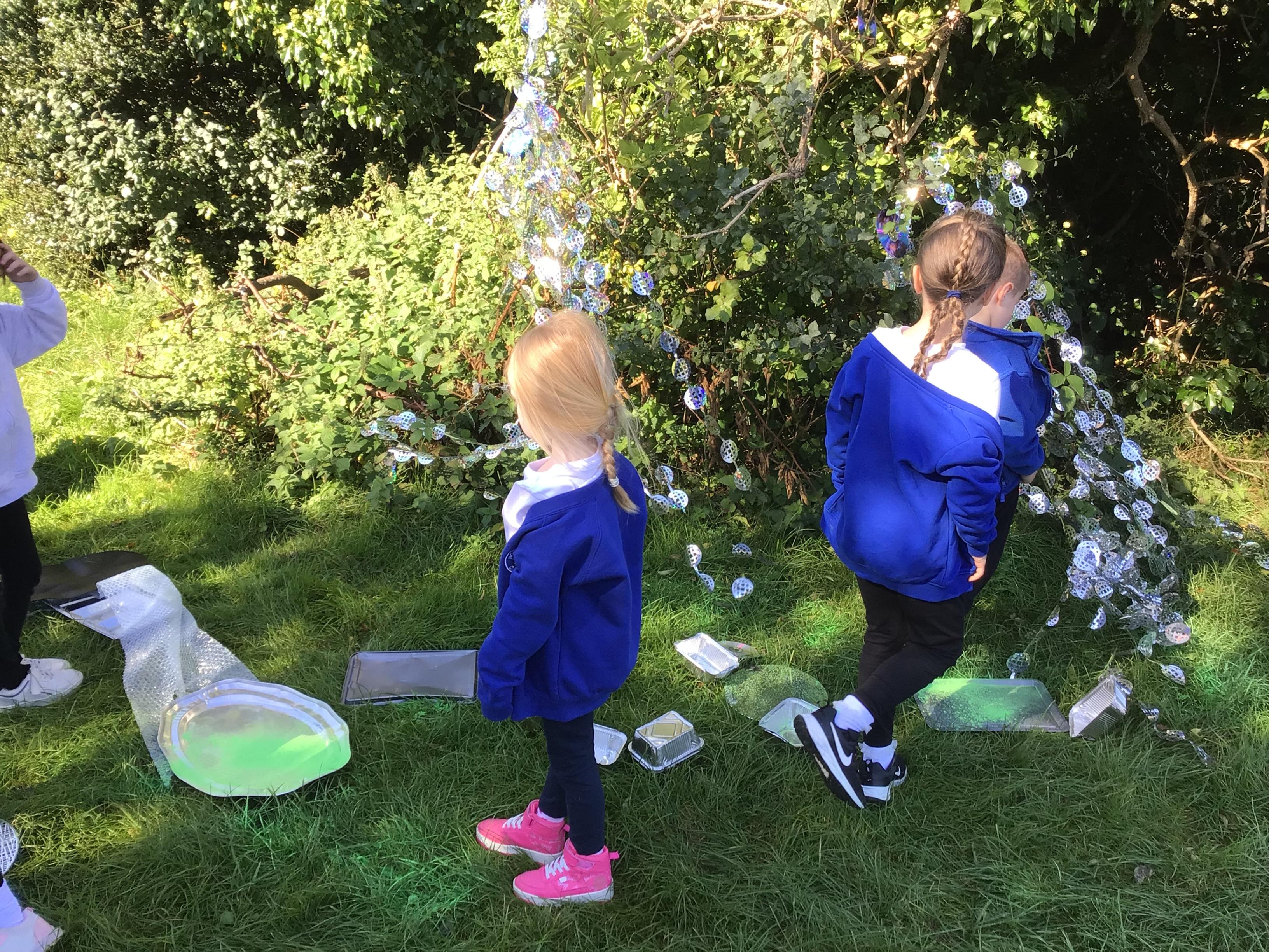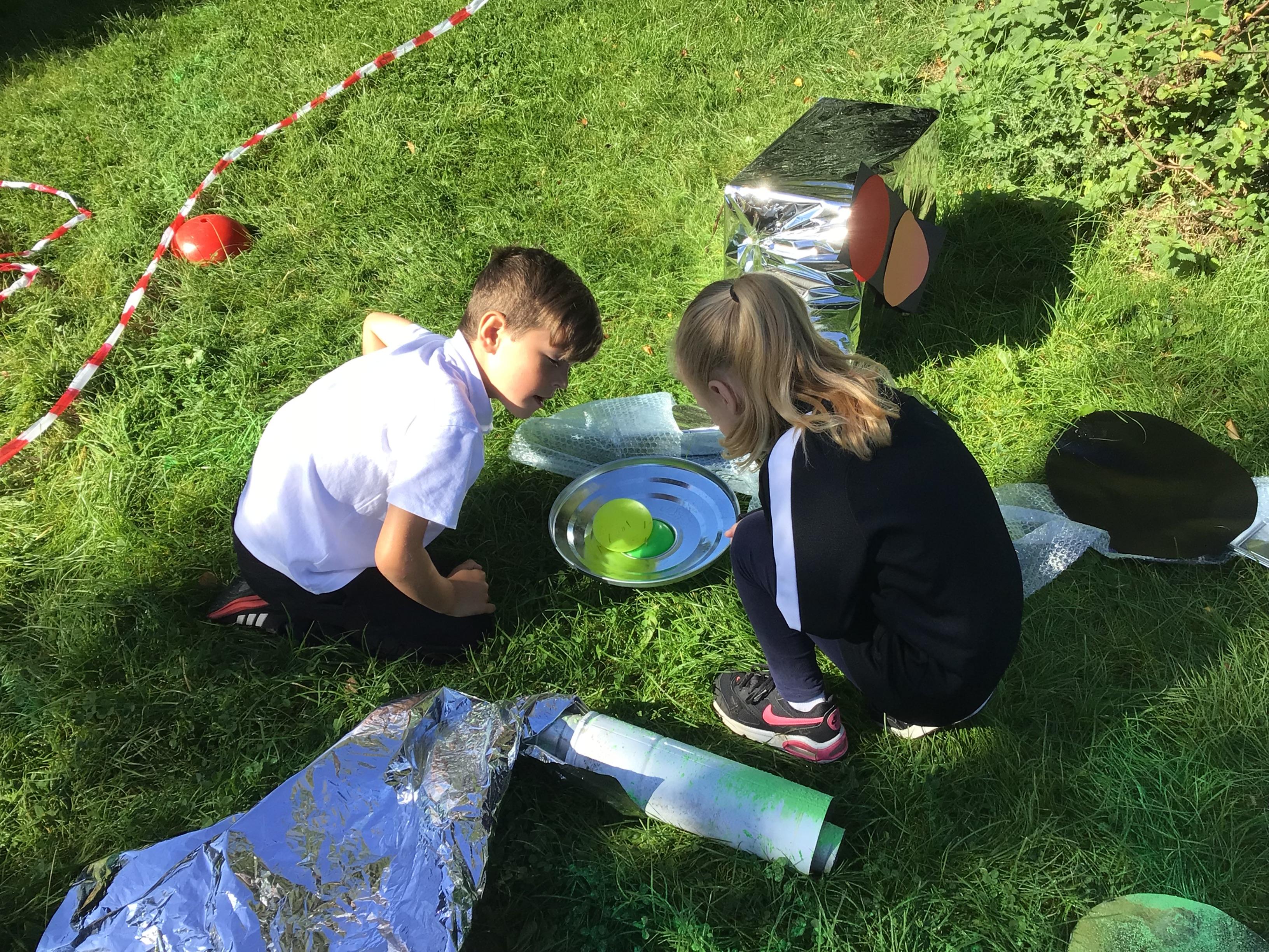 After receiving inquiries about flashing lights and mysterious noises, we went to investigate and couldn’t believe what we found! A spaceship had crash landed on our school field!!! There were pieces of spaceship spread all over and we even found some green space dust and slime!