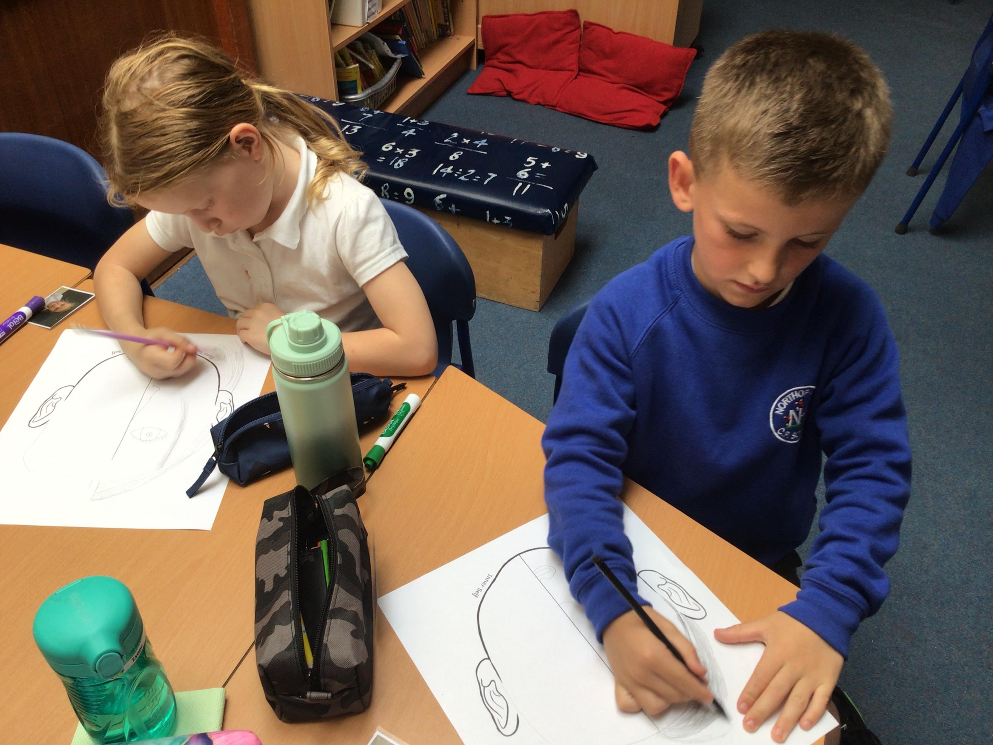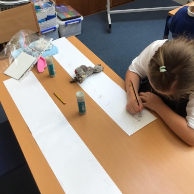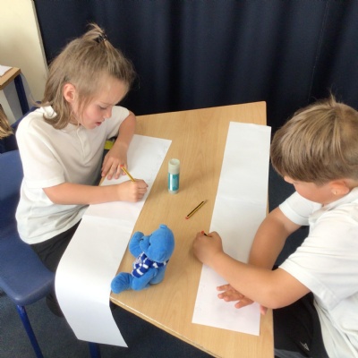 Today, the children have been using their homework to make their own development timeline. They have drawn what they looked like at different ages using the photos they have looked at. They have also added on details such as their first word, when they started a hobby and when they took their first steps.