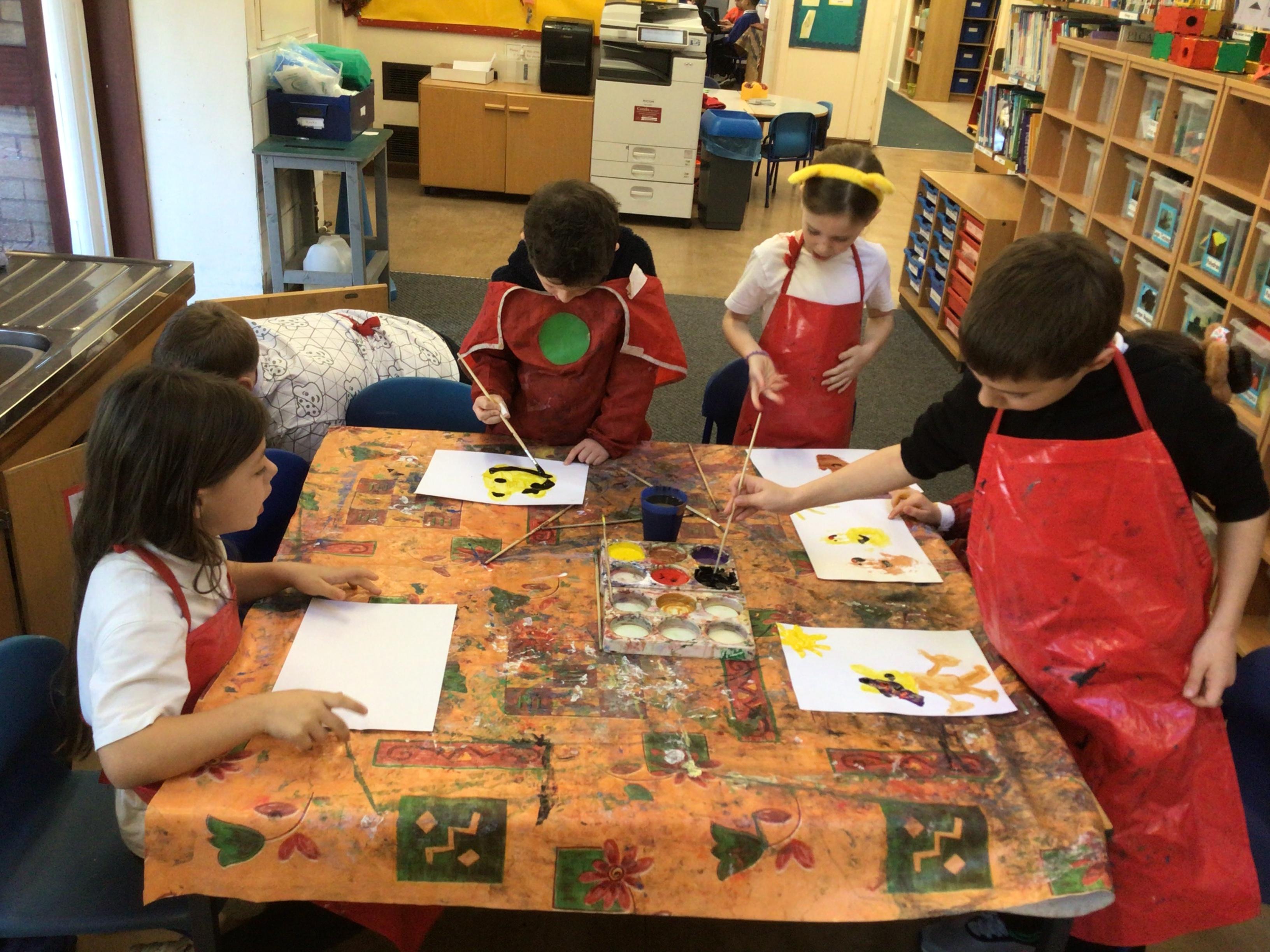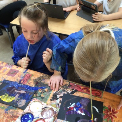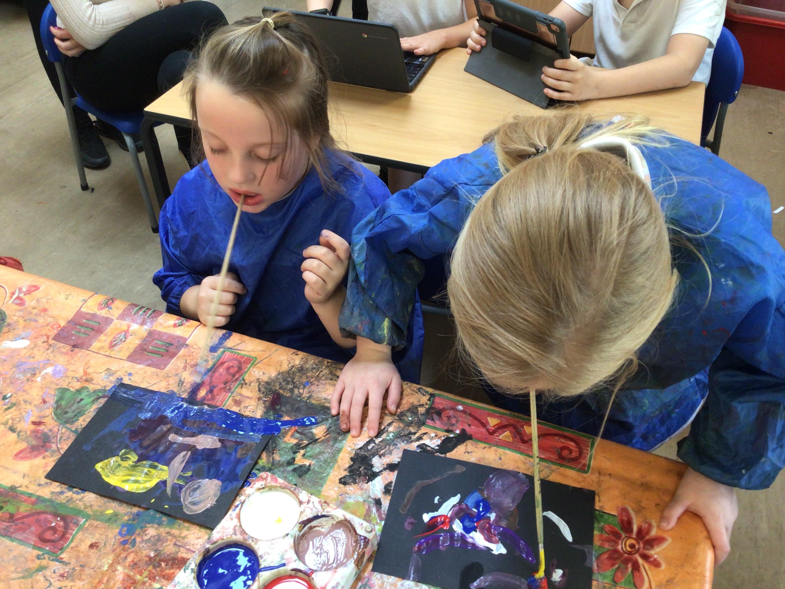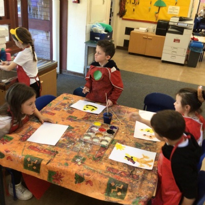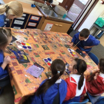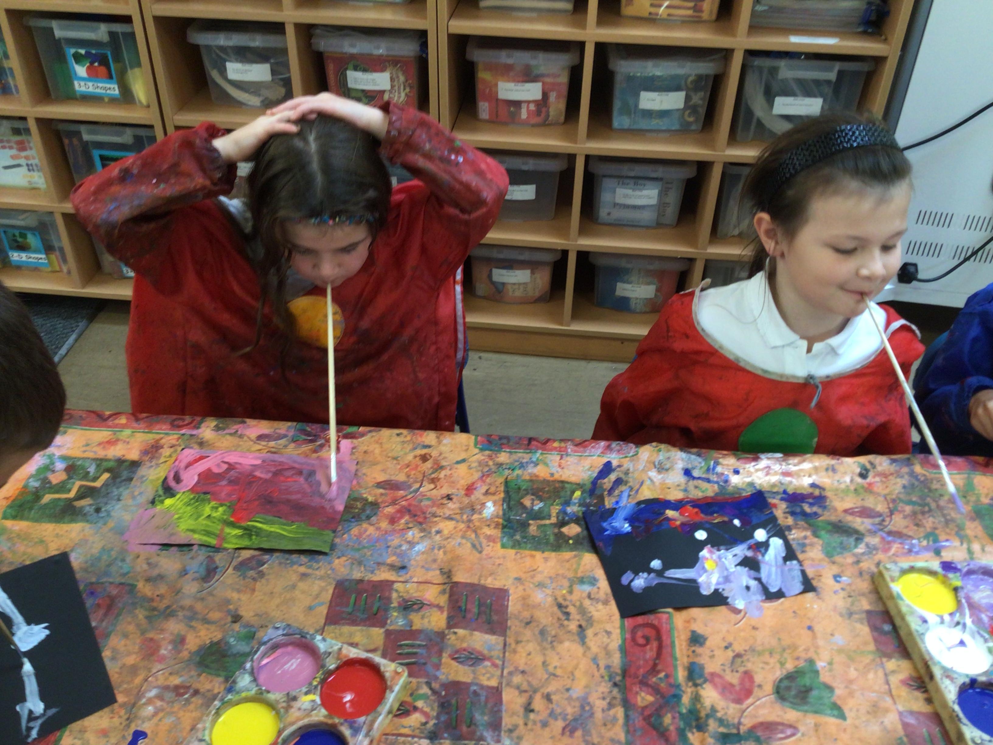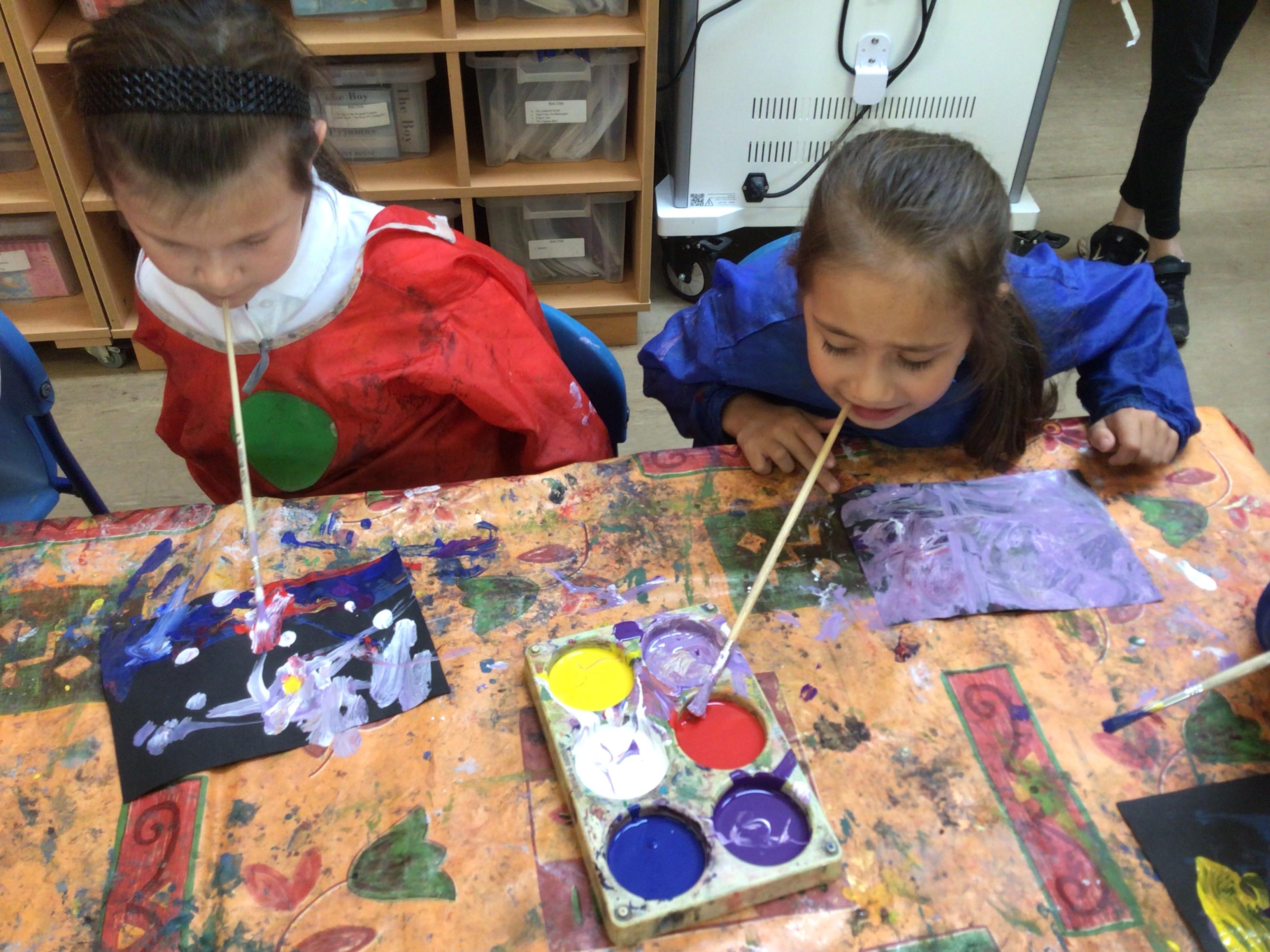 We have looked at art work created by a paraplegic artist and saw a video of how he uses specially adapted brushes in his mouth to paint. Some children tried mouth painting for themselves (don’t worry, the brushes were cleaned and sanitised) while others tried to reproduce his pictures using their hands.