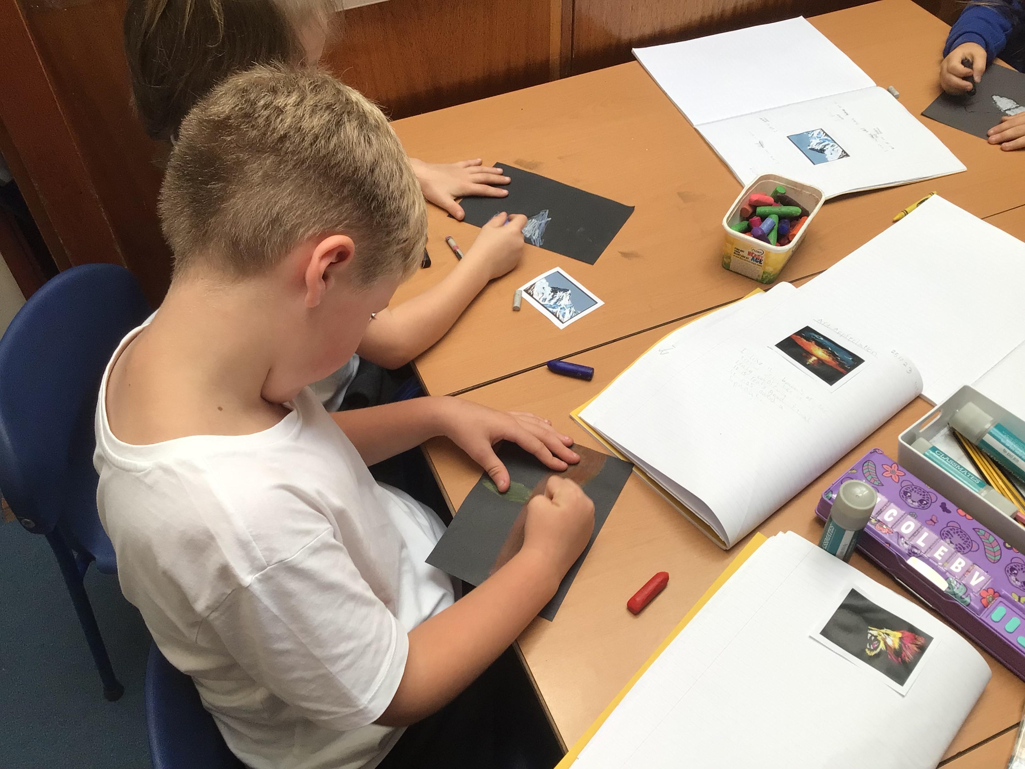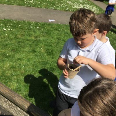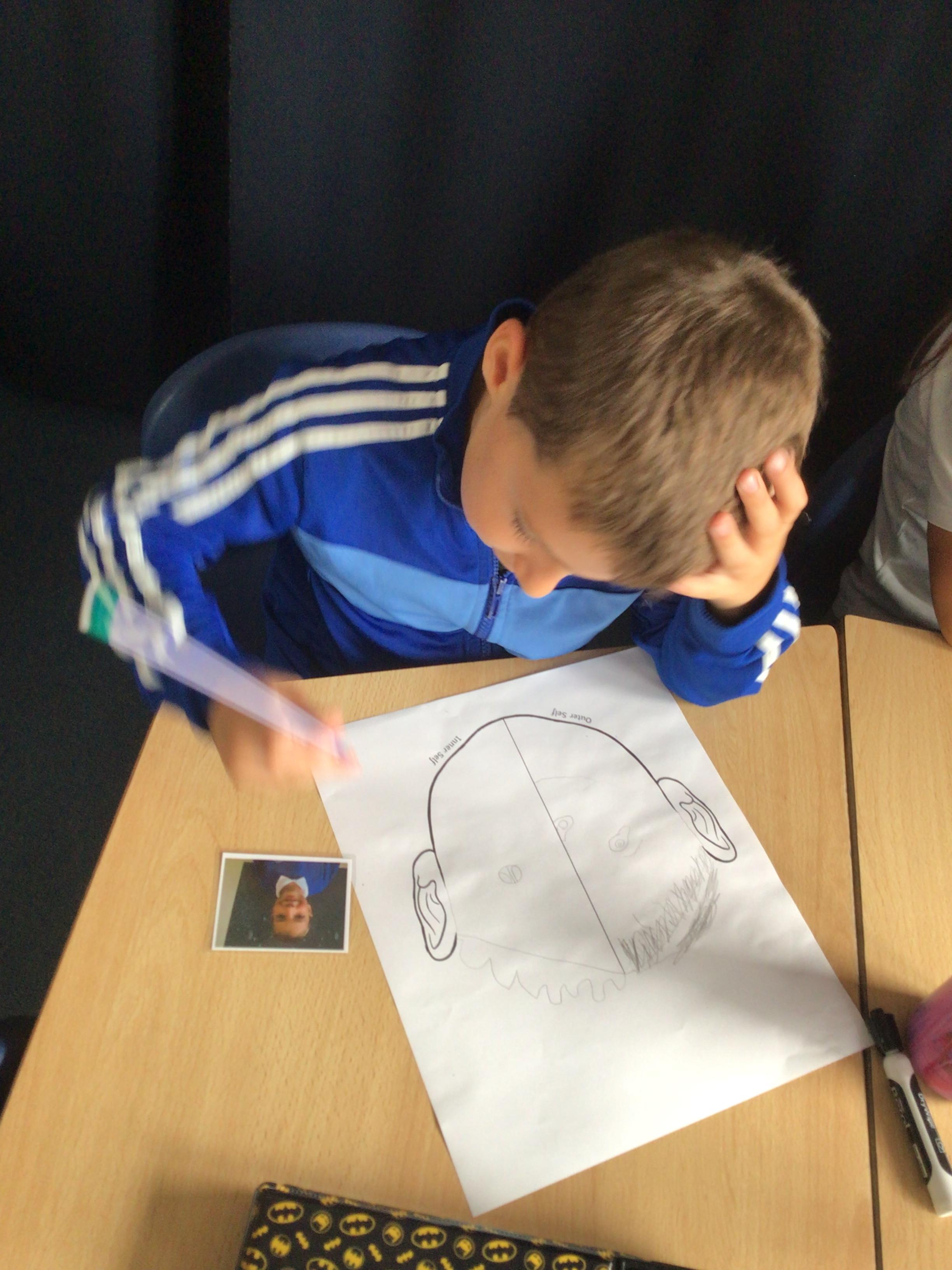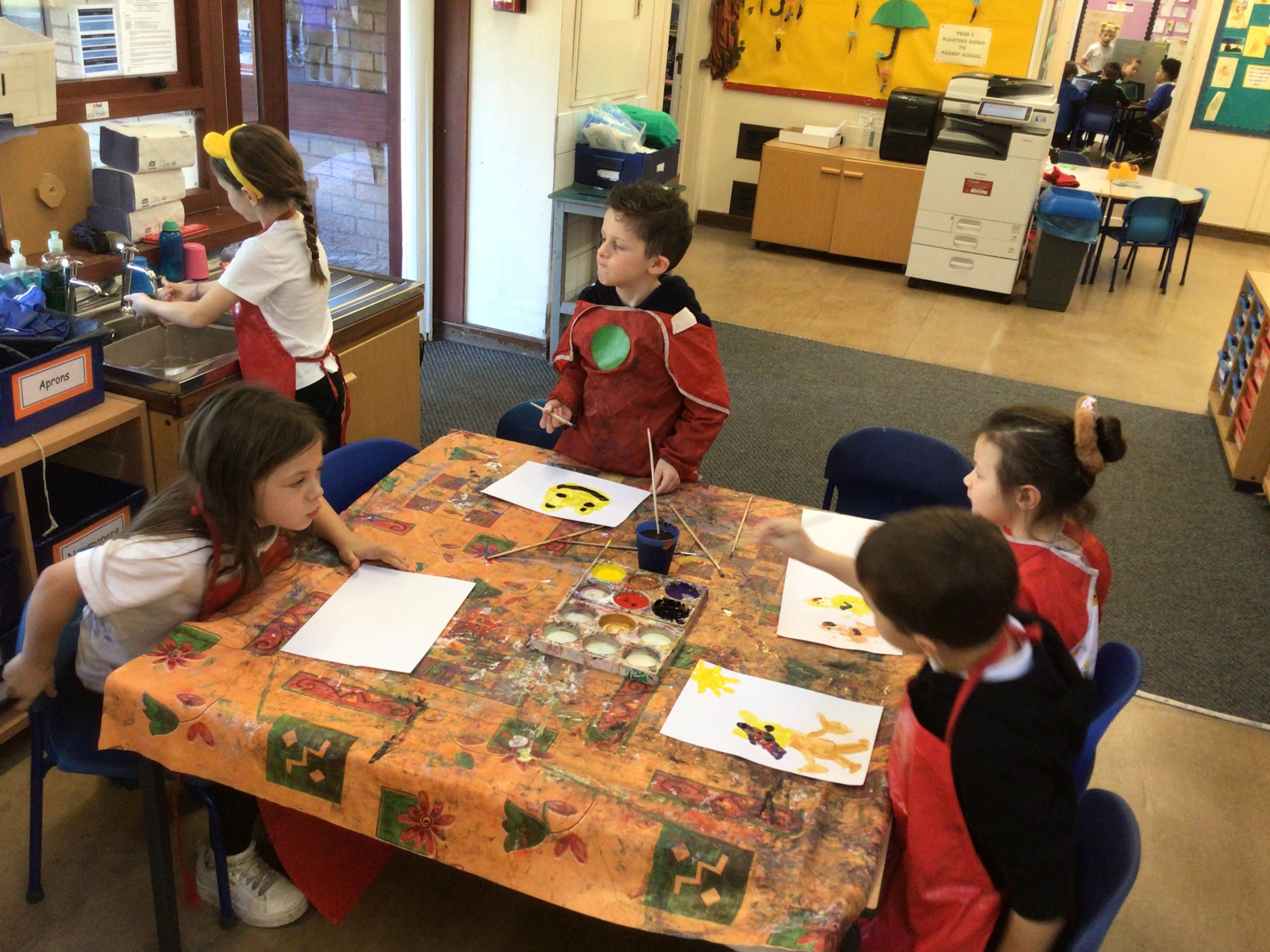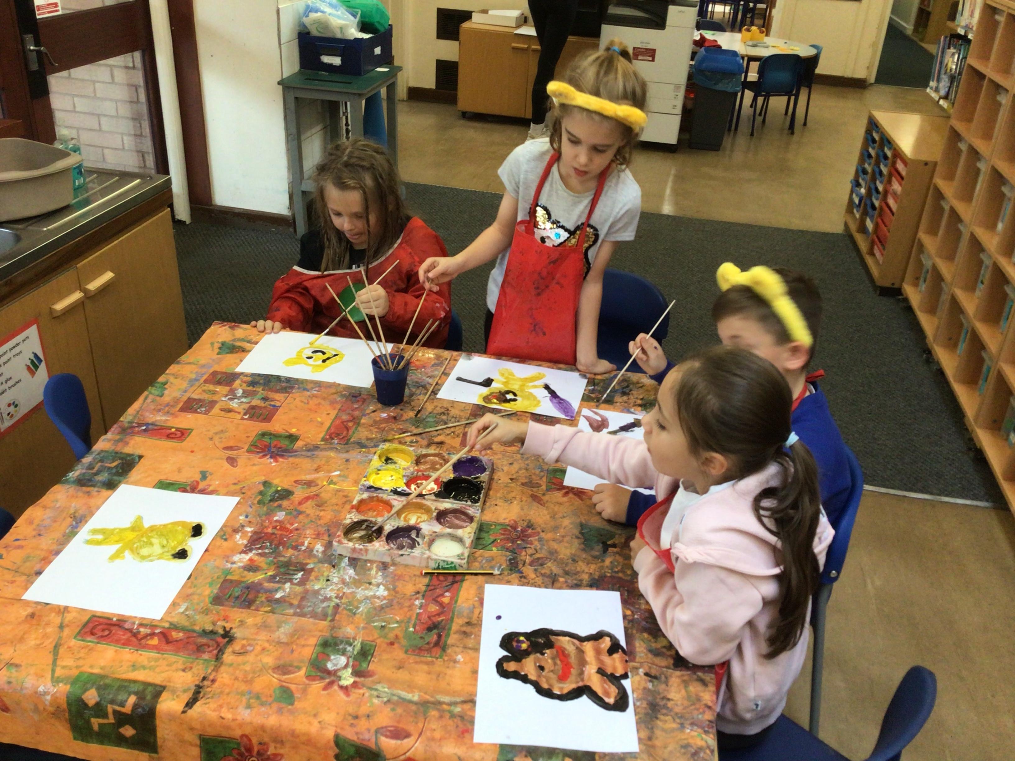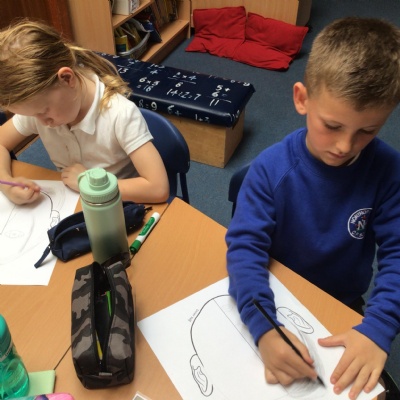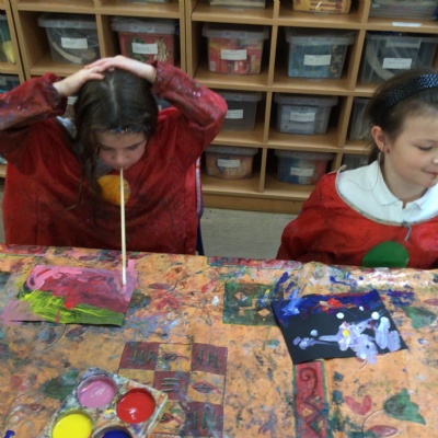 We have looked at art work created by a paraplegic artist and saw a video of how he uses specially adapted brushes in his mouth to paint. Some children tried mouth painting for themselves (don’t worry, the brushes were cleaned and sanitised) while others tried to reproduce his pictures using their hands.
