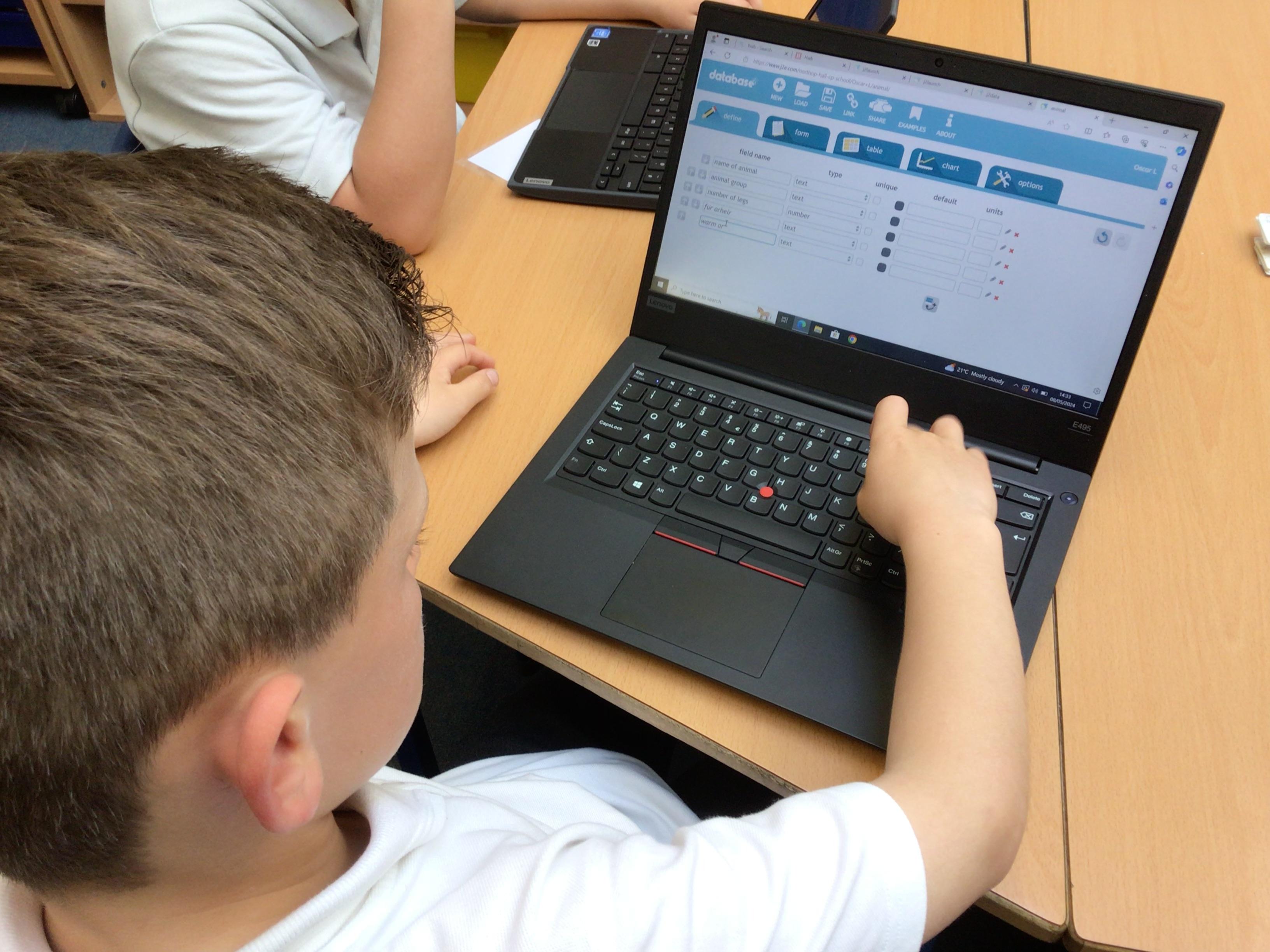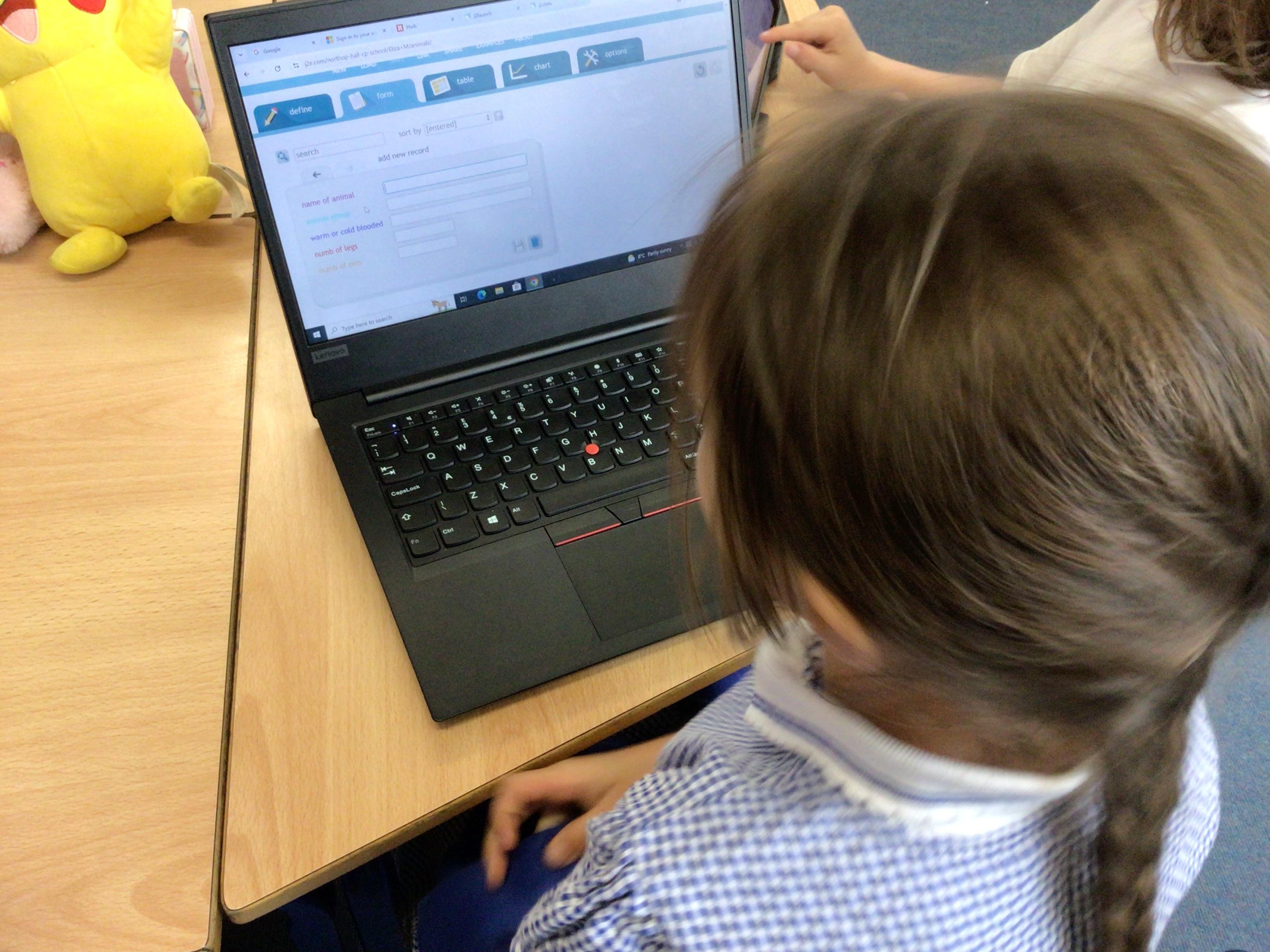 We have been using j2e databases to collect data about different animals. The children had to choose which data to collect and include these as data fields. They used their knowledge about animal groups to do this. Then they chose an animal to fill in the data about.