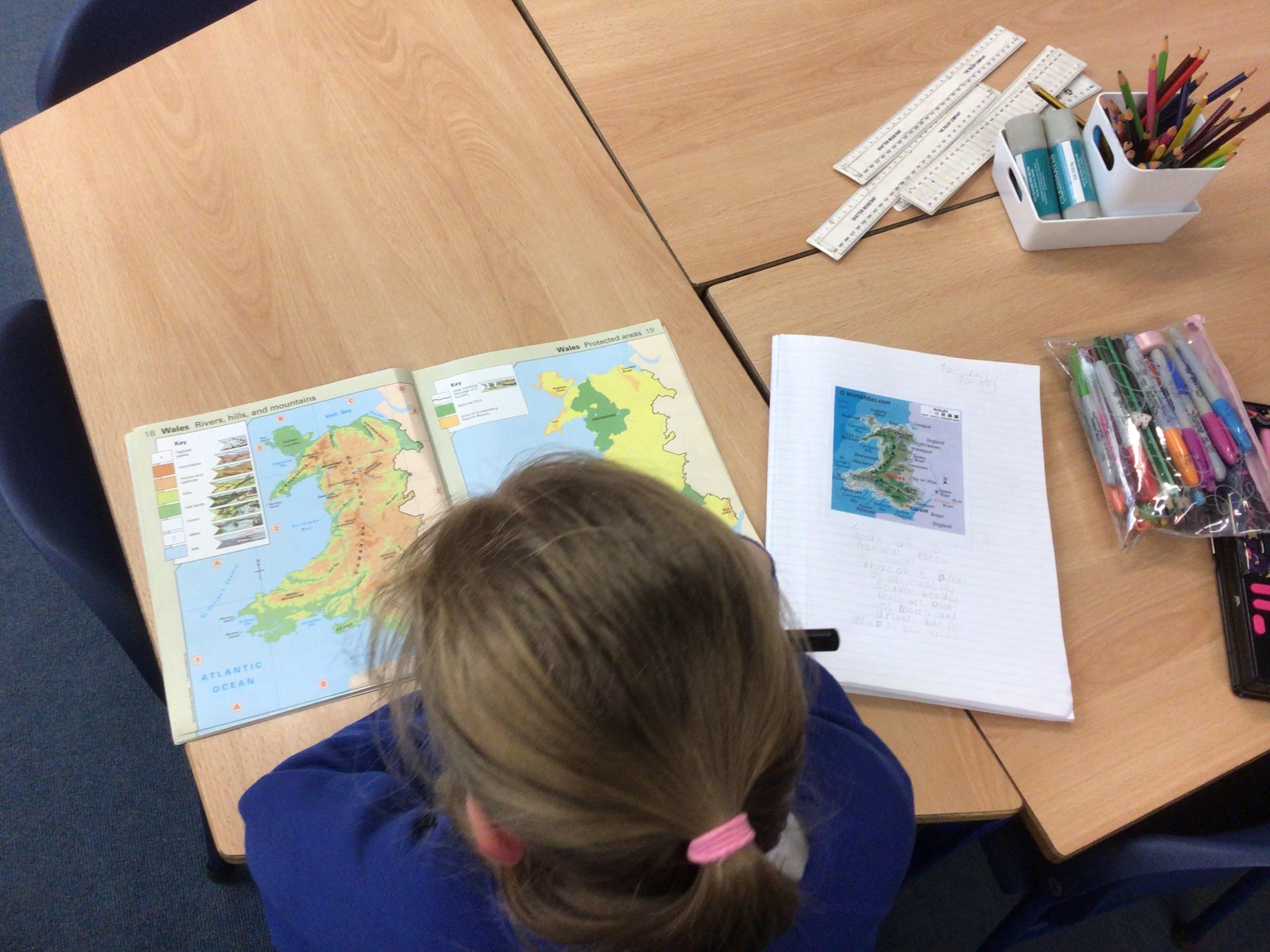 Our new Inquiry is well underway in Year 3. We’ve thought of things we already know about Wales and things we’d like to know. The children realised they weren’t sure which towns and cities were in Wales so we’ve been using atlases and online maps to explore places in Wales.