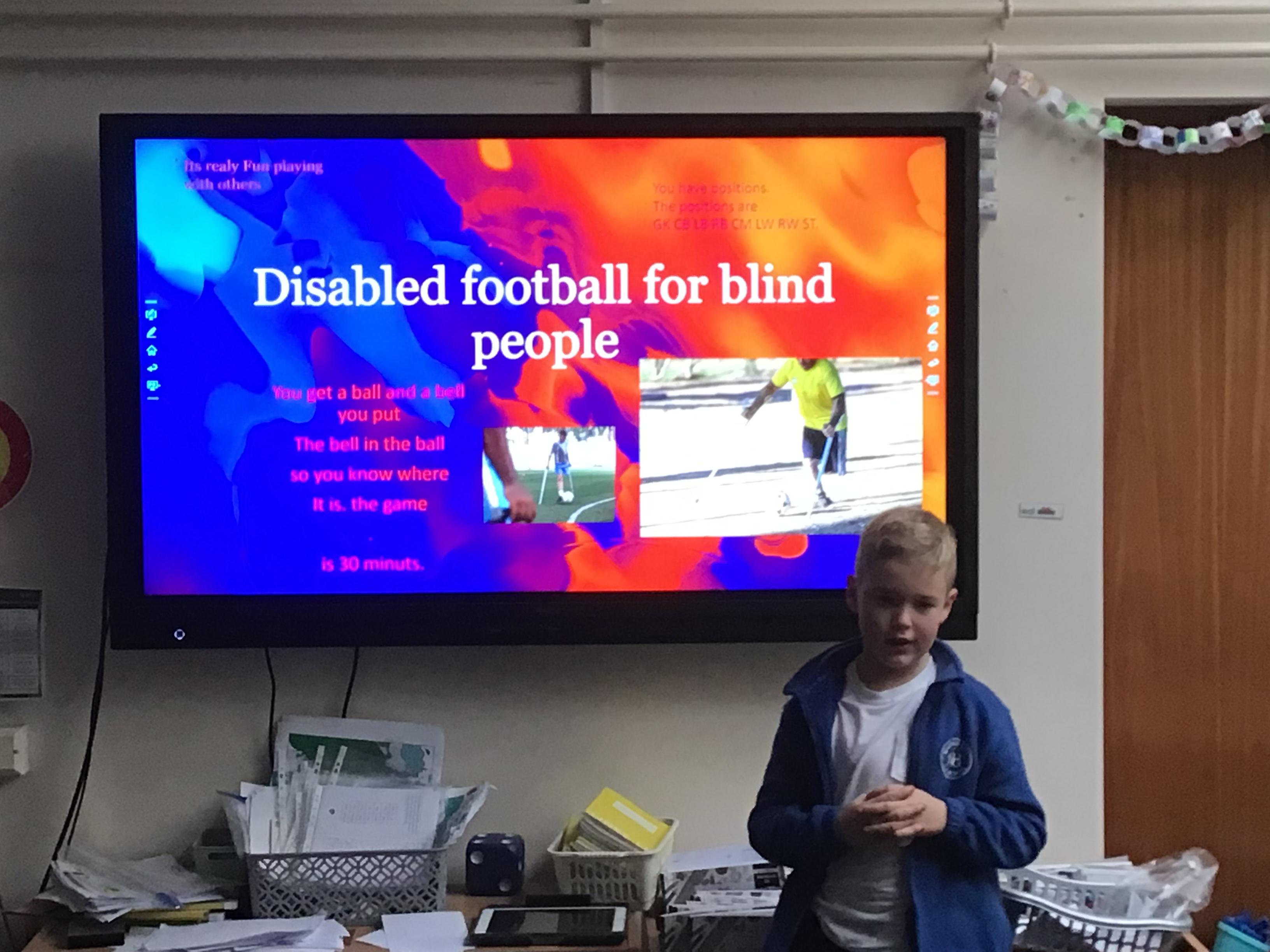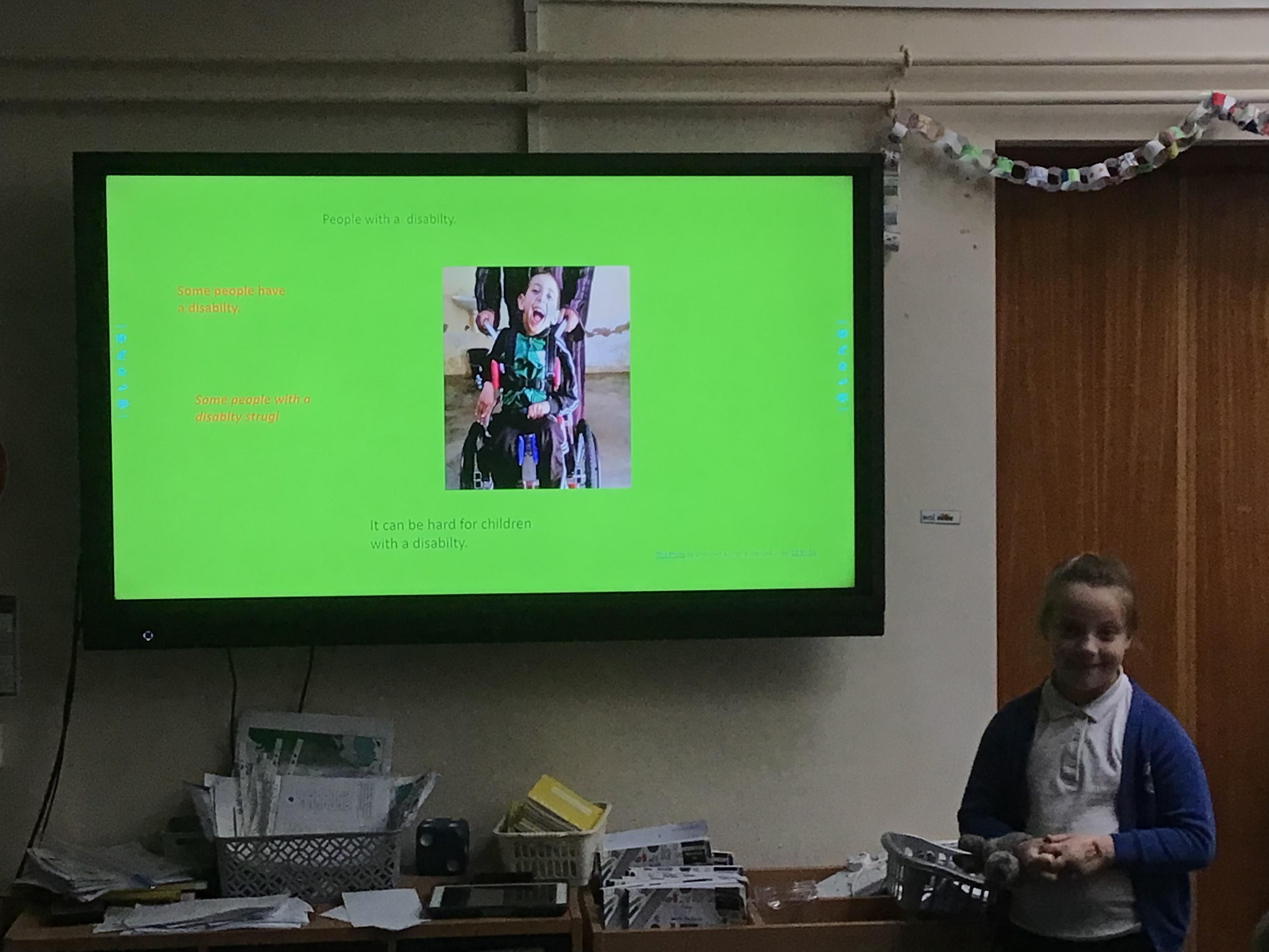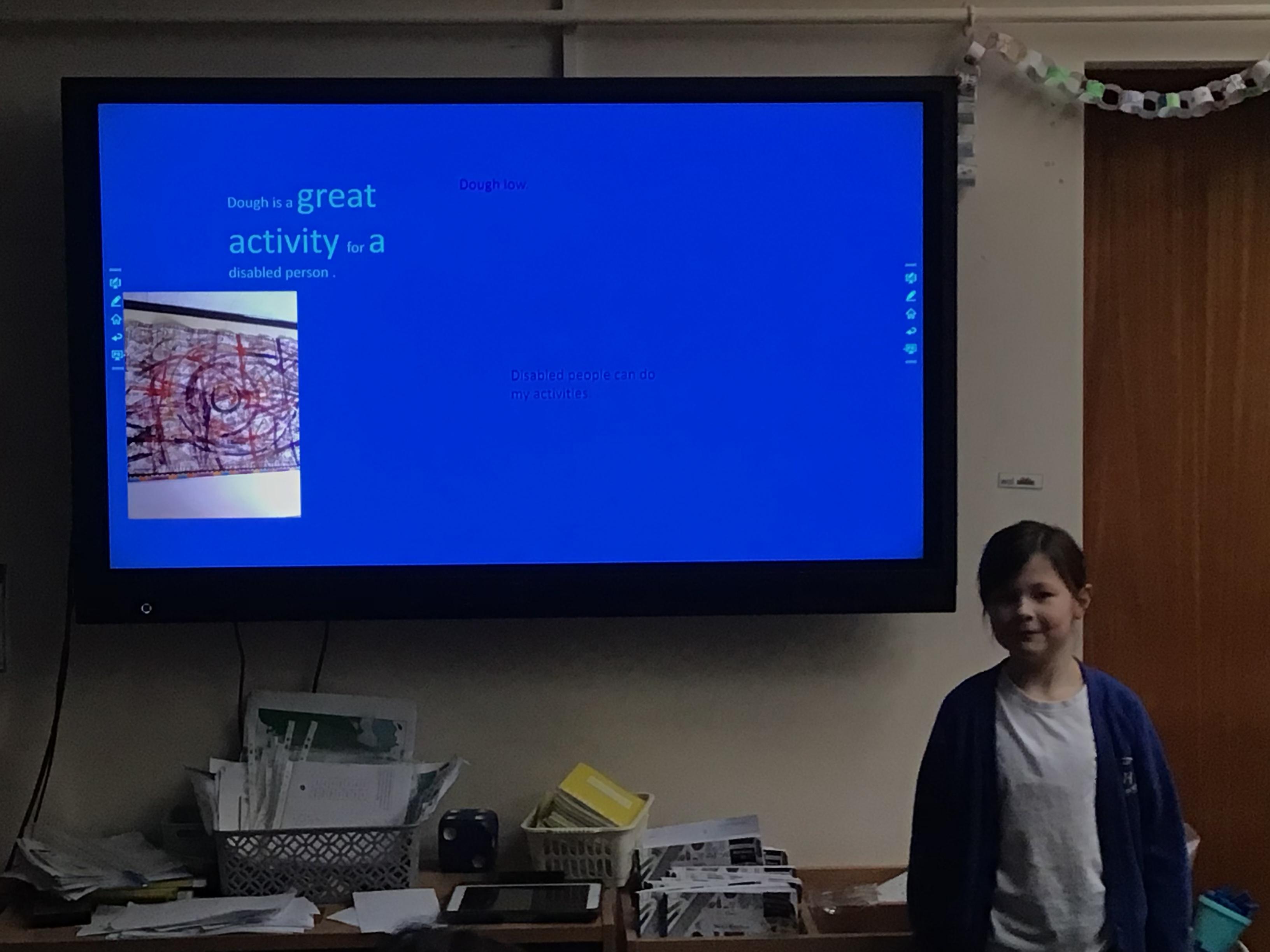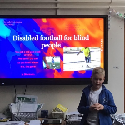 Today, the Year 3 children have presented their PowerPoints to the Year 4 class. They had a practice with our class first before presenting to their audience. They have worked very hard on the PowerPoints over the last few weeks and learned lots of new IT skills as well as finding out about disability sport and art activities. They have overcome some nerves and did a brilliant job speaking in front of others.