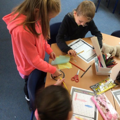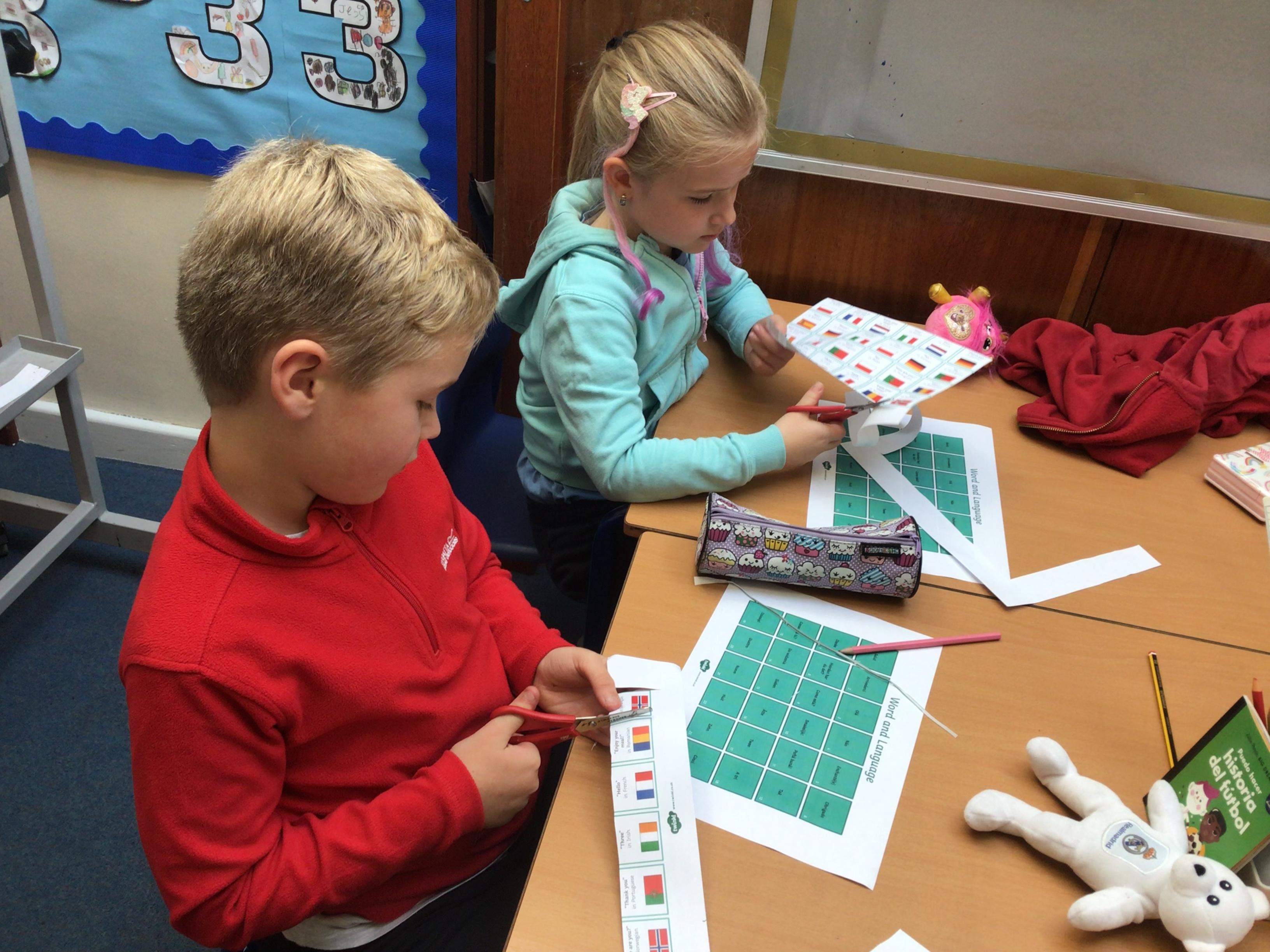 Today we’ve been celebrating different languages in Europe. We’ve learned 8 different ways to say “hello”, matched common words and phrases, found European countries in a word search and made European landmark sun catchers.