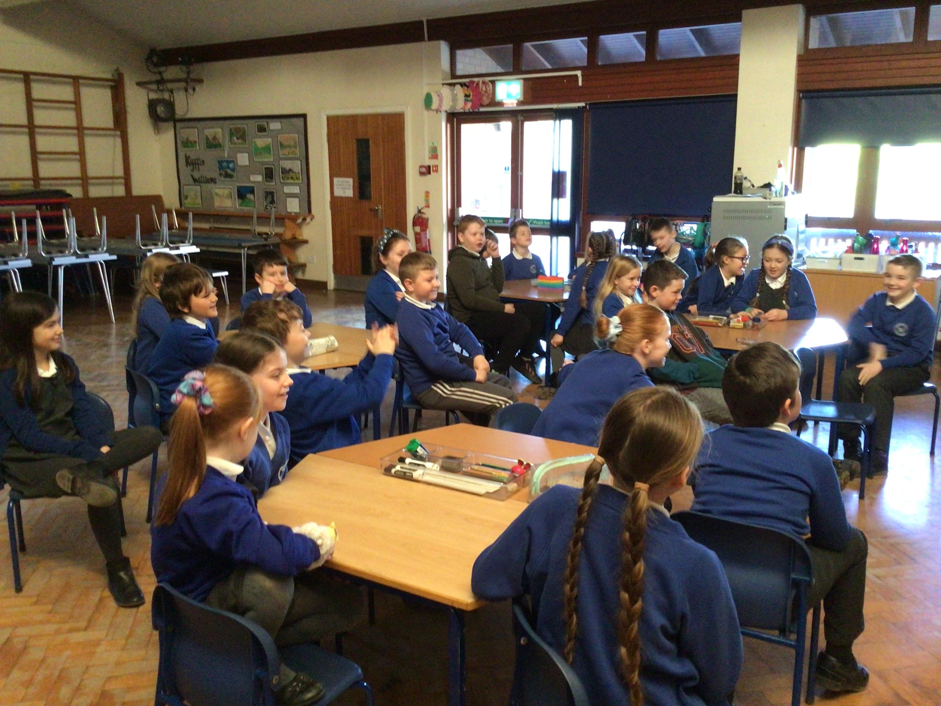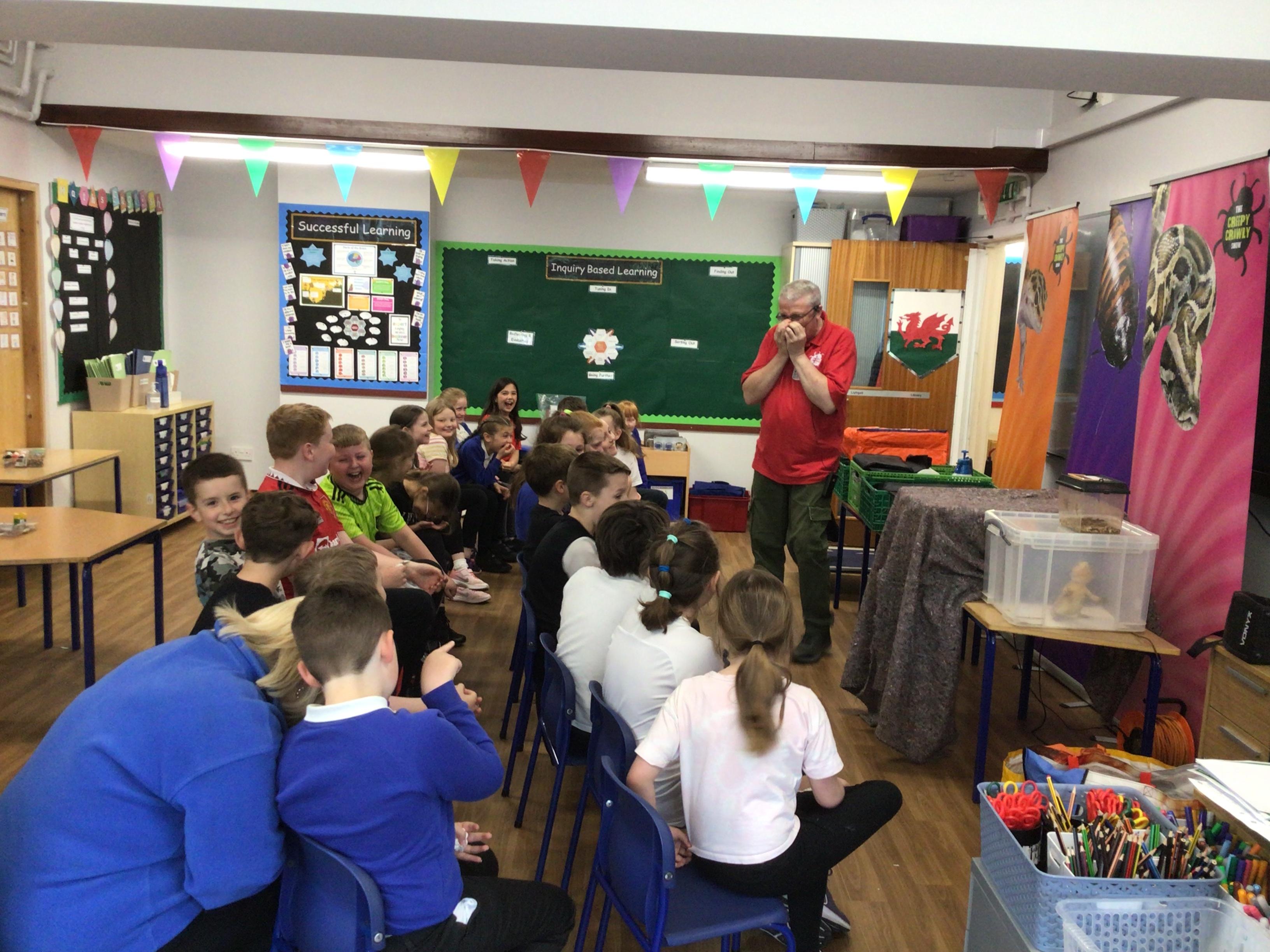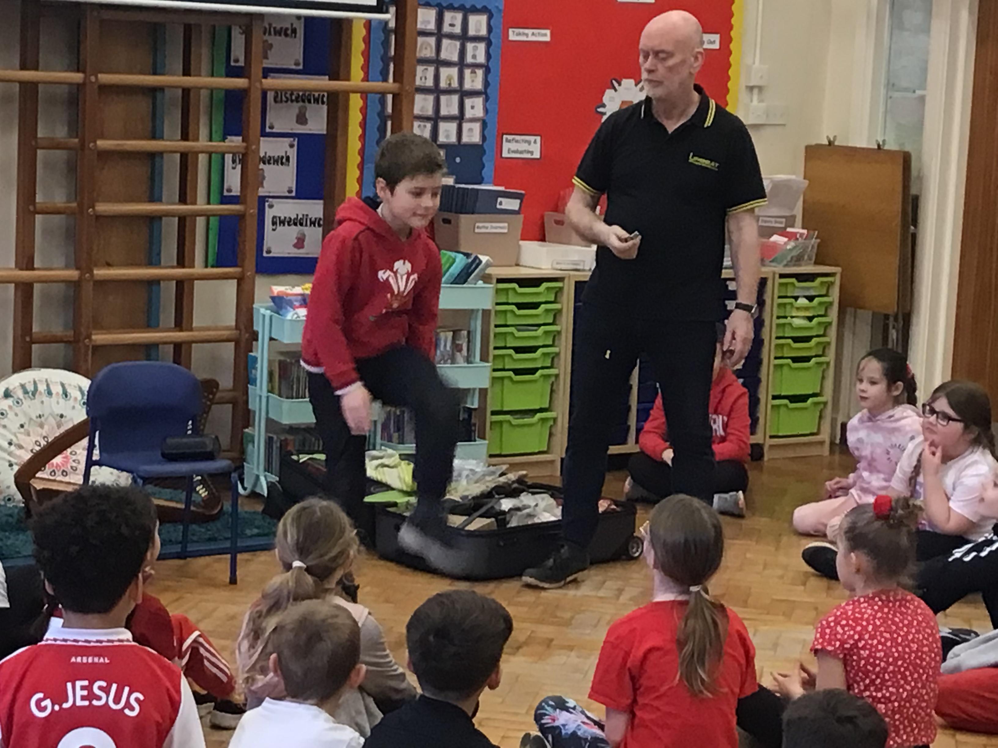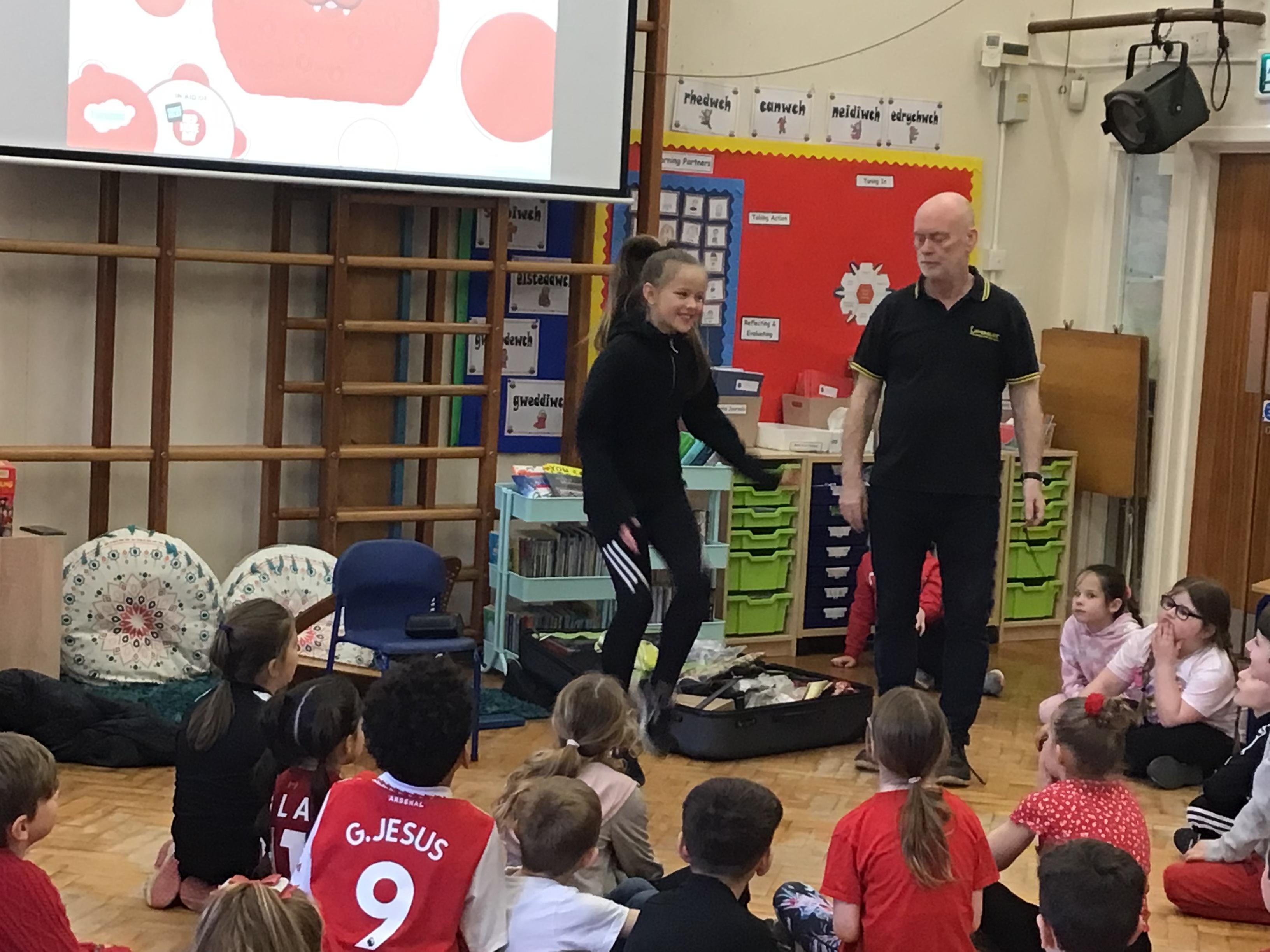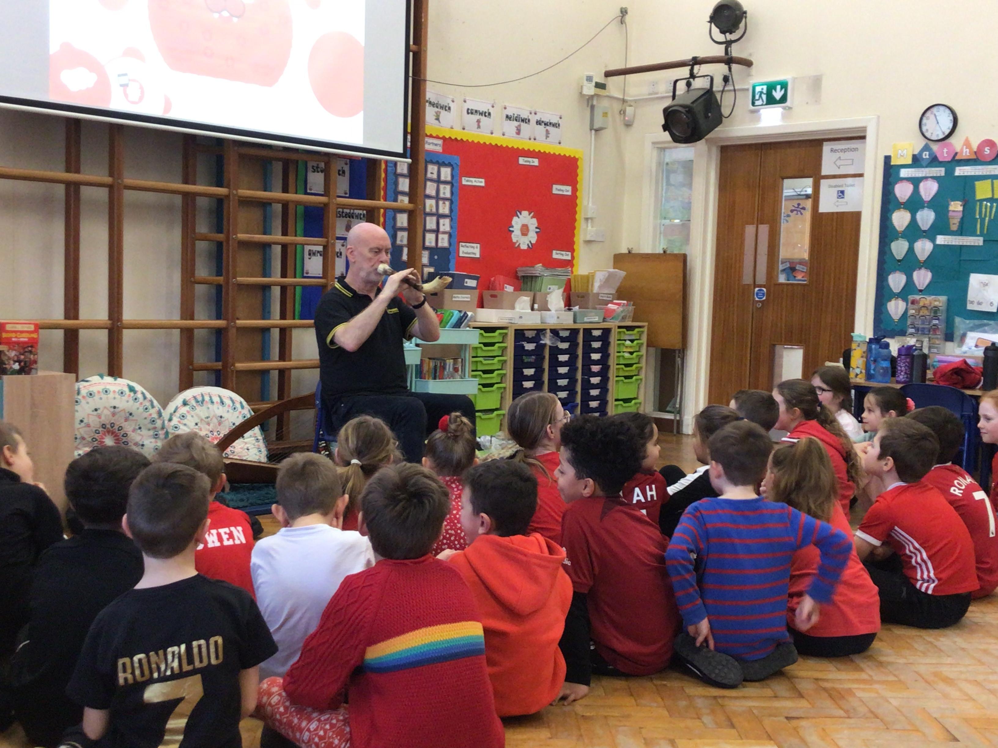 Today we had a visit from Huw from Upbeat Music and Arts. We listened to him play some traditional Welsh instruments and then he taught us how to clog dance! We had a lot of fun!