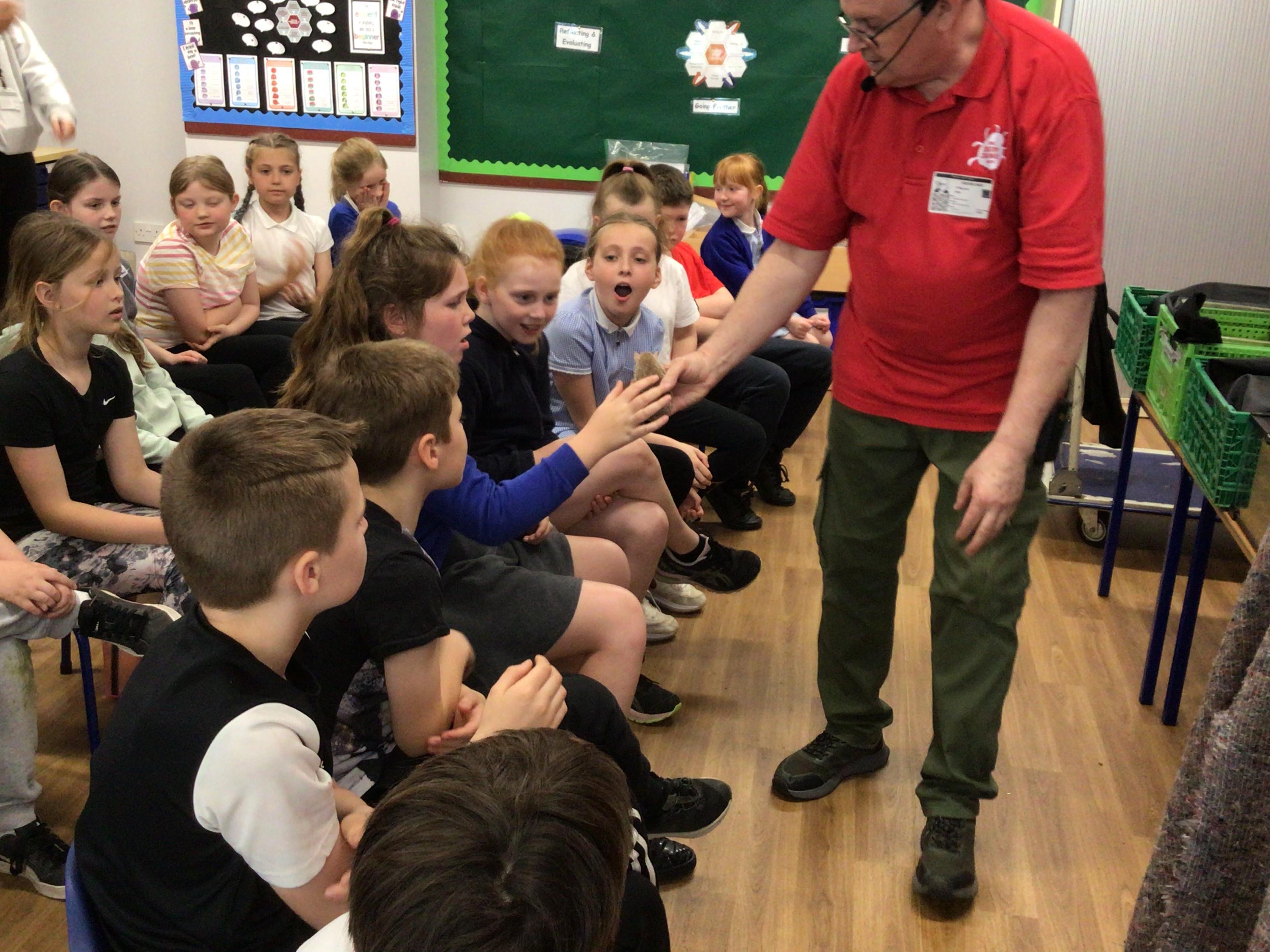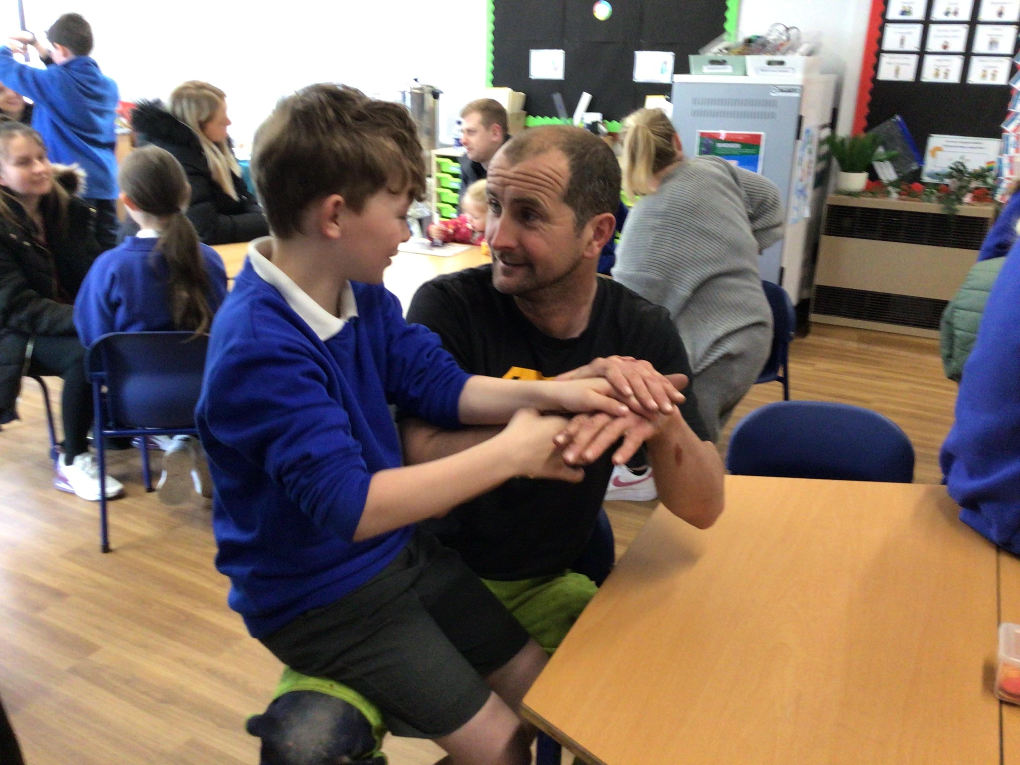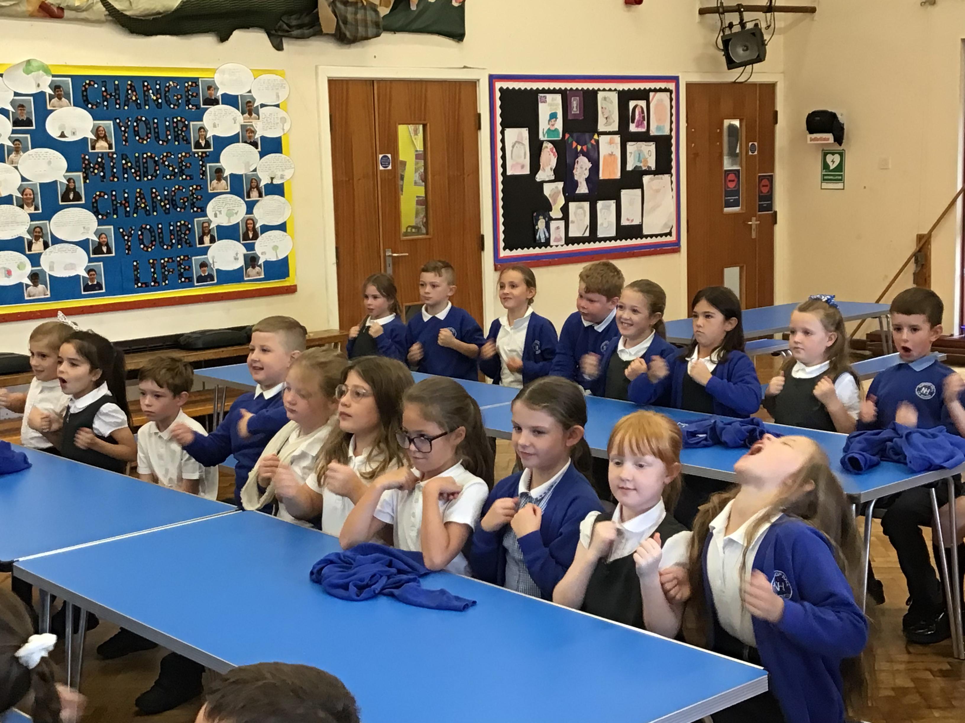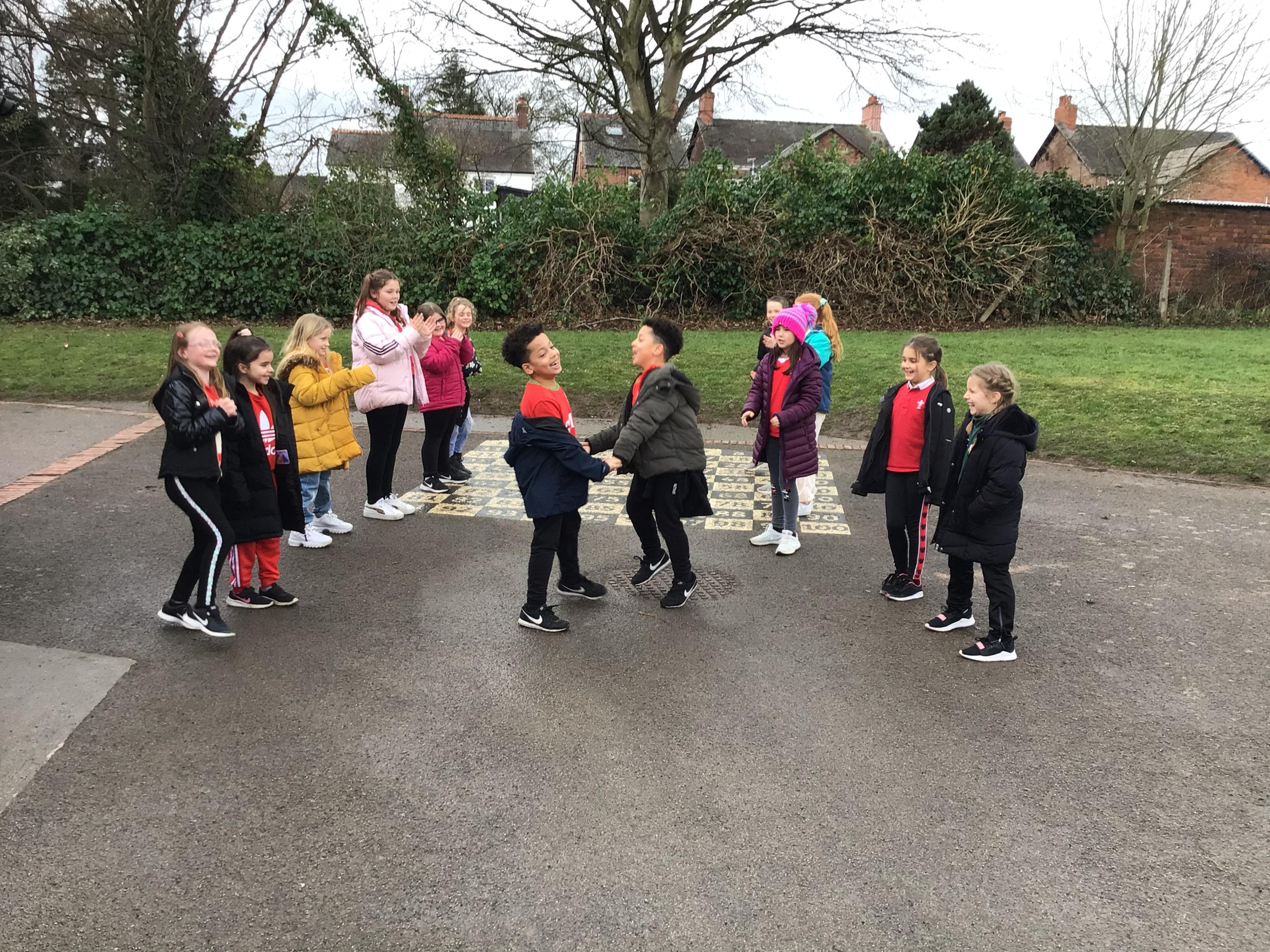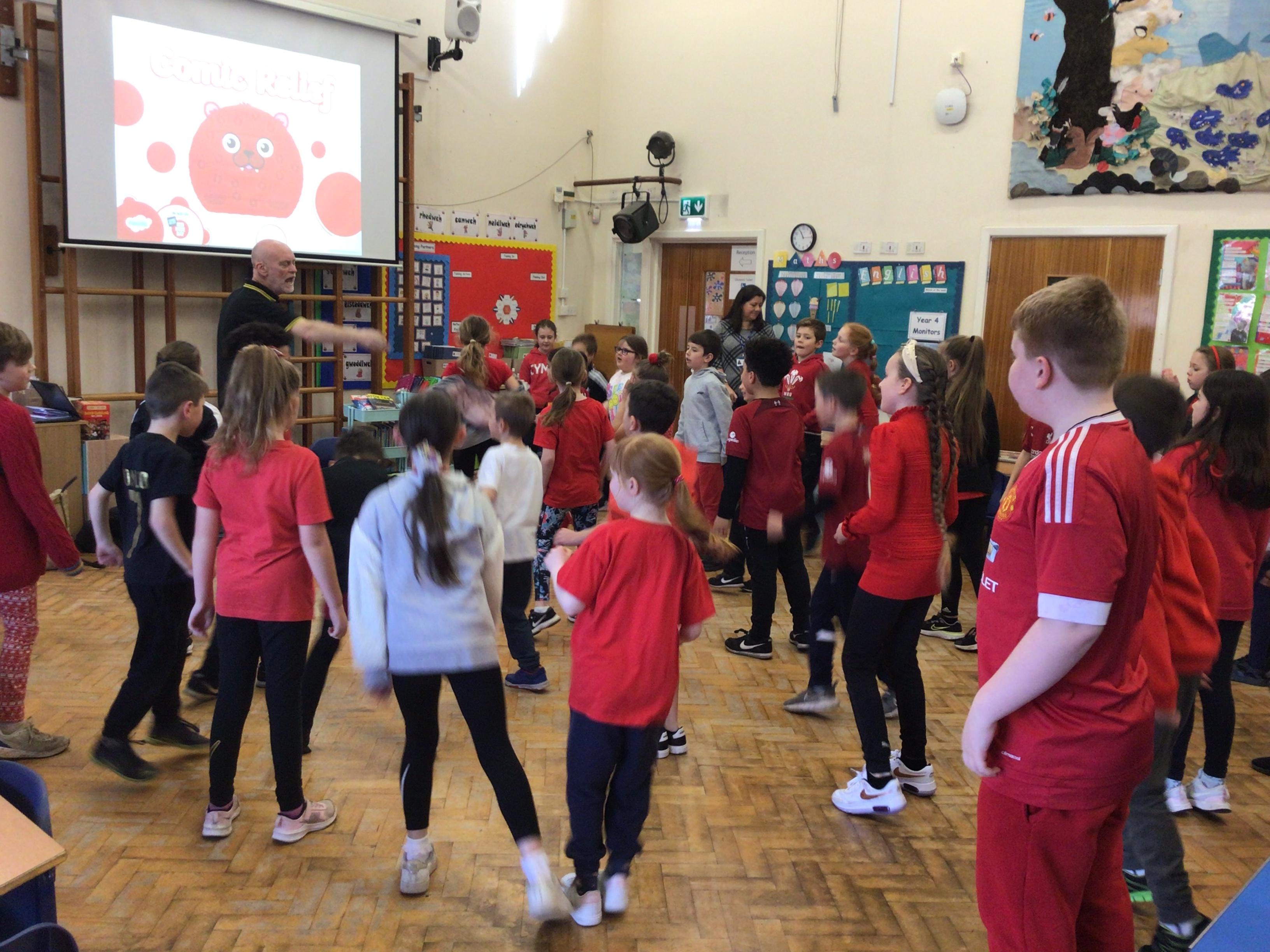 Today we had a visit from Huw from Upbeat Music and Arts. We listened to him play some traditional Welsh instruments and then he taught us how to clog dance! We had a lot of fun!
